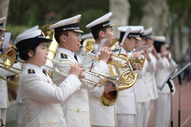 ↑海军工程大学军乐队现场演奏。陈其雄 摄