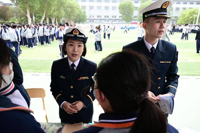 近日,海军机关组织多所招生院校成立联合招生宣讲队,走进武汉市第十一中学,为高中生们现场进行国防主题教育,并讲解海军院校招生有关政策。