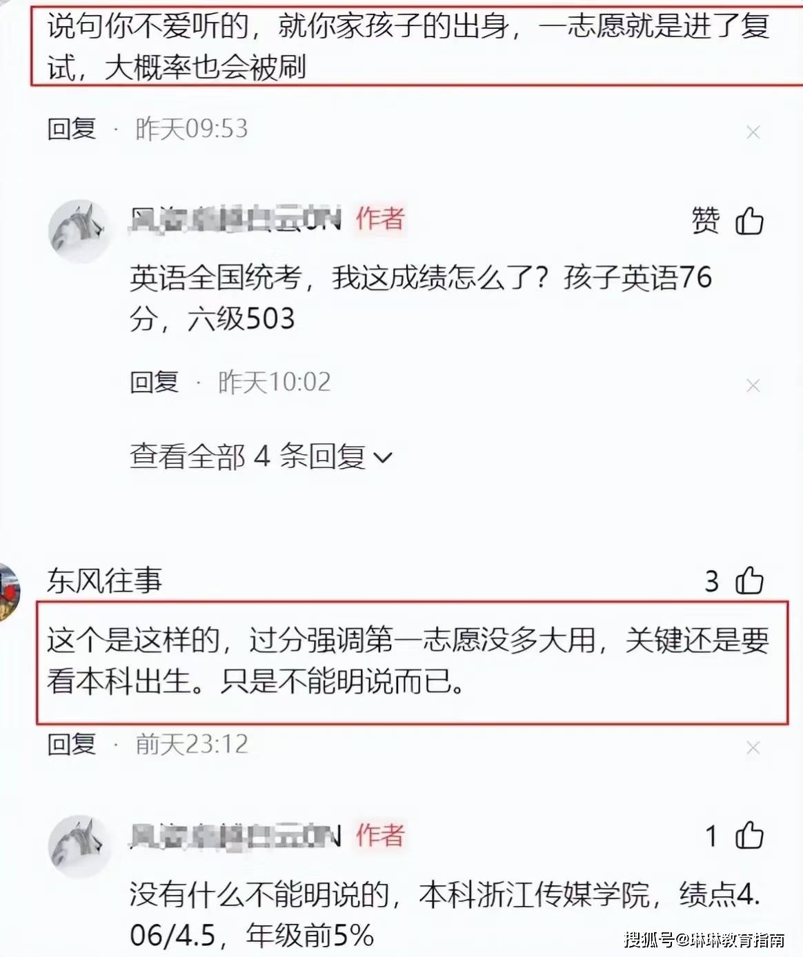 更何况调剂阶段的不确定性本身就比第一志愿录取更多,院校具备绝对的自主选择权,以第一志愿判断孩子的优秀与否根本毫无意义,否则大家都把第一志愿填成清华北大,难道就都能被211调剂顺利录取吗?很显然这名妈妈是想太多了。