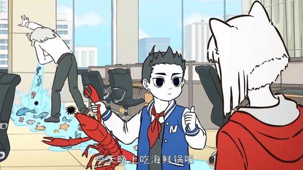 《非人哉》中生活中现代社会的(三千多岁的)小学生哪吒在雌雄莫辨的基础上,又增加了各种喜闻乐见的萌要素,无口、腹黑 (因此是打引号的邪恶特质,纯属节目效果),以及主播的副业。原有的人物之间对立和矛盾在此都成了小打小闹,偶尔有些细思极恐的玩笑,但任谁看了不说一句“藕霸好萌”呢。