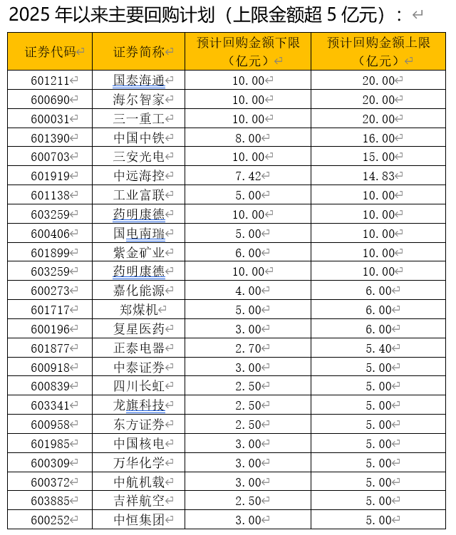 澎湃新闻记者注意到,本轮回购潮中,龙头示范效应显著。其中,能源、金融、电力、医药等行业巨头领跑,中国石油(601857)、三一重工(600031)、海尔智家(600690)等单笔增持回购规模均超10亿元。