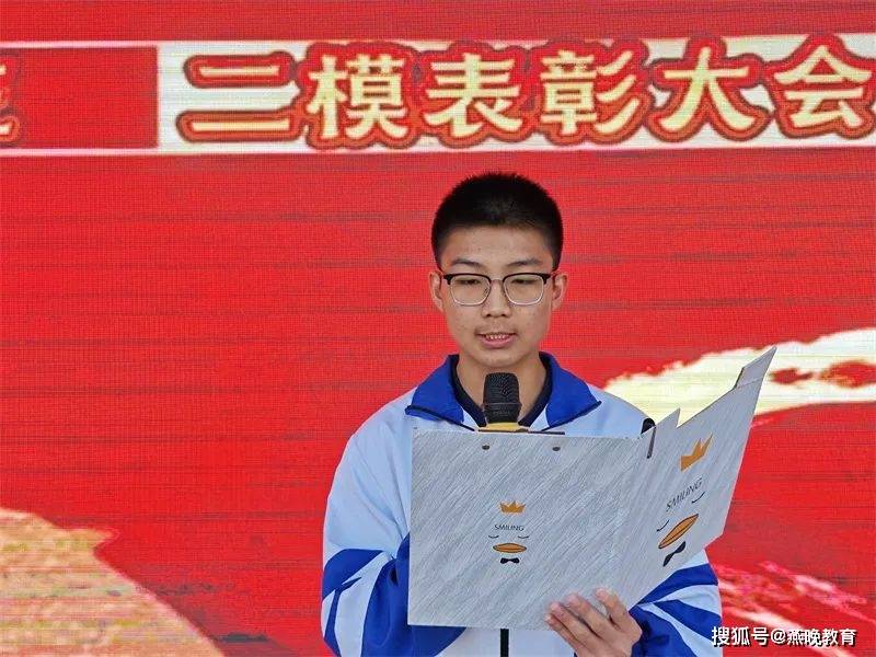 高三109班王佳俊同学作为优秀学生代表发言,他的话语中充满了激情与自信,展现出冀中高三学子积极向上的精神风貌和为梦想拼搏的坚定决心,为全体同学树立了榜样,激励着大家奋勇向前。