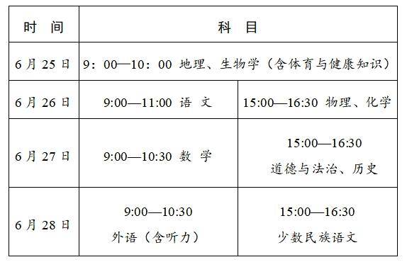 2025年中考按照“学完即考”的原则,在八年级第二学期末,全市统一组织地理、生物学(含体育与健康知识)的考试。在九年级第二学期末,全市统一组织道德与法治、语文、数学、外语(含听力)、历史、物理、化学、少数民族语文等科目的纸笔考试。