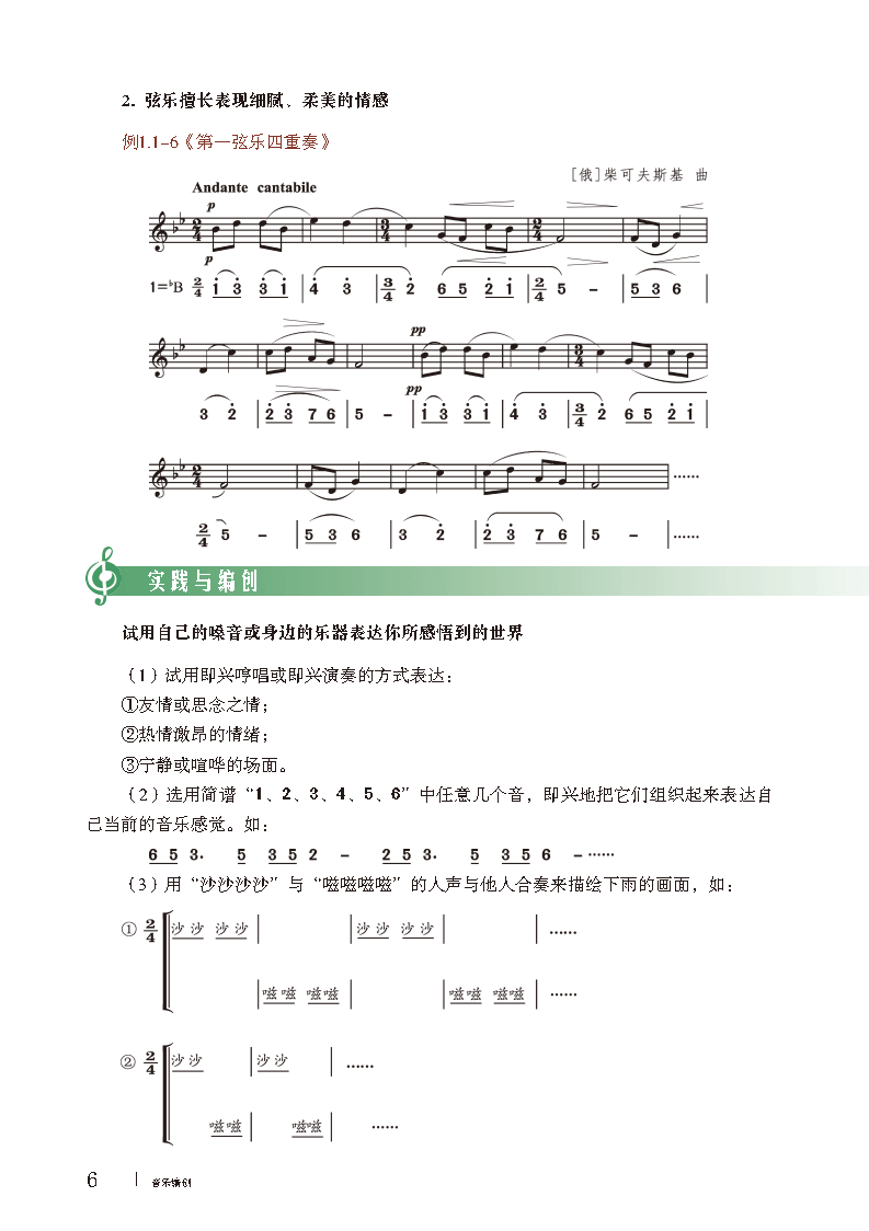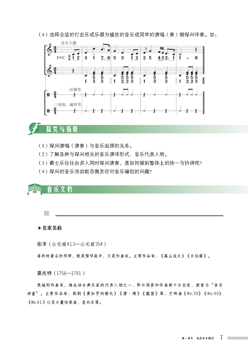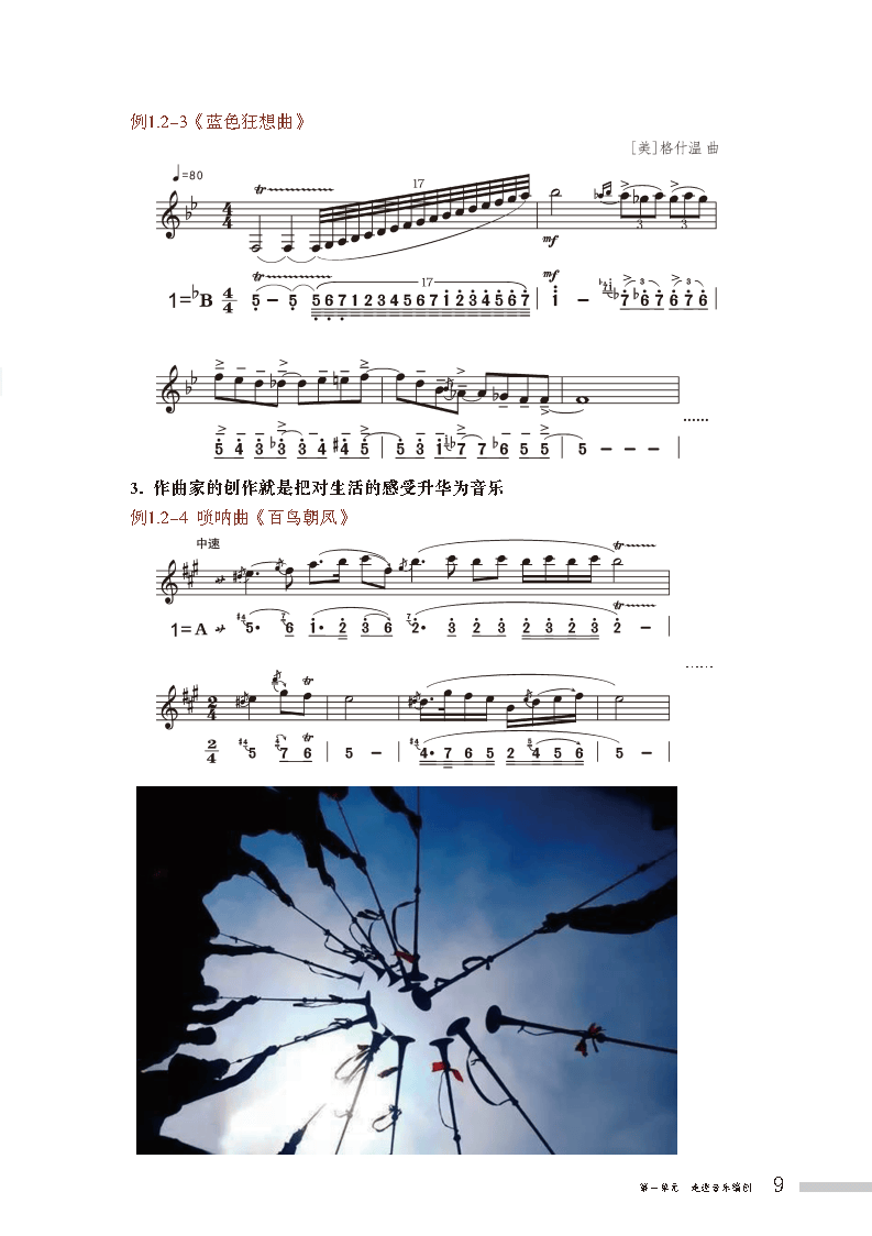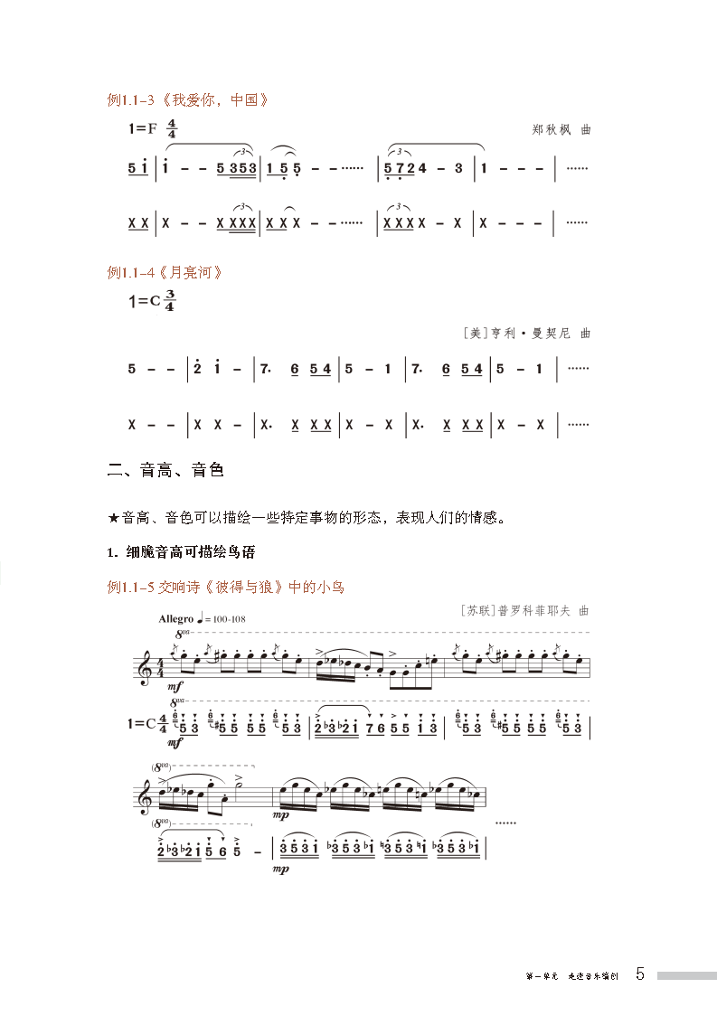 - **第二单元 揭开作曲的奥秘**:涉及音乐编创的入手方法、民歌改编、旋律发展手法及编创旋律等,让学生逐步掌握作曲的基本技巧。
