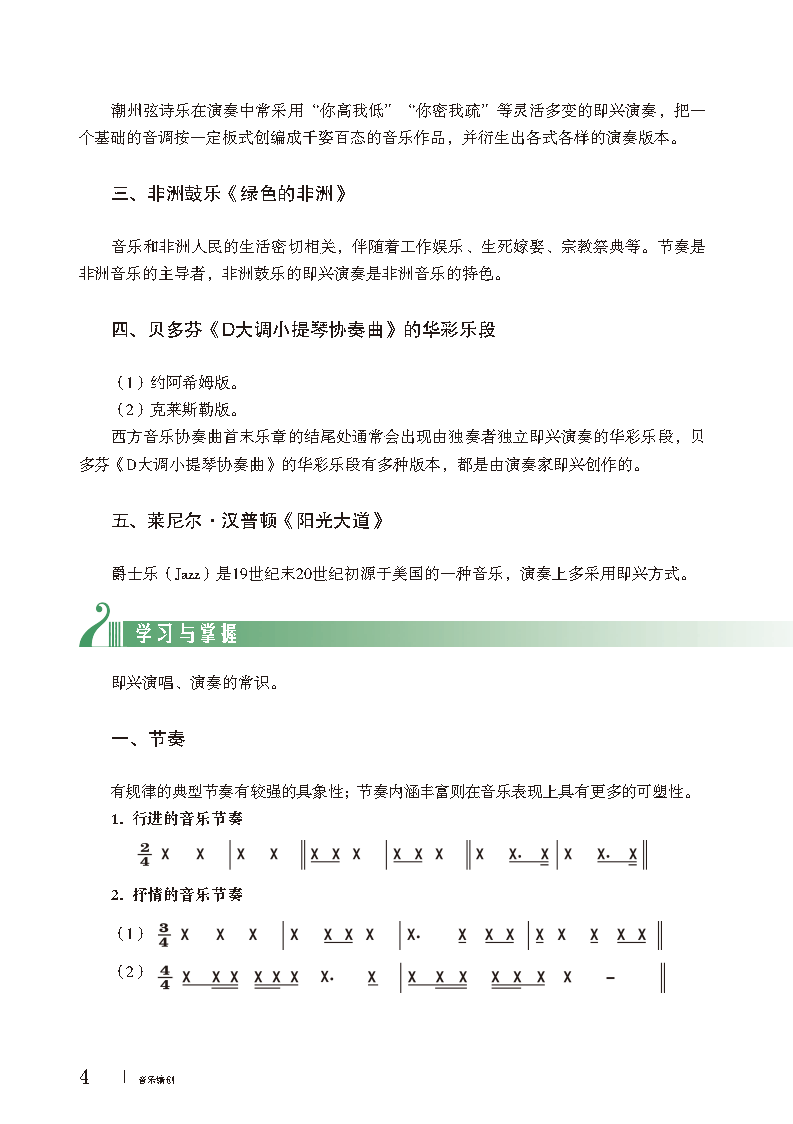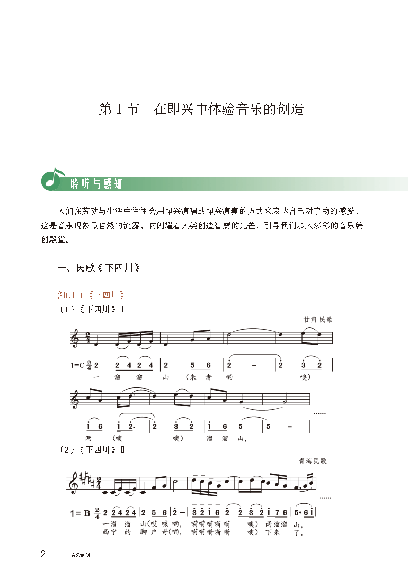 - **第四单元 歌曲的编创**:继续深入学习歌曲的二段体、用民歌素材编创歌曲以及歌曲的前奏、尾奏与间奏等知识,完善歌曲编创的学习。