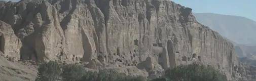 在我一筹莫展的时候老师突然和我说,他之前看过一个日本拍的记录片,讲的就是巴米扬的历史和文化,纪录片记载在最早的时期巴米扬是一个佛国,除了石窟里的东西大佛外还建了寺院群还有巨大的卧佛等等。我马上去网上找到了这部纪录片,虽然画面很模糊,但真的找到了当年的复原图。这时设计思路马上就来了,我可以将这个场景投射在场地中。同时面对石窟遗迹的方向抬高,将投射到场地的这几部分用一个连续的大屋顶有机连接。