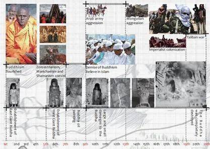 这时带我的老师和我说,这个思路没有问题,可以继续做下去,但他觉得还不够出彩,可以再想想。我又翻了大量的当地资料,还有当地的宗教变化以及战争影响对大佛的损坏,在这个过程中大佛是逐渐被损毁的,在塔利班彻底炸毁之前就经历过很多次损毁。