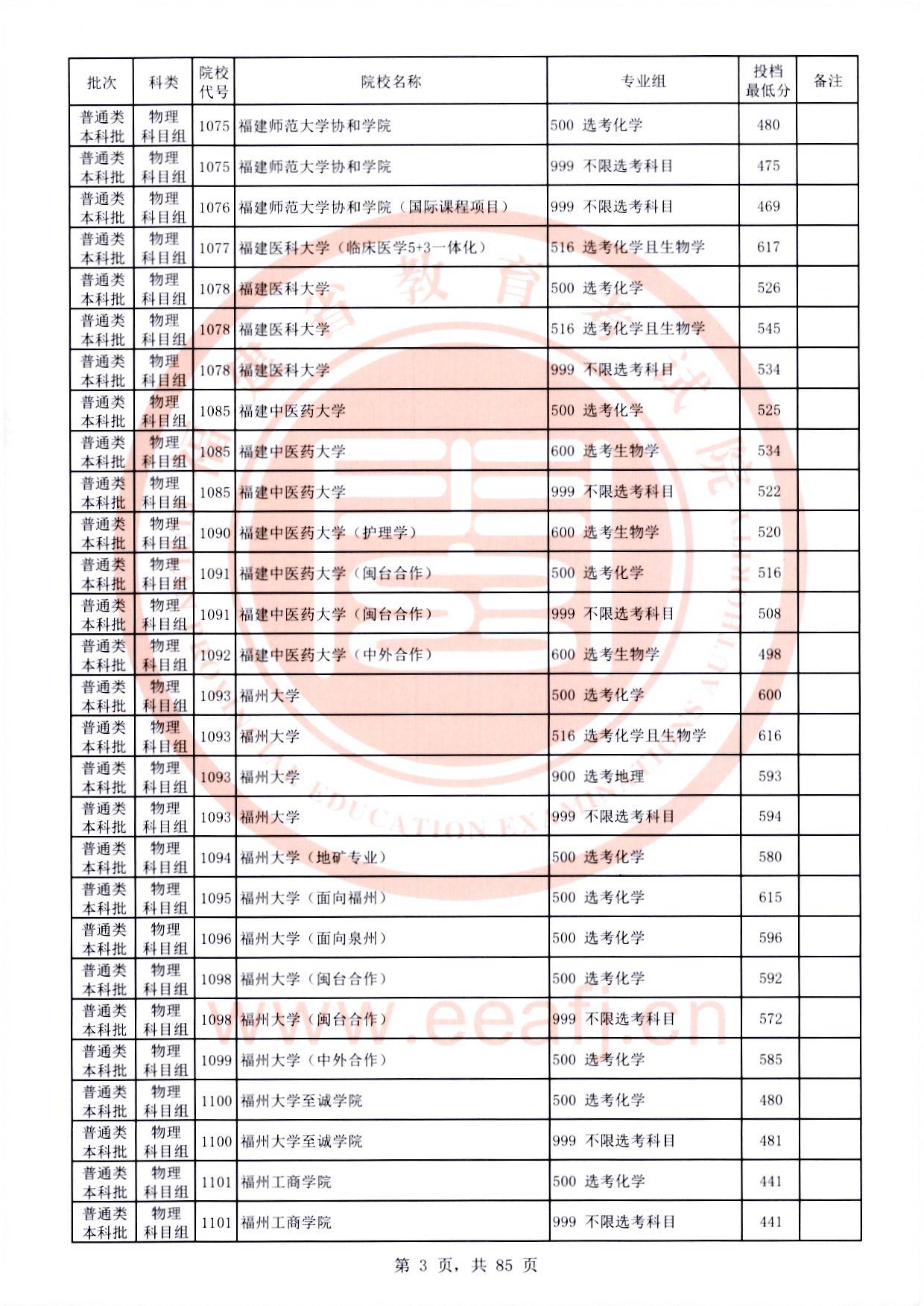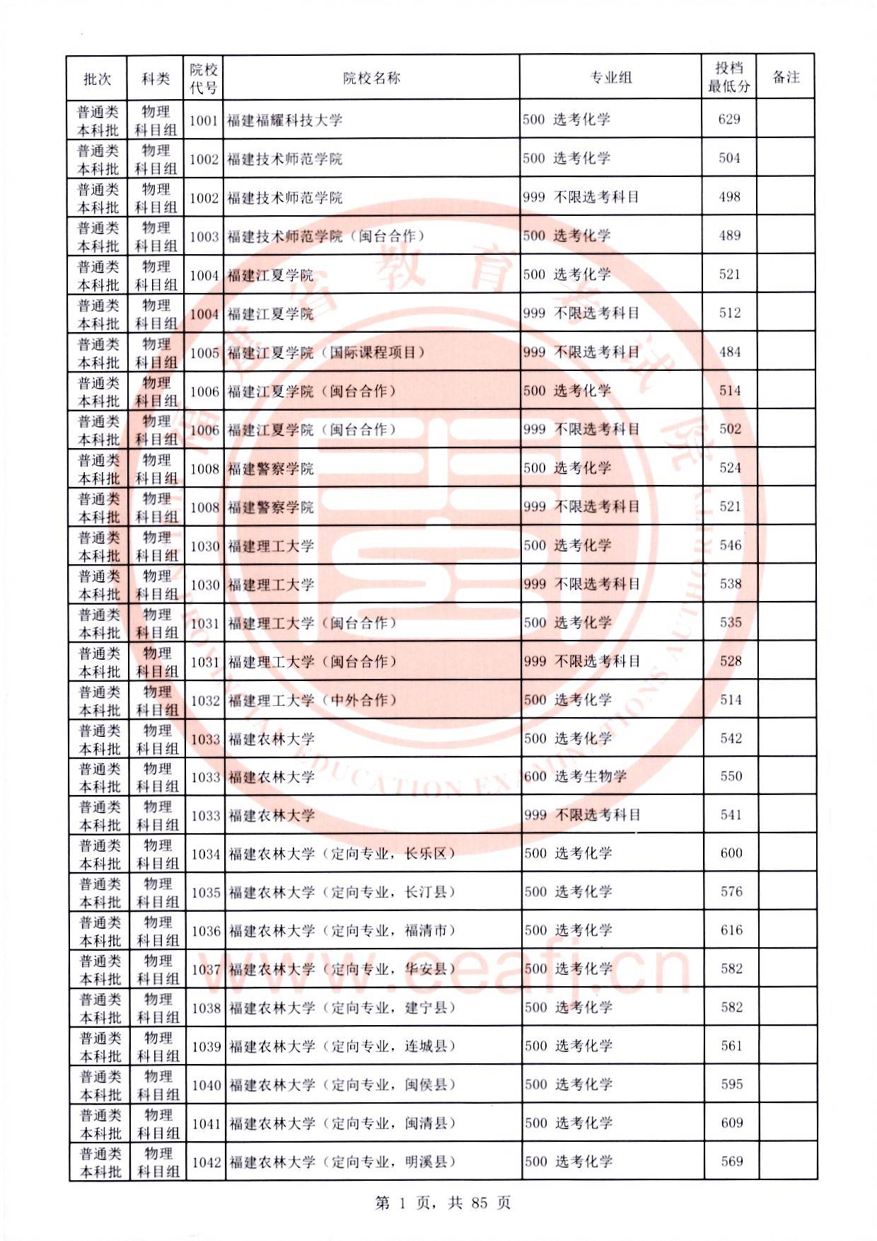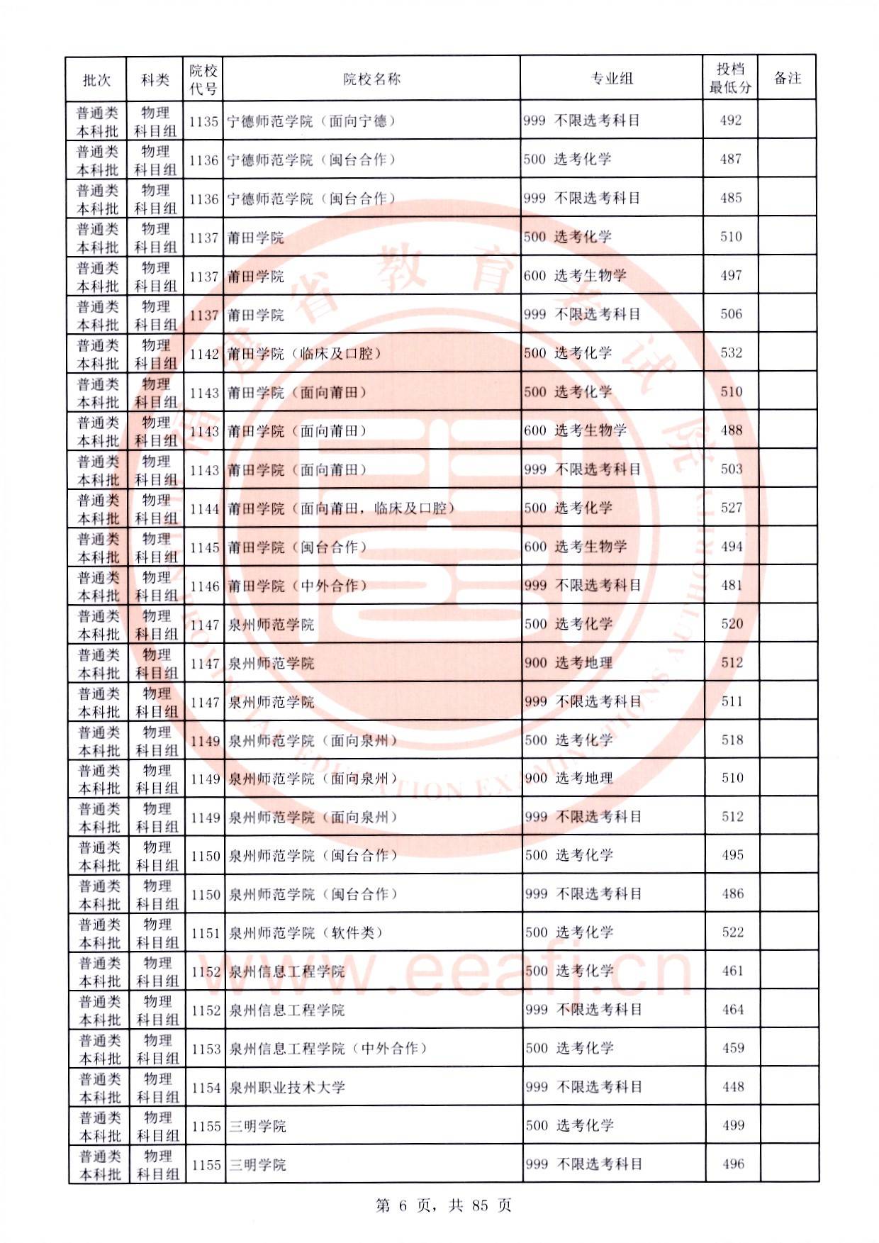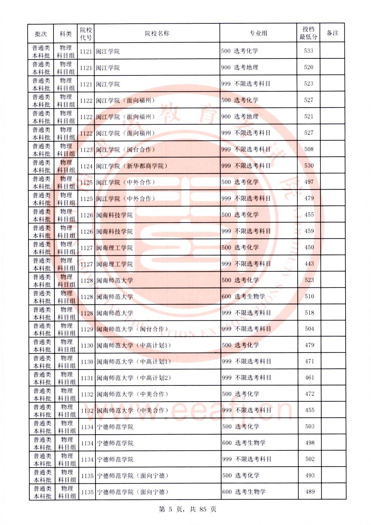 2025年福建省普通类本科批次平行志愿投档线公布!