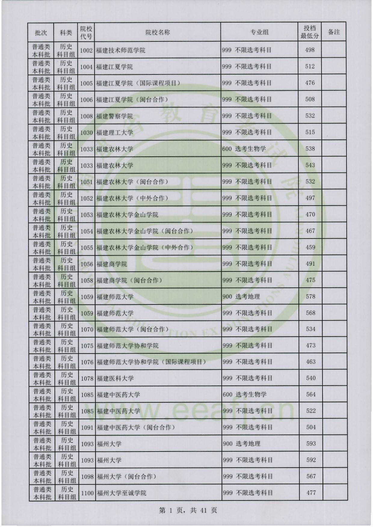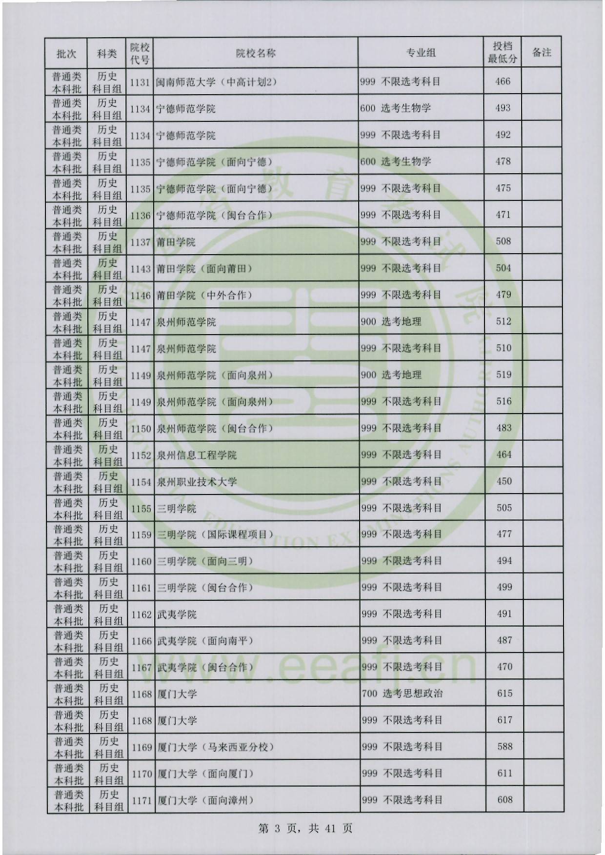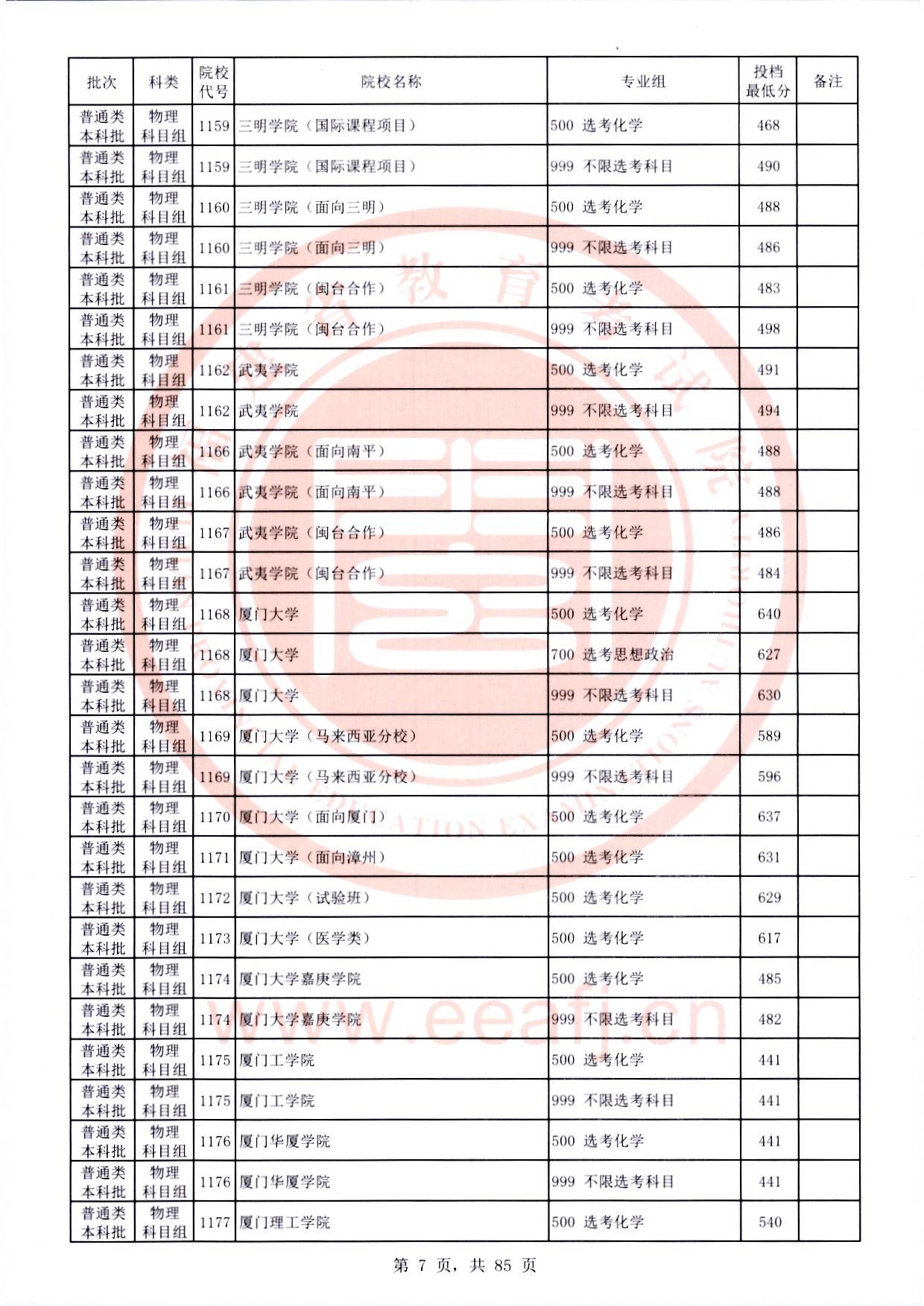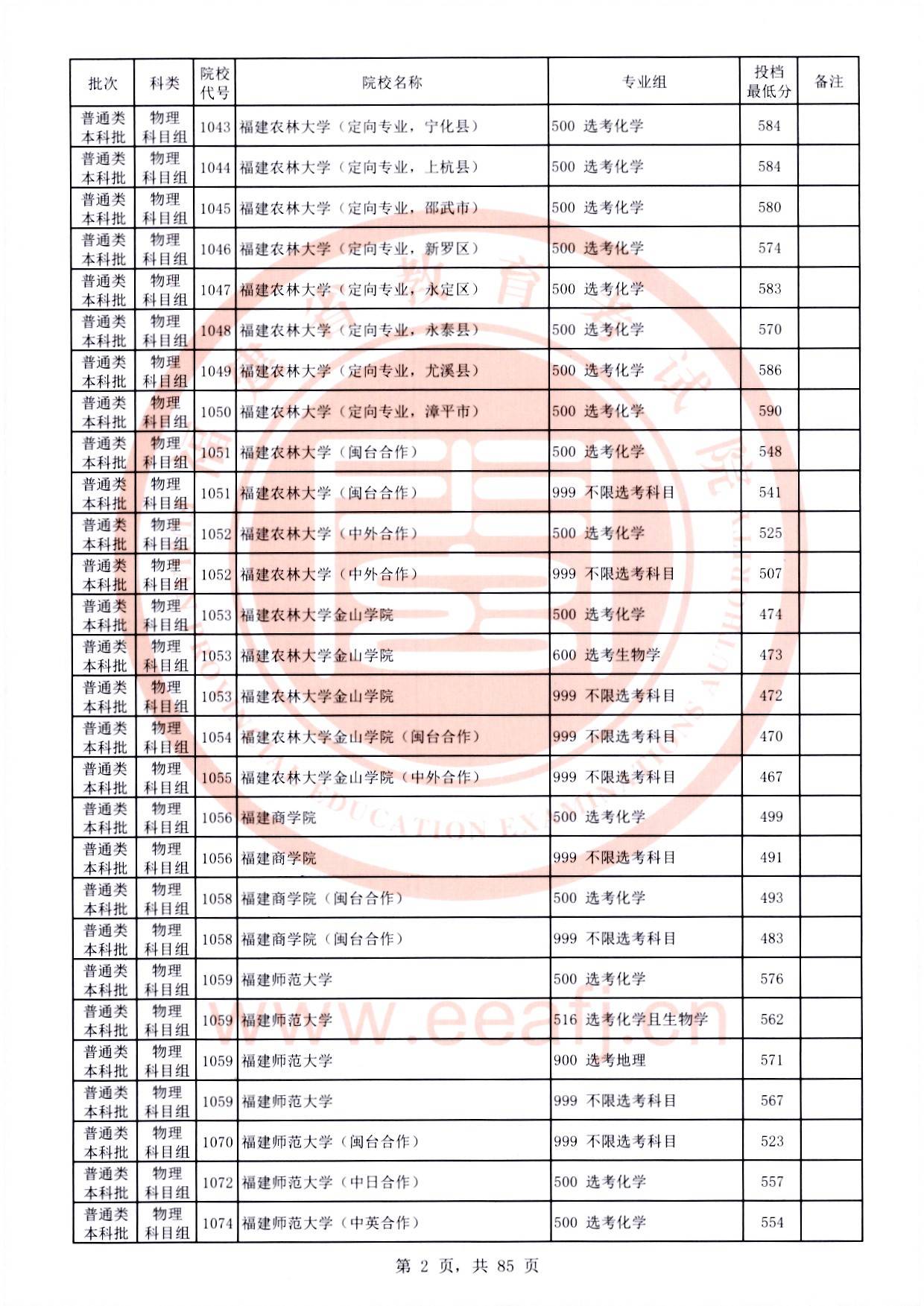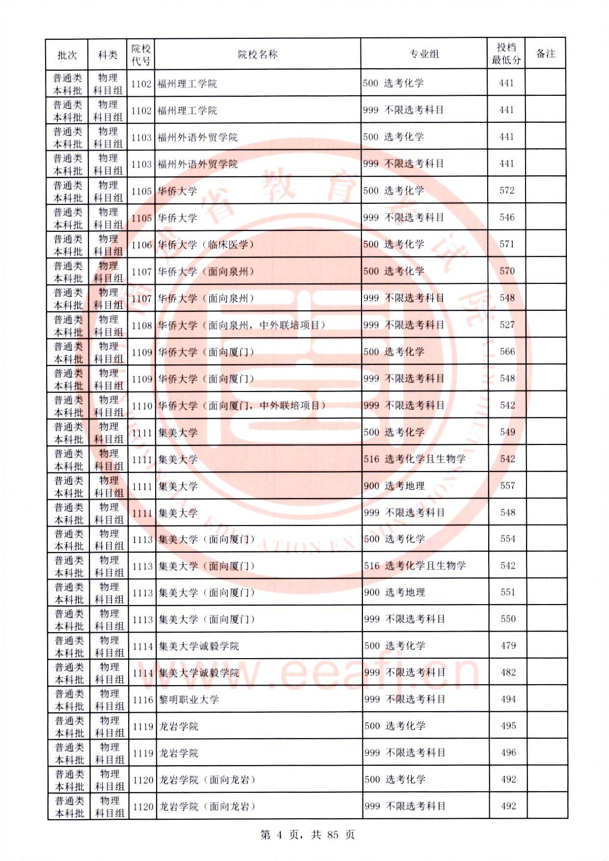 2025年福建省普通类本科批次平行志愿投档线公布!