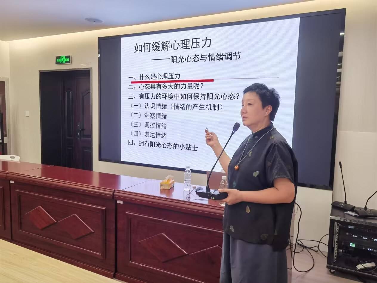 在实用环节,吴教授重点传授了“在高压环境下保持阳光心态的方法”。她从“情绪觉察”“情绪调控”和“情绪表达”三个维度,介绍了诸如正念冥想、认知重构、深呼吸放松、积极自我对话等一系列实操性极强的技巧。并通过现场互动练习,引导学员们初步体验如何觉察自身情绪变化,及时中断负面思维循环,从而在繁忙的工作中保持内在的平静与清晰。