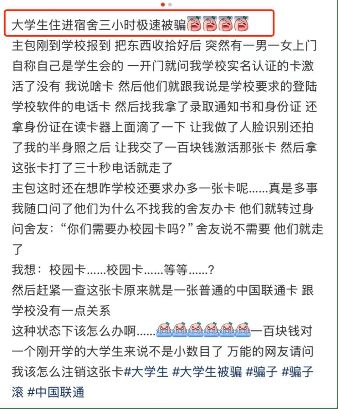 读者们经历的“新生专属骗局”,每一段,都是真金白银换来的教训……