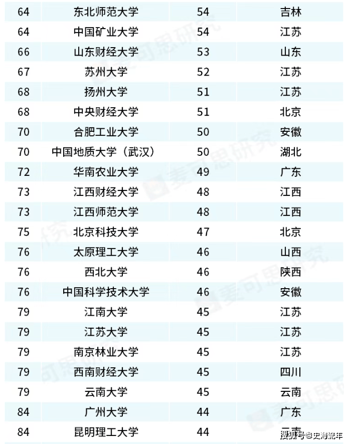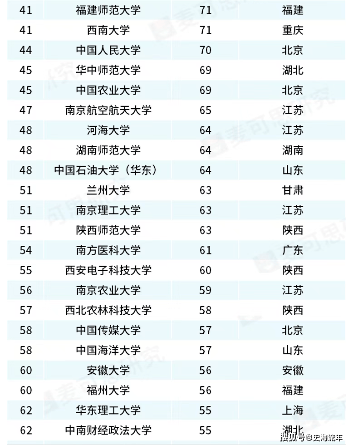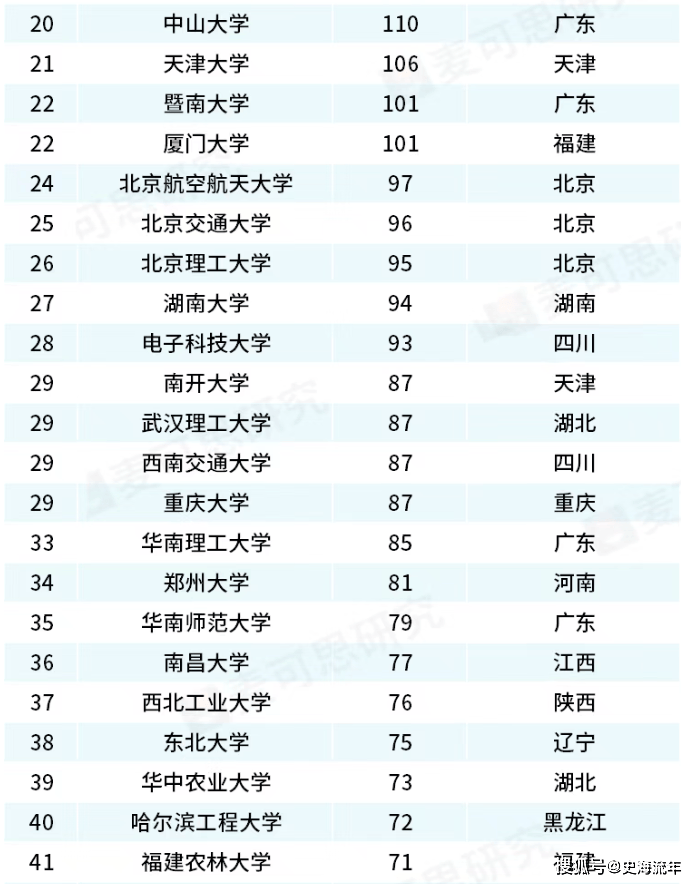 我们注意到,共有6所C9高校榜上有名。但是,中国科学技术大学因为小而精,没有进入前十强,排名第76位。复旦大学排名第11位,南京大学排名第18位。