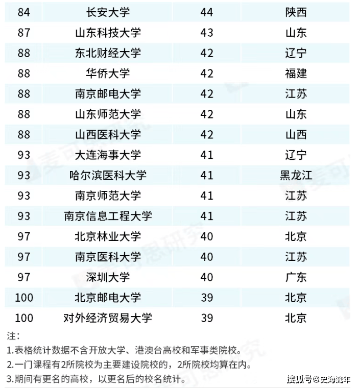 武汉大学151门课程覆盖112个上榜专业,排名全国第六位,展现综合性大学的学科广度;山东大学149门课程支撑多学科均衡发展,排名全国第七位,在文史与工科领域均有A+专业突破。