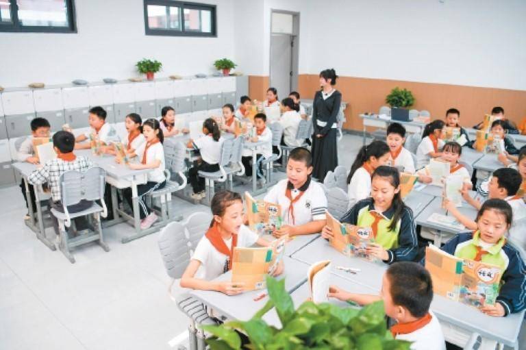 走进教学楼,现代化的教学设施让人眼前一亮。智慧黑板、中央空调、暖气一应俱全,每个学生都拥有个人储物柜,可调节高低的桌椅呵护着孩子们的健康成长。记者看到,最特别的是教室里的课桌摆放方式——不是传统的“排排坐”,而是5人一个小组的“圆桌式”布局。