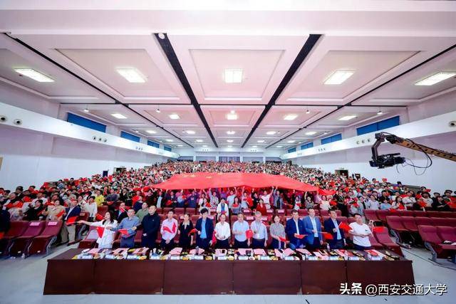 会上,巨幅五星红旗在同学们手中庄严传递,《我爱你中国》的歌声响彻全场。
