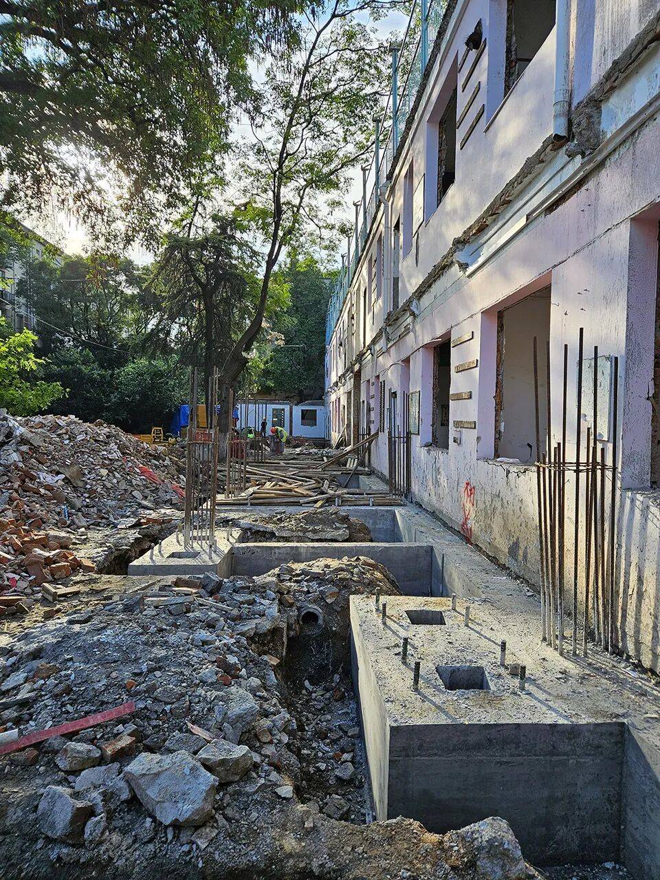 在园舍建筑中,70年代建造的2号楼规模最大,使用强度最高,可被视为园区主楼,然而其建筑质量较差,空间亦不适用,无法与其重要性相匹配。因此,本次改造对2号楼的改造力度最大。2号楼本体仅保留部分墙体,将其结构体系从原砖混结构替换为钢筋混凝土框架结构,使之符合幼儿园结构安全要求。结构替换使空间扩展和转换成为可能。