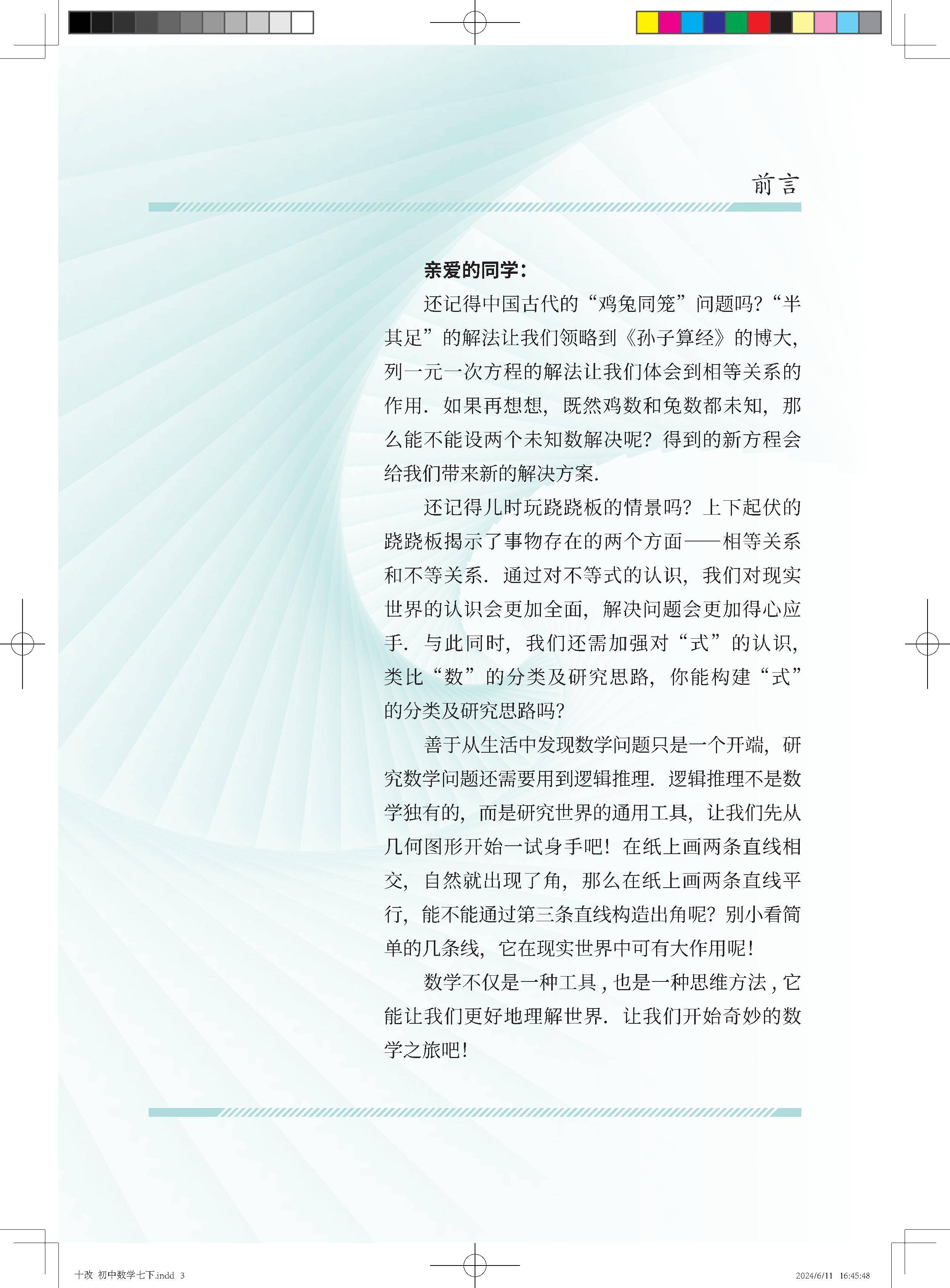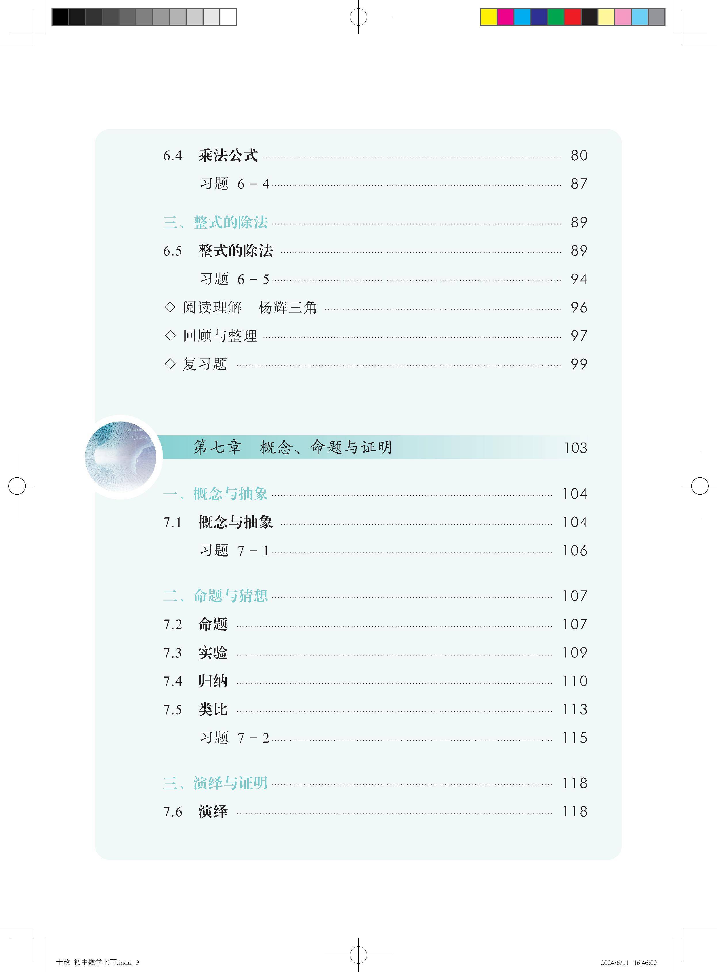 北京版七年级下册数学目录如下: