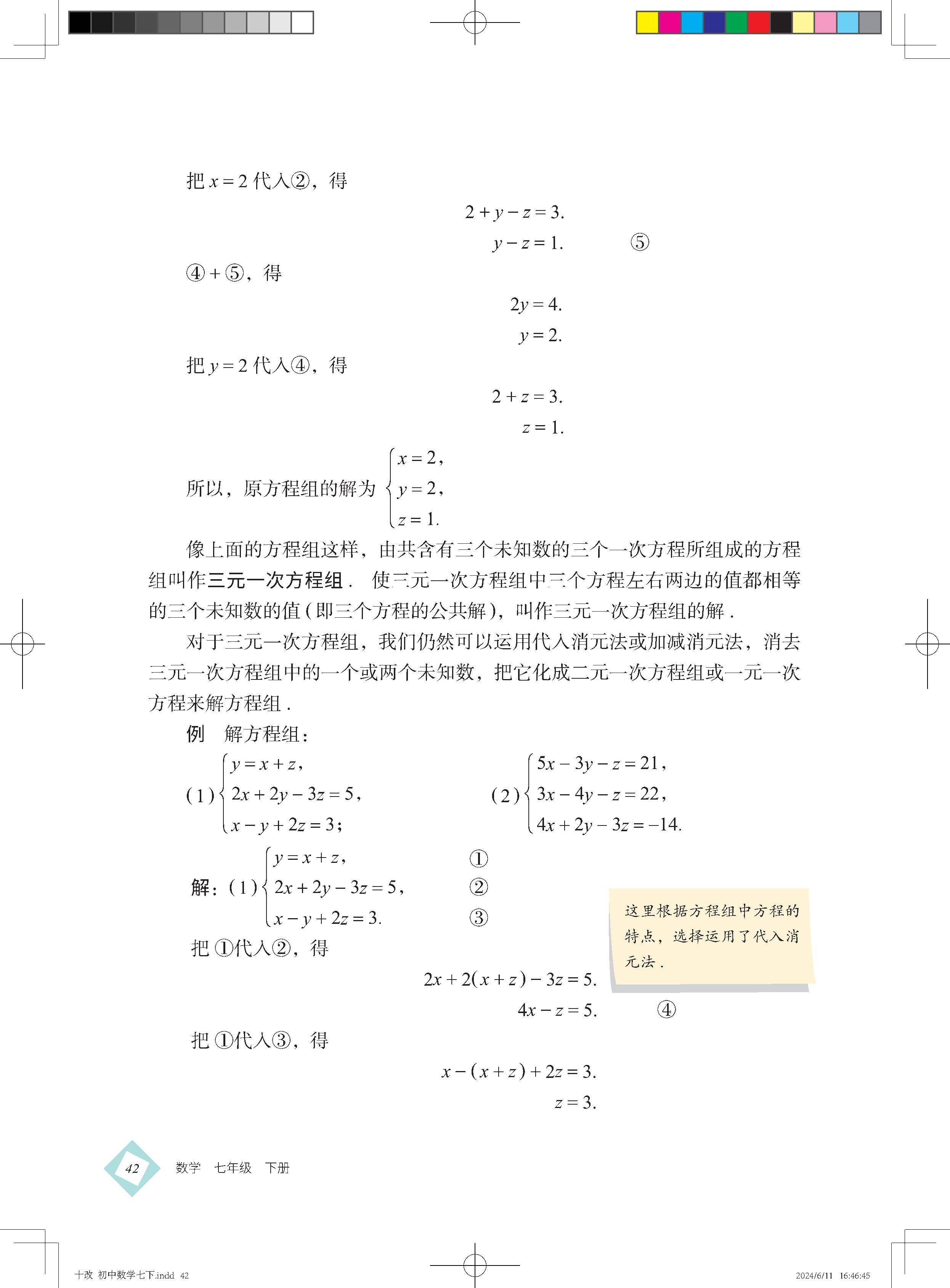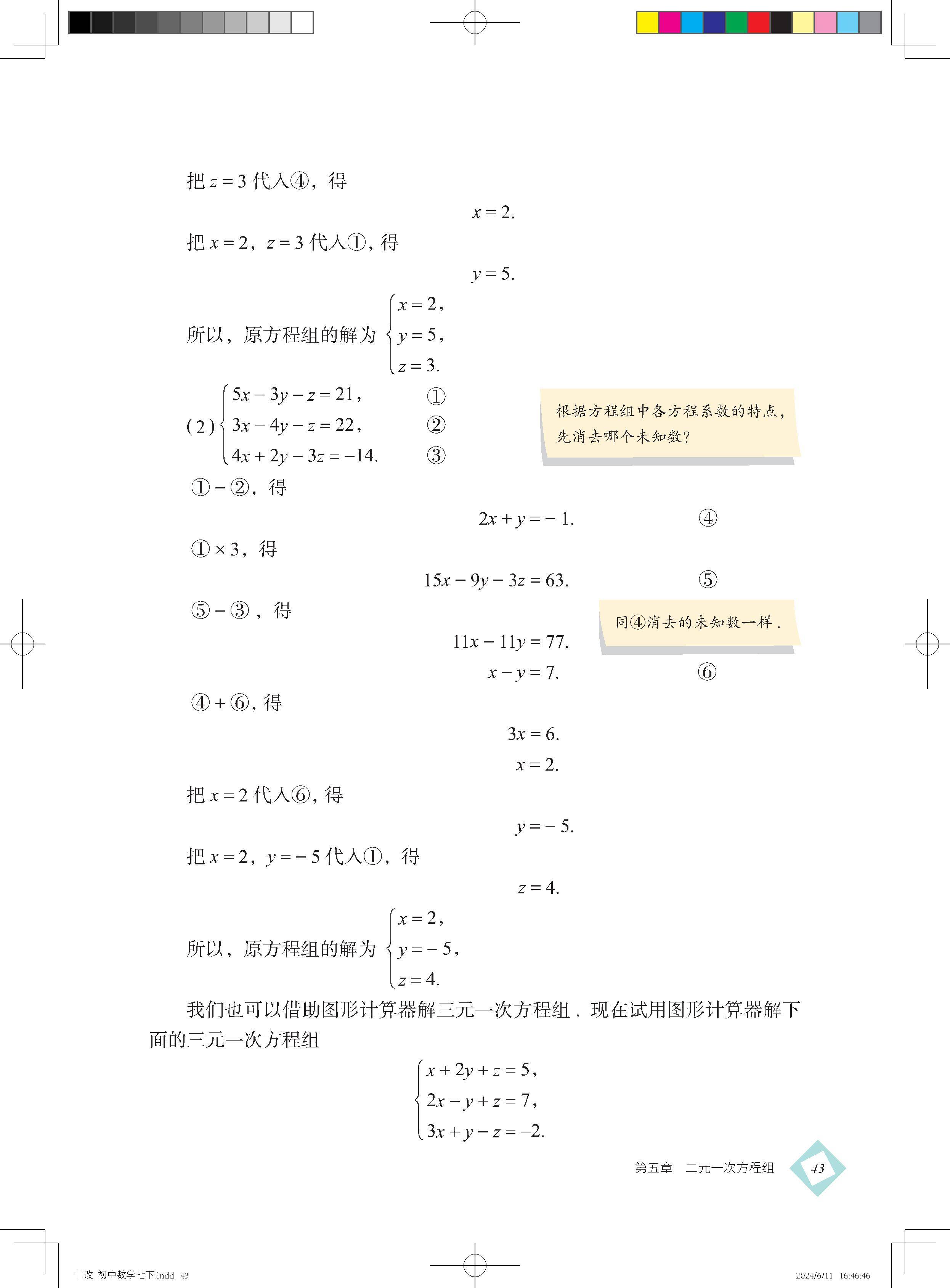6.5 用消元法解三元一次方程组