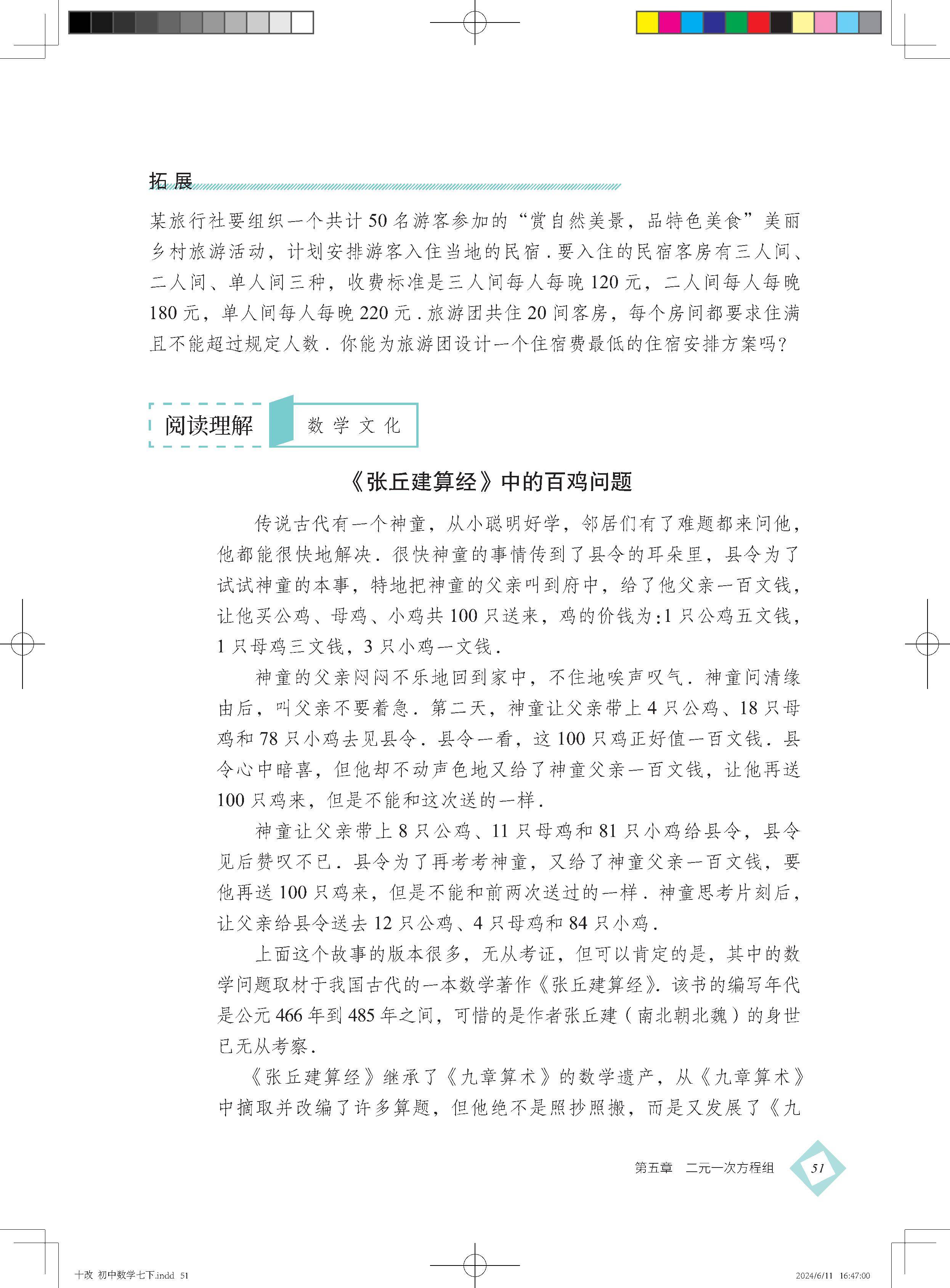数学文化 我国古代有趣的百鸡问题