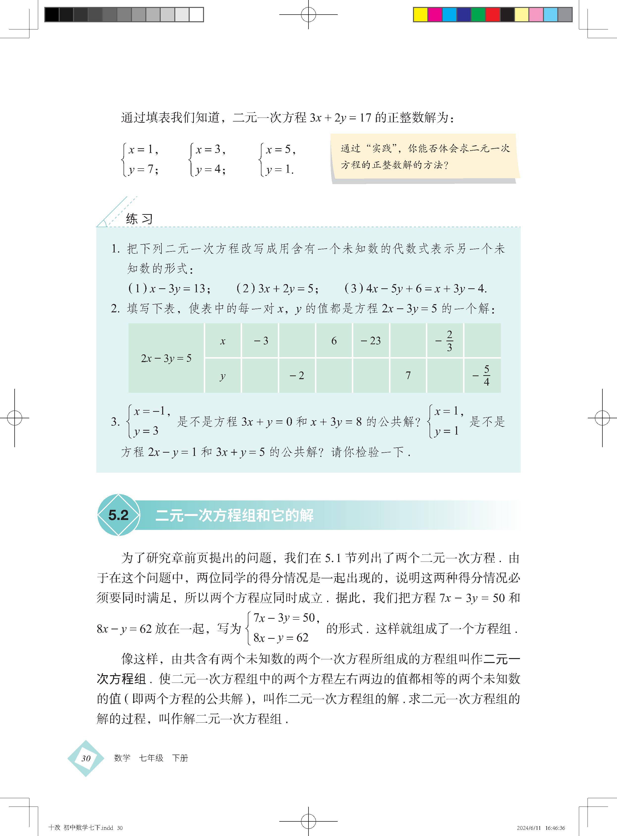 6.2 二元一次方程组和它的解