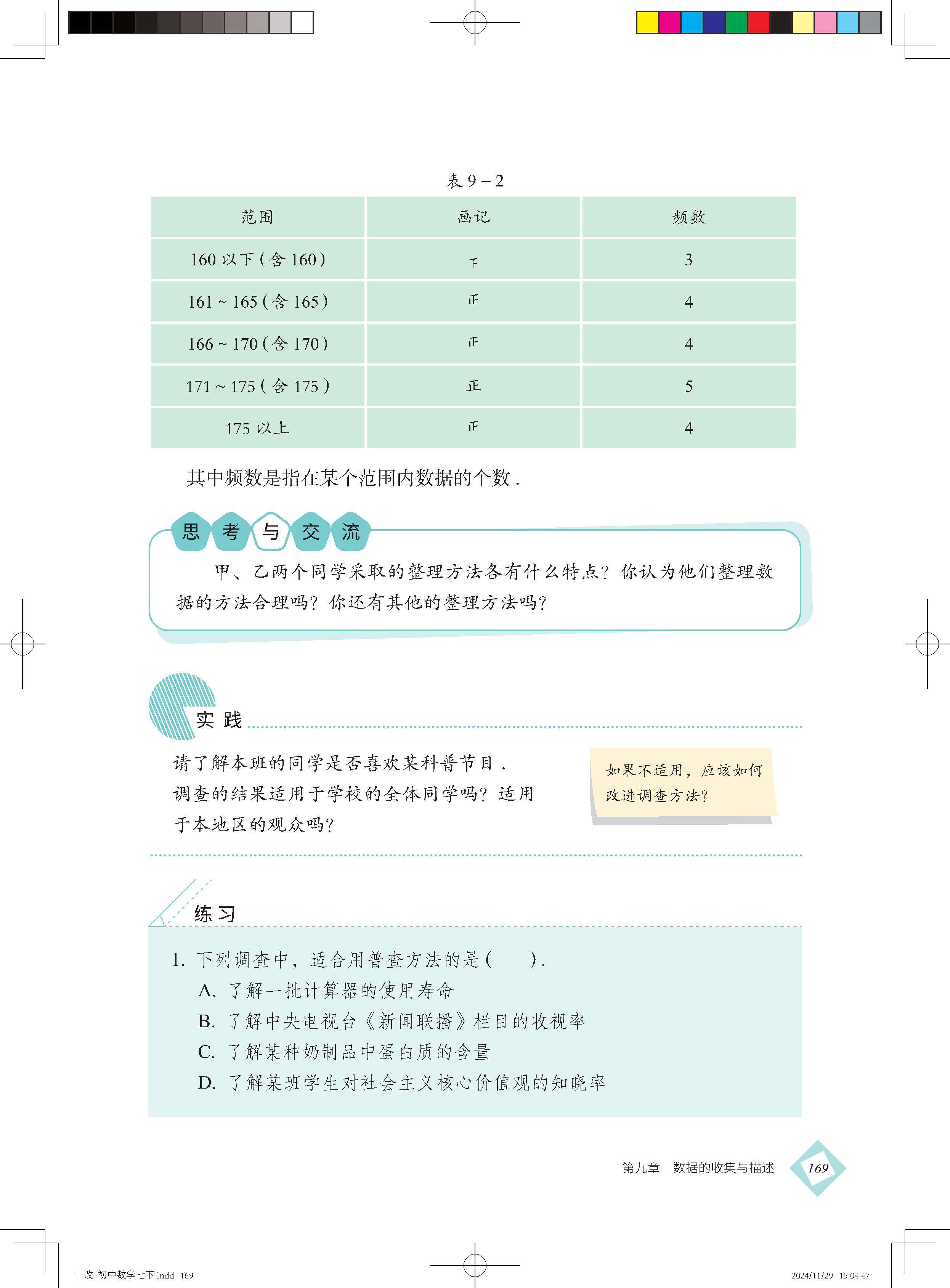 一 数据的收集、整理与表示