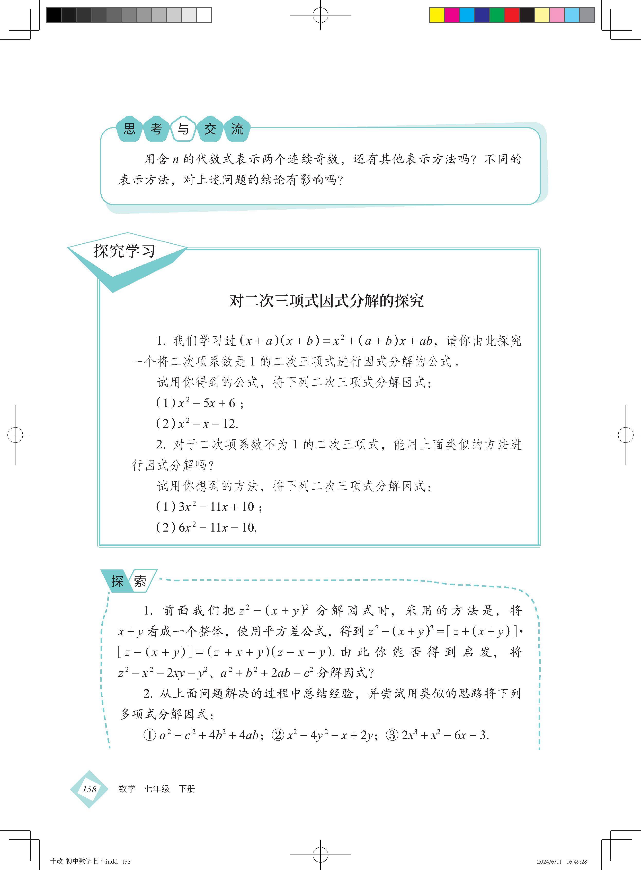 课题学习 二次三项式因式分解的探究