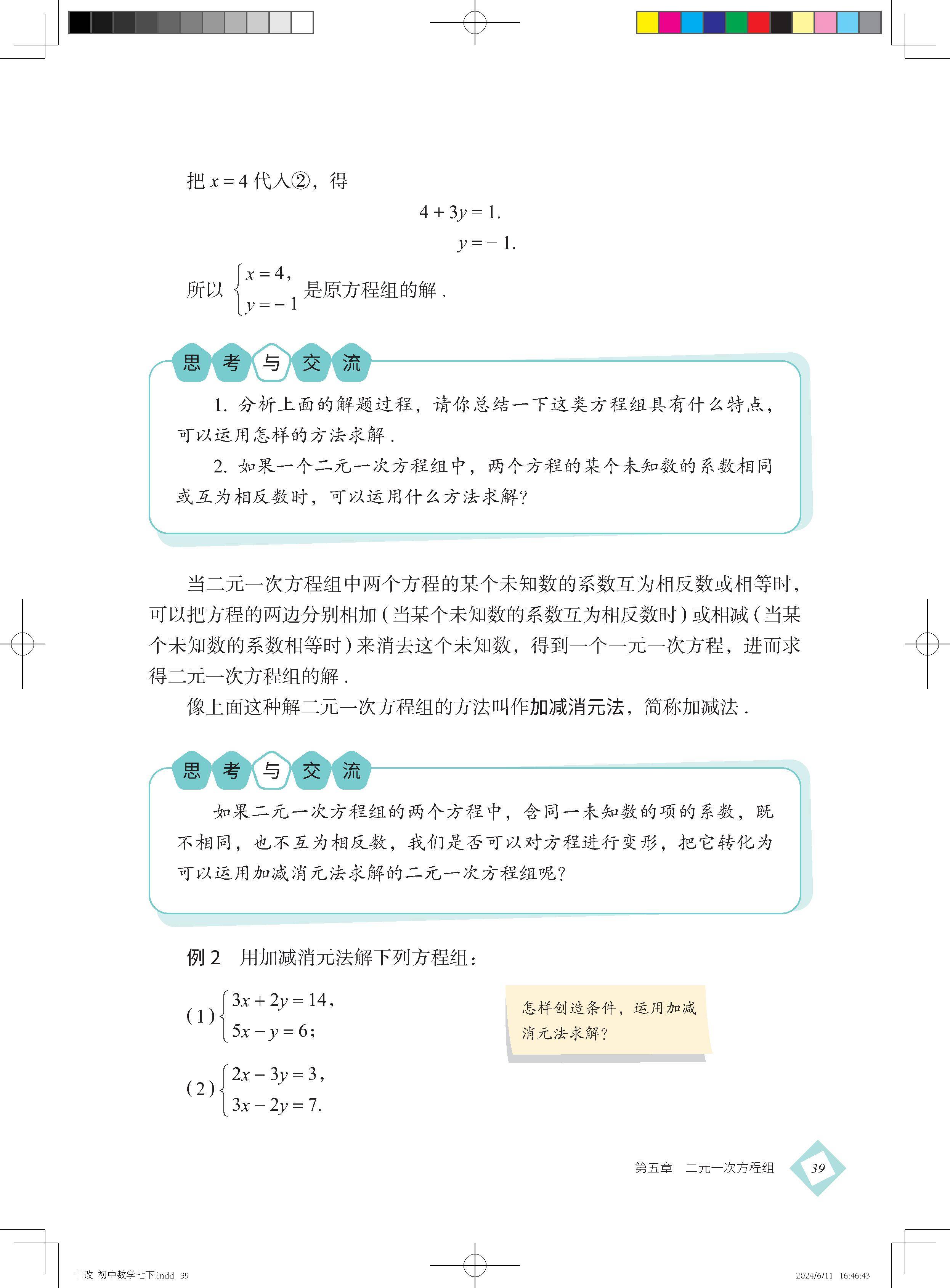 二 二元一次方程组的解法