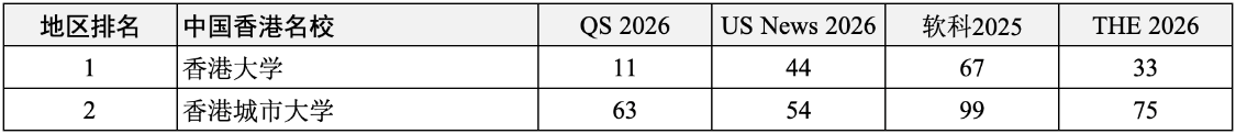 2所中国香港名校全部进入四大主流世界大学排名前100名,分别是: