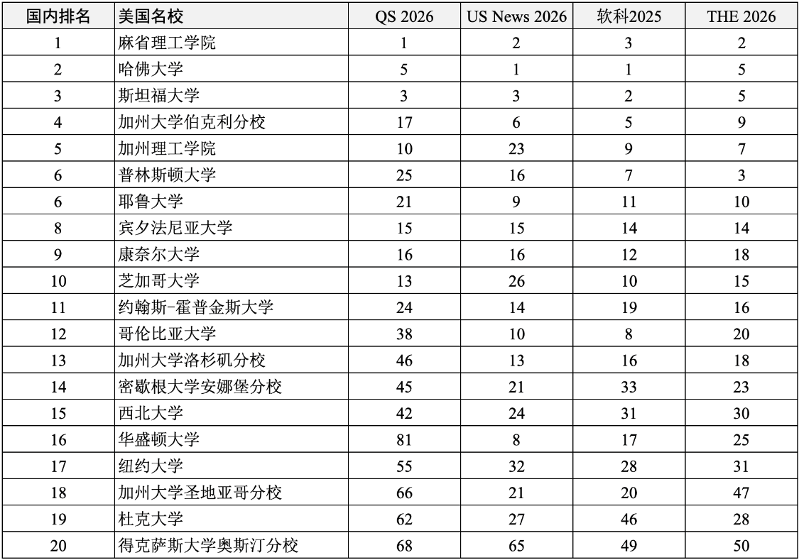 重磅汇总2026年度四大世界大学排名大满贯百强名校!