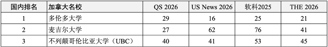 多伦多大学、麦吉尔大学、不列颠哥伦比亚大学(UBC)。