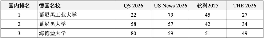 慕尼黑工业大学、慕尼黑大学、海德堡大学。
