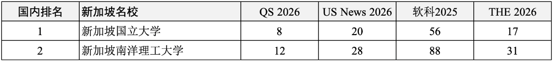 新加坡国立大学、新加坡南洋理工大学。