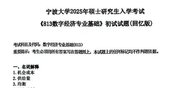 2.25宁大数字经济考研真题回忆版(部分,无答案)