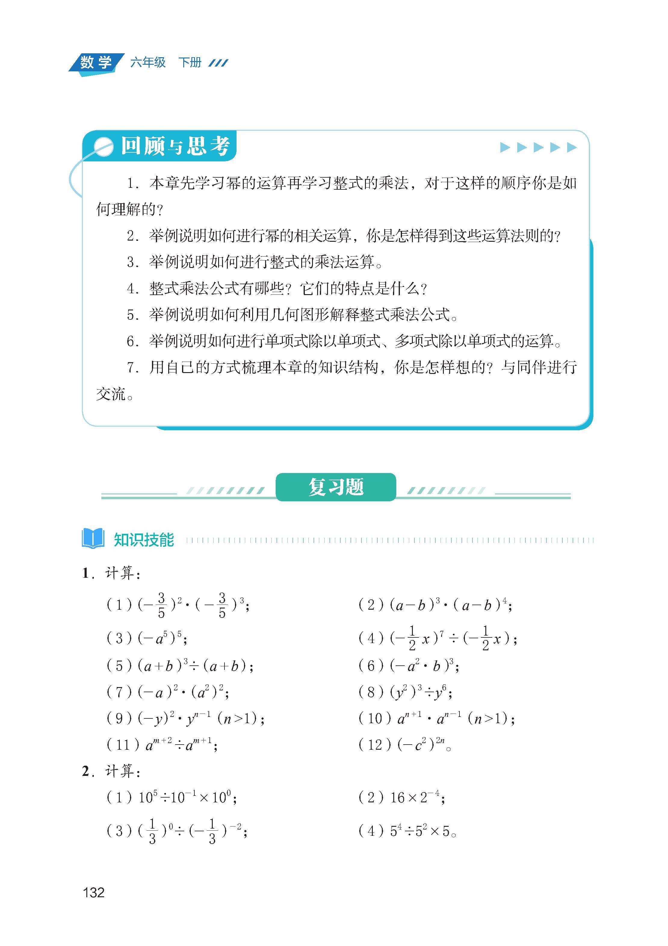 整式的乘除运算: