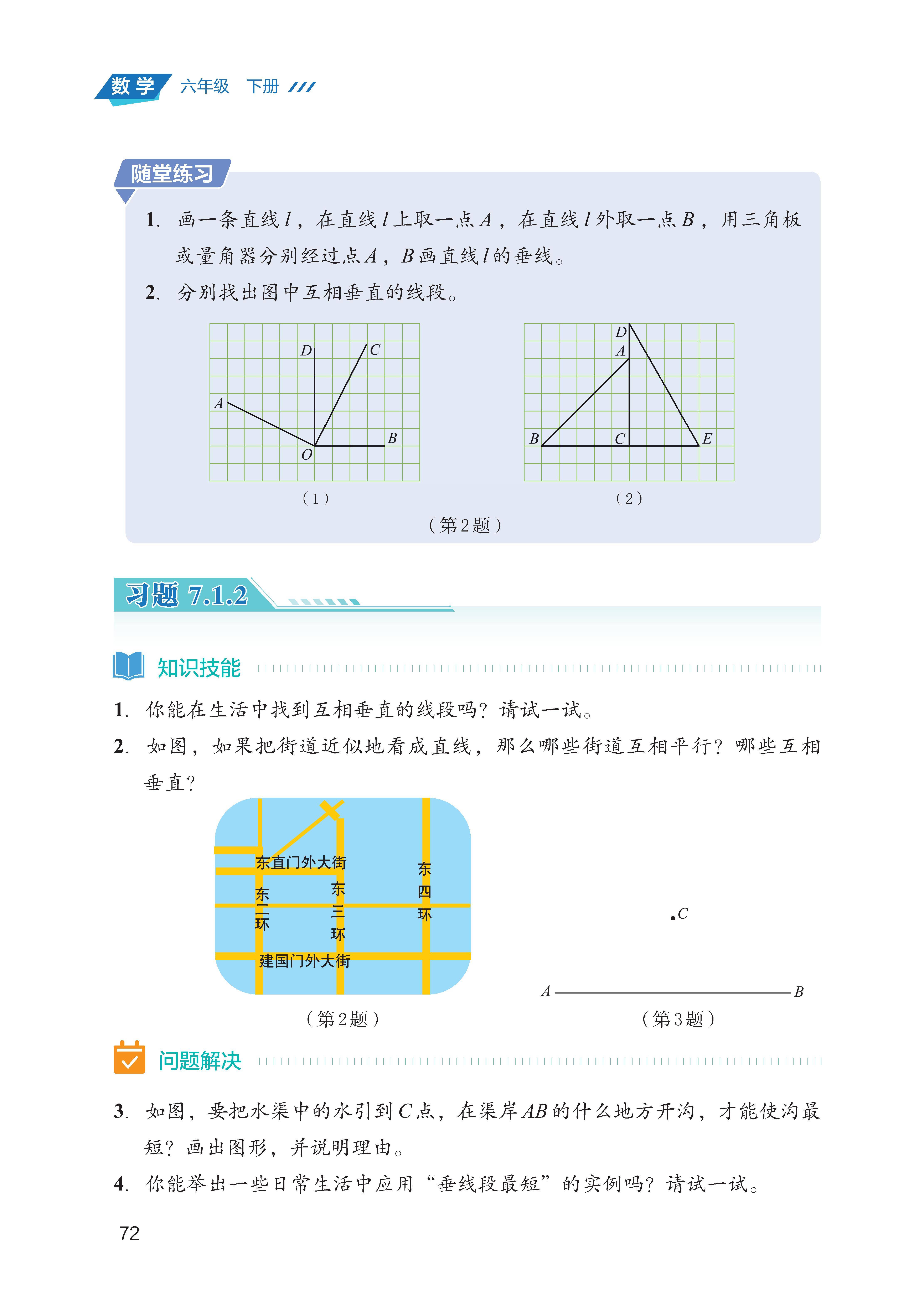相交线的核心概念:认识对顶角(相等)、邻补角(和为 180°),掌握垂直的定义(两条直线相交成 90°)、性质(过一点有且只有一条直线与已知直线垂直)及点到直线的距离(垂线段最短)。