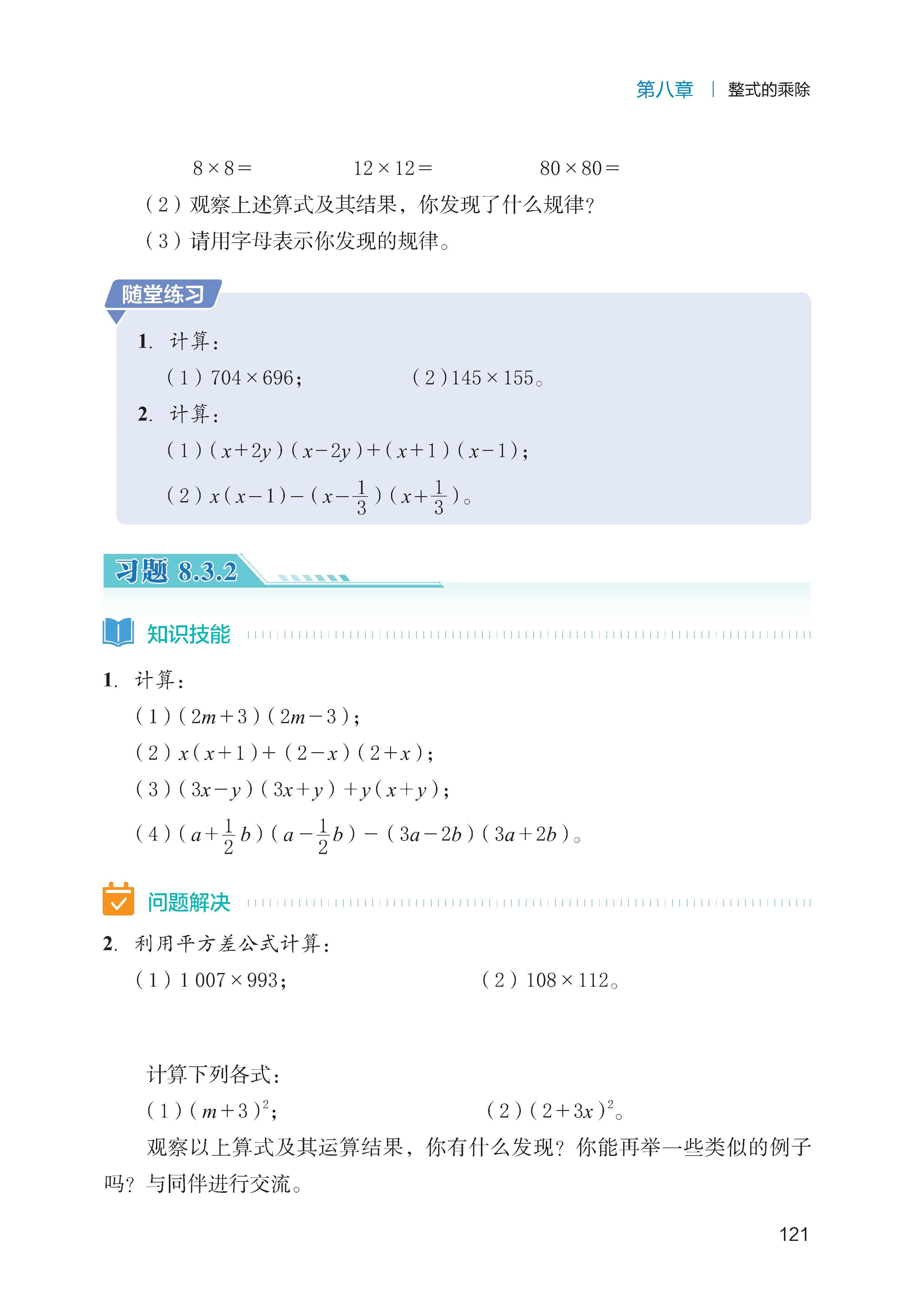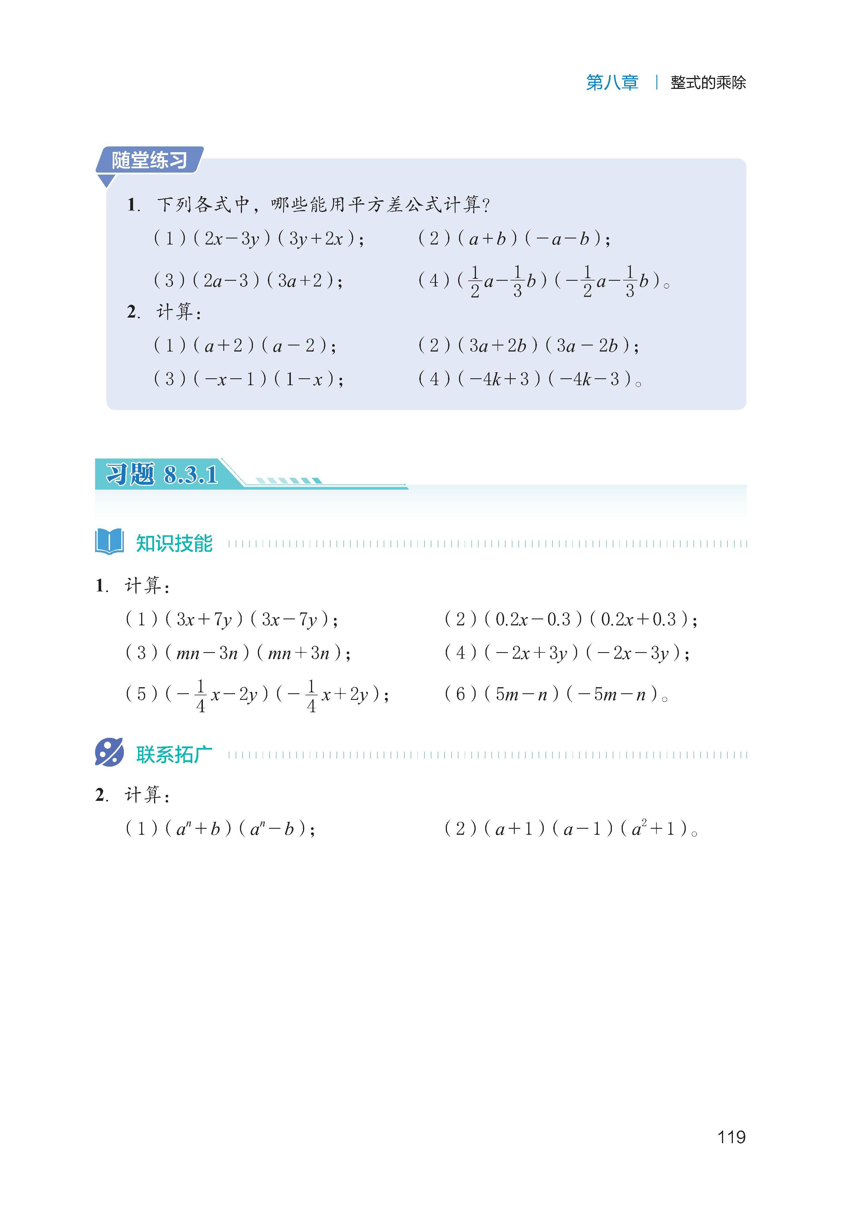 乘法公式:熟练运用平方差公式(