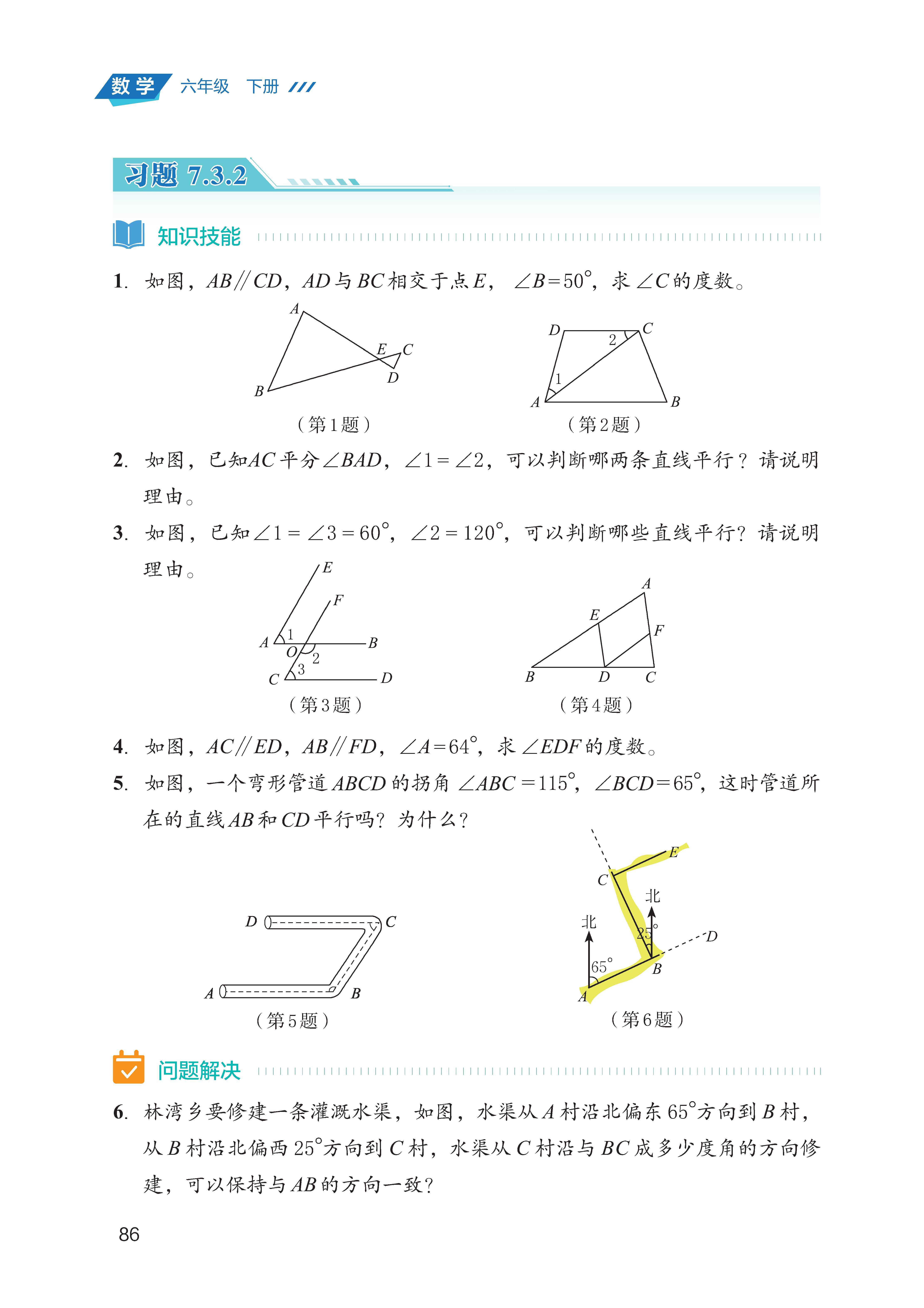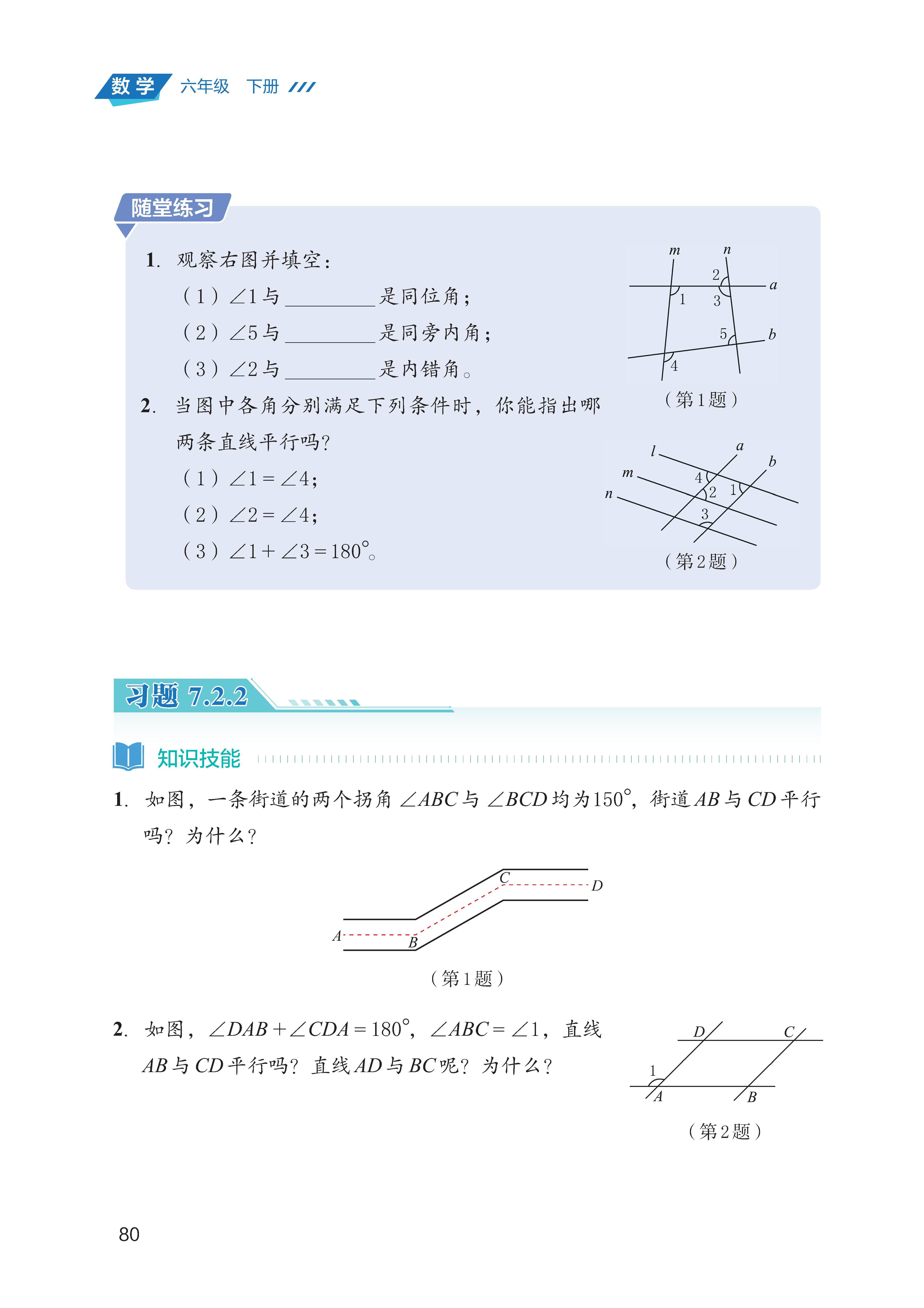 判定:能根据 “同位角相等”“内错角相等”“同旁内角互补”,判断两条直线平行;