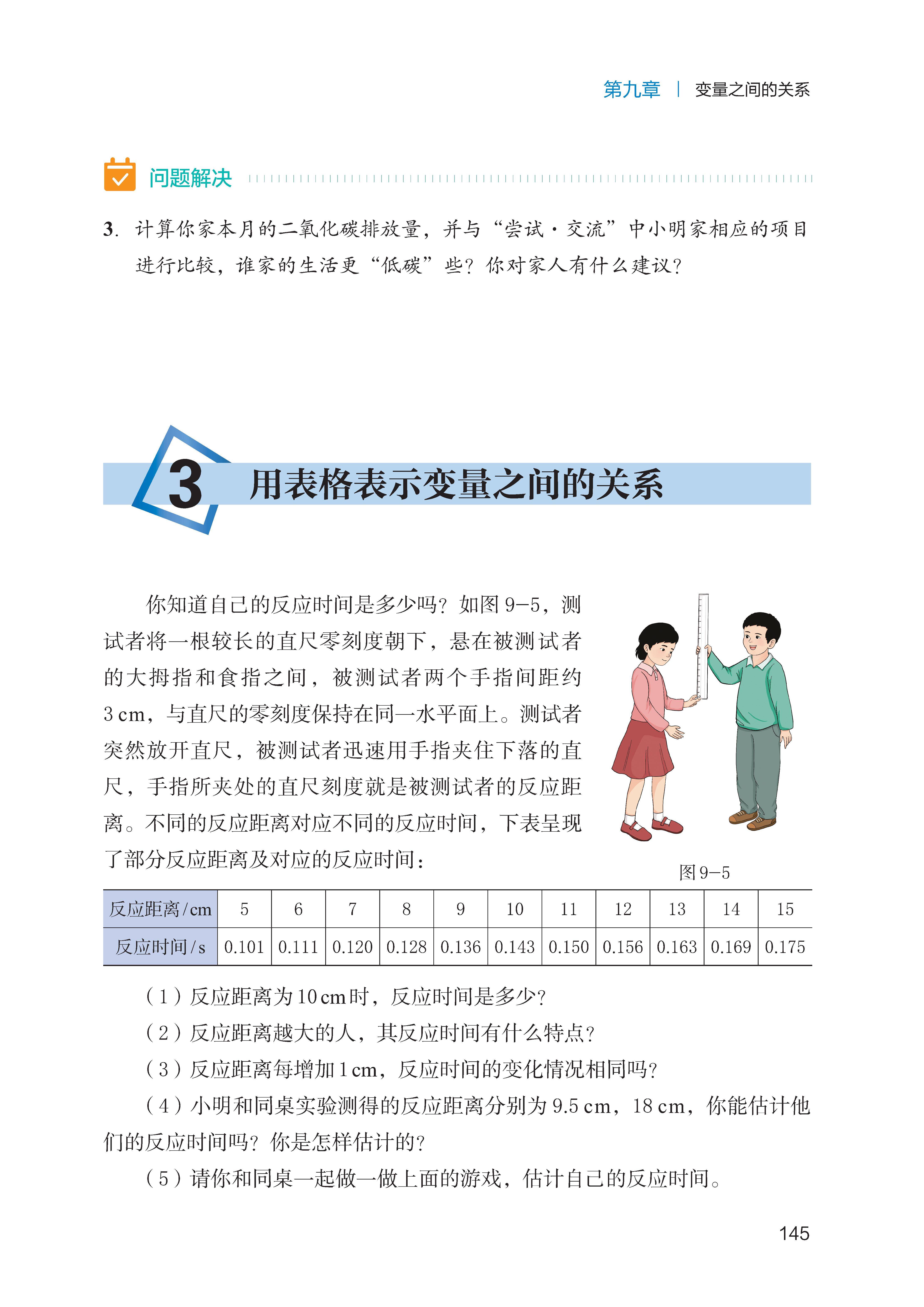 用表格表示变量之间的关系