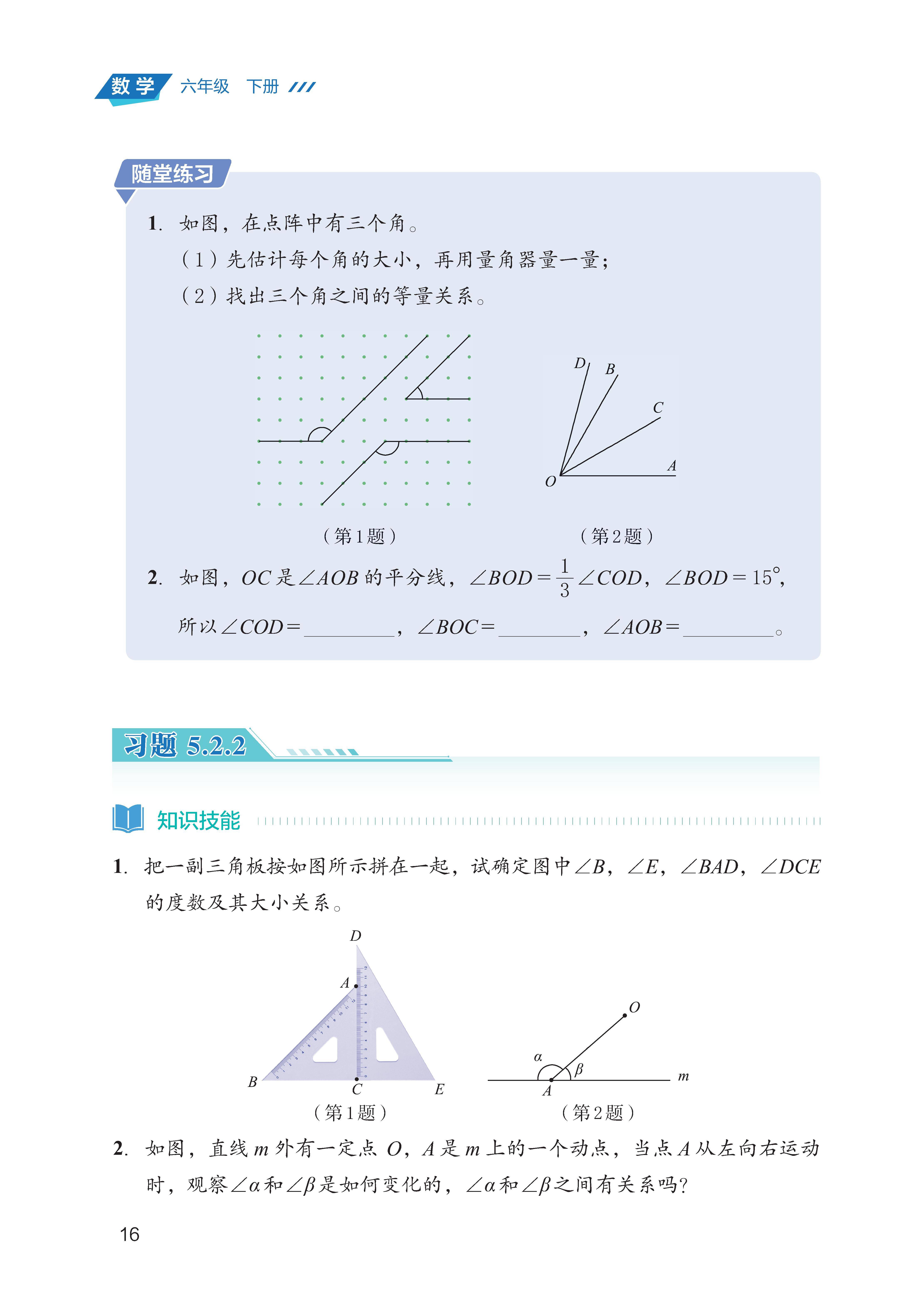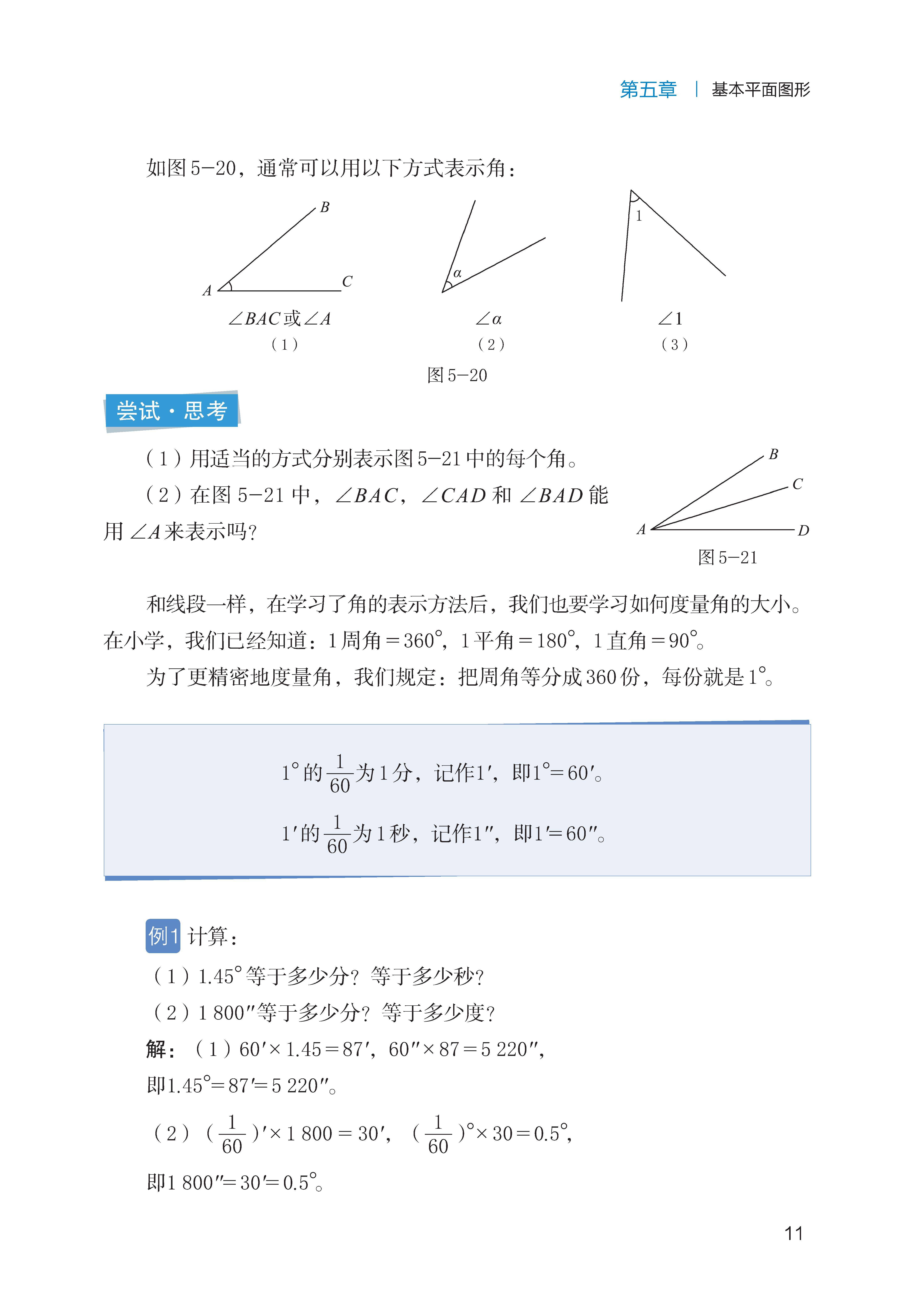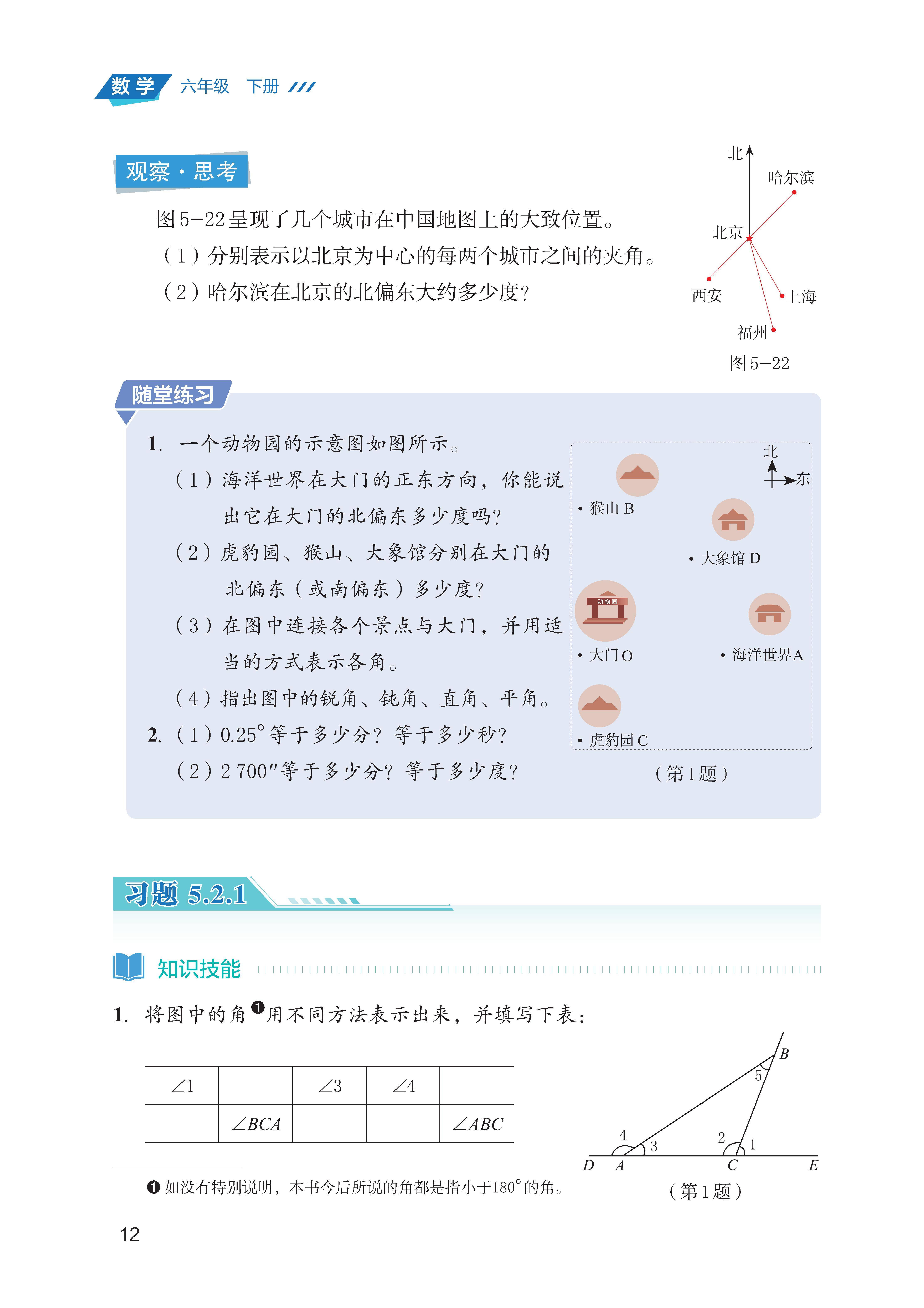 会用量角器测量角的度数,能通过叠合法或度量法比较角的大小,掌握角的单位换算(1°=60′,1′=60″)。