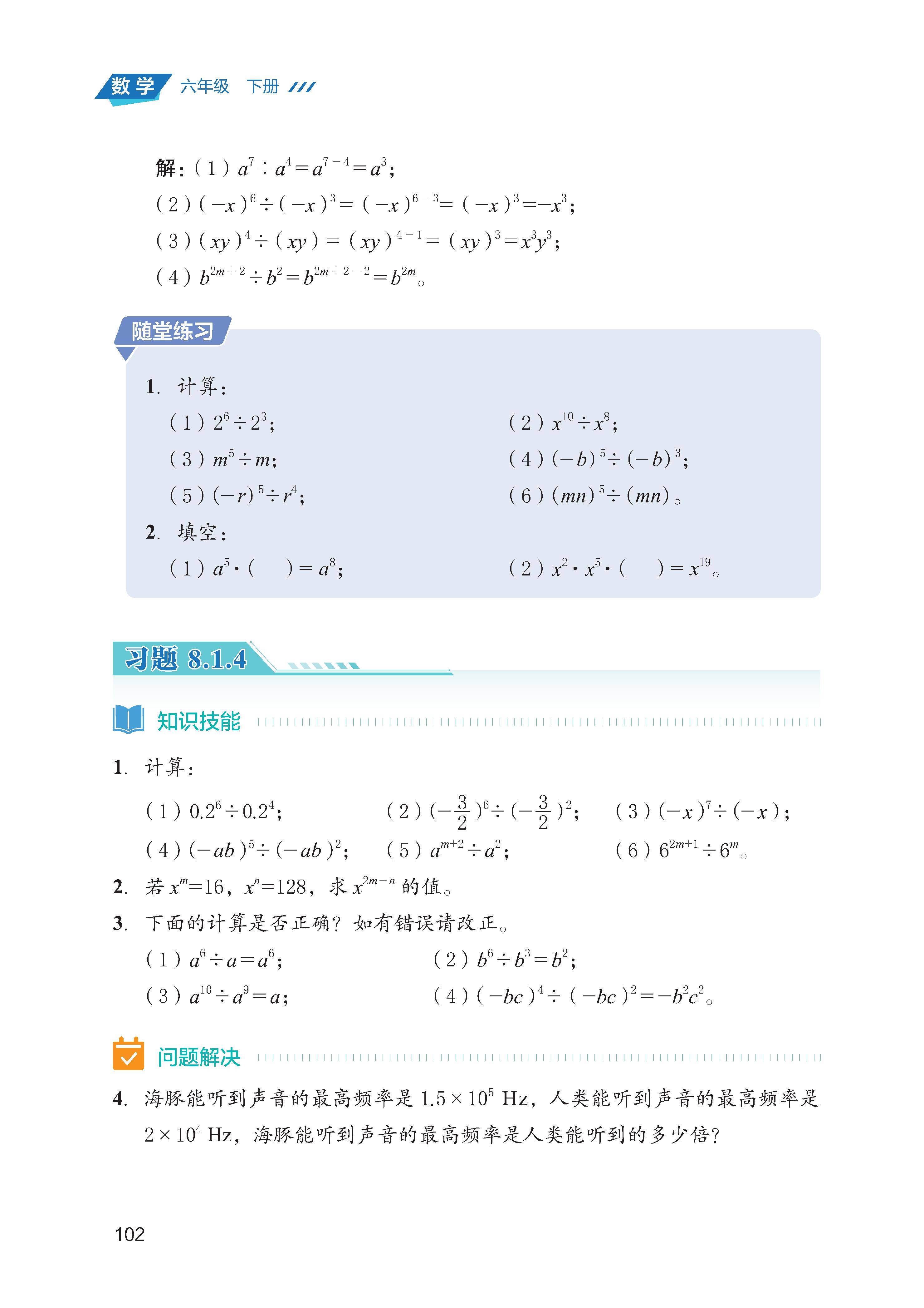 )、同底数幂的除法(