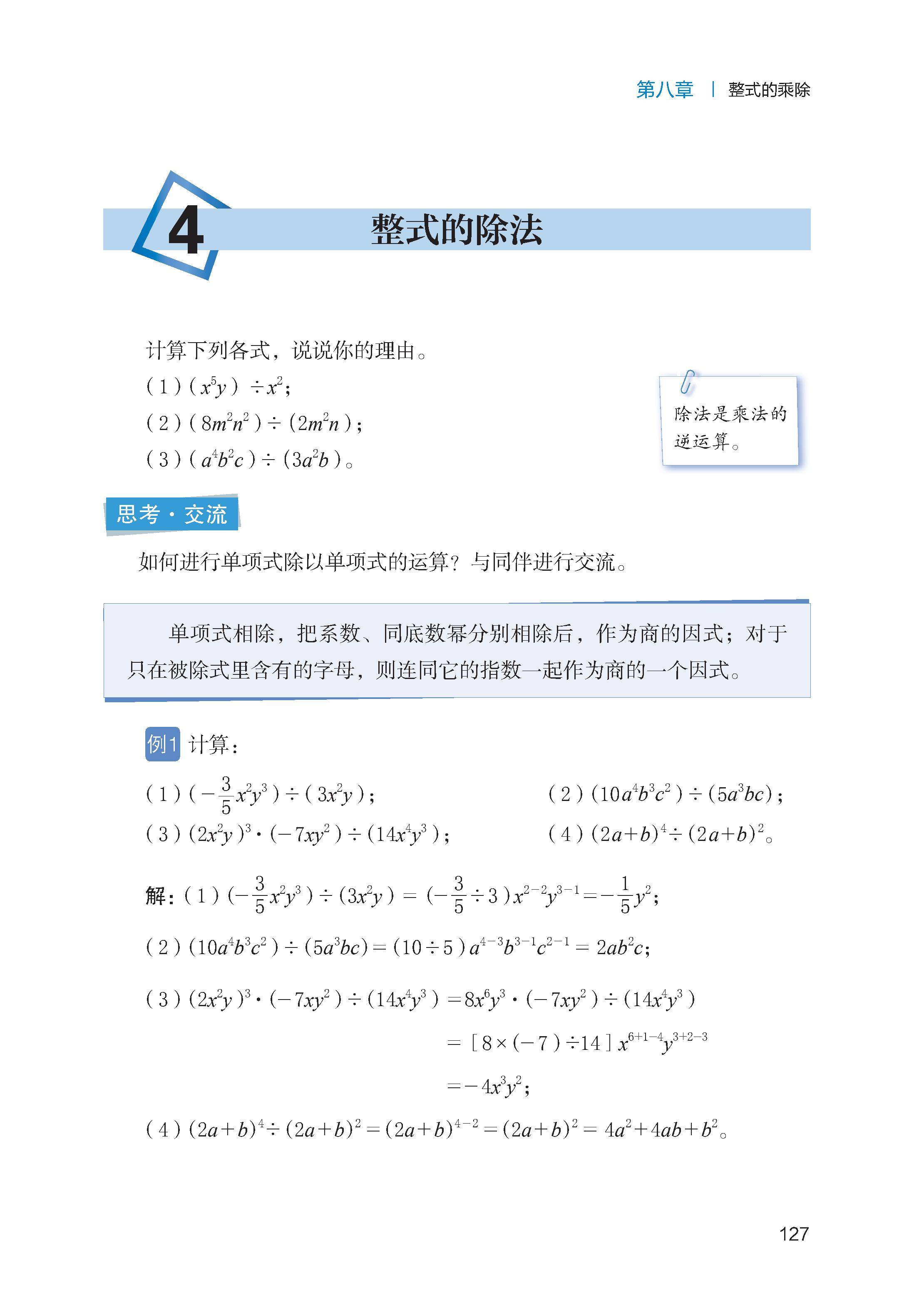 整式的除法