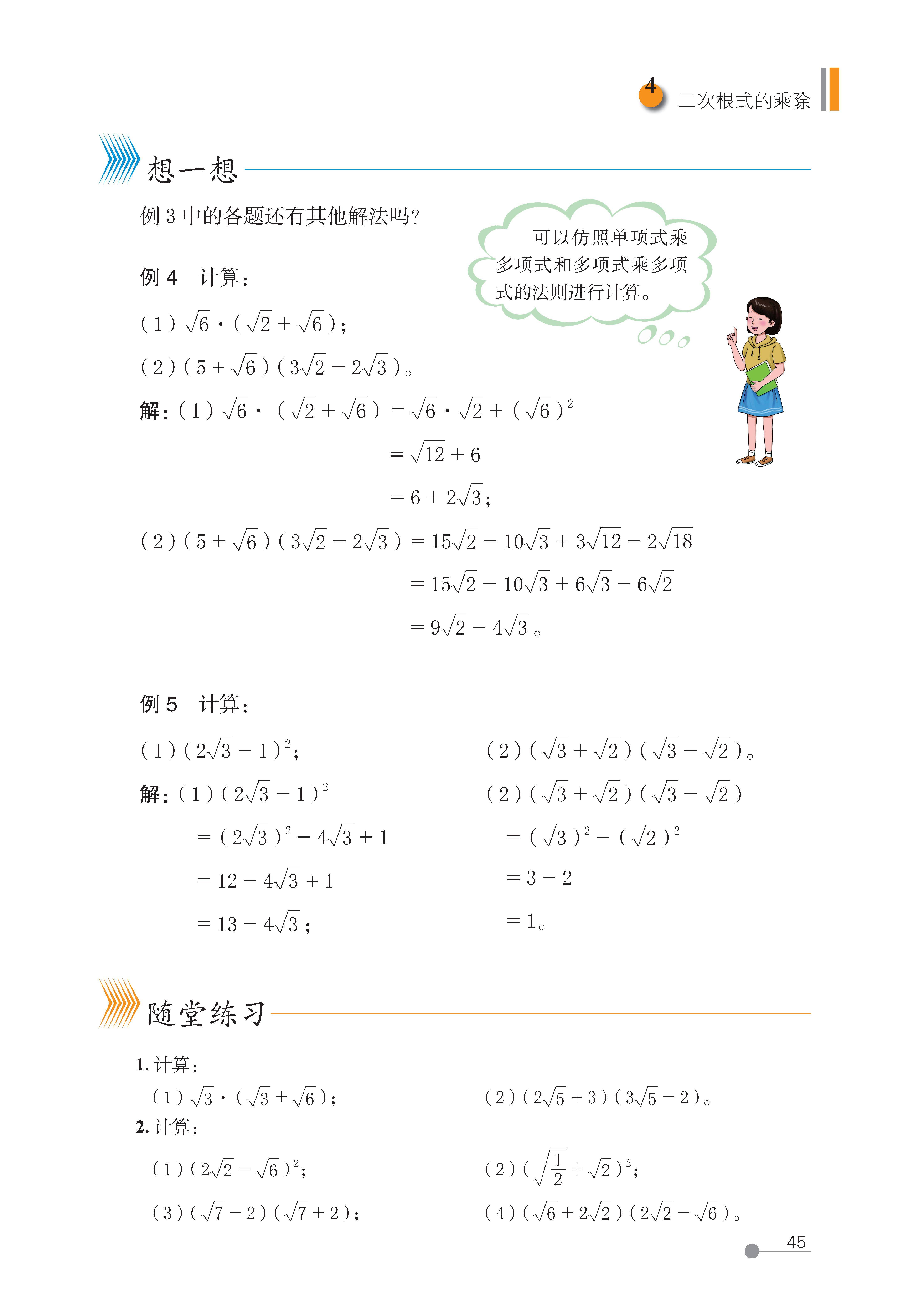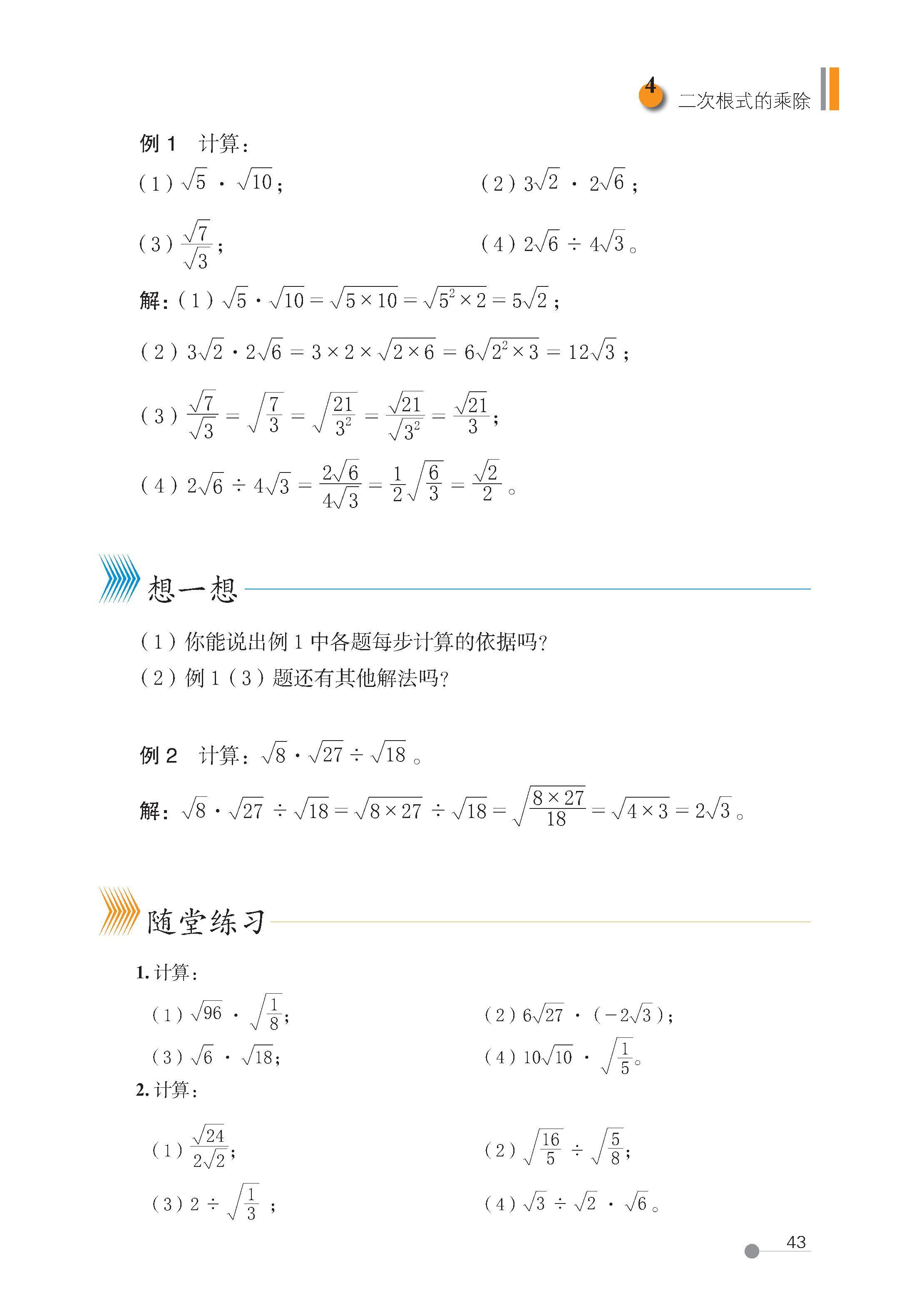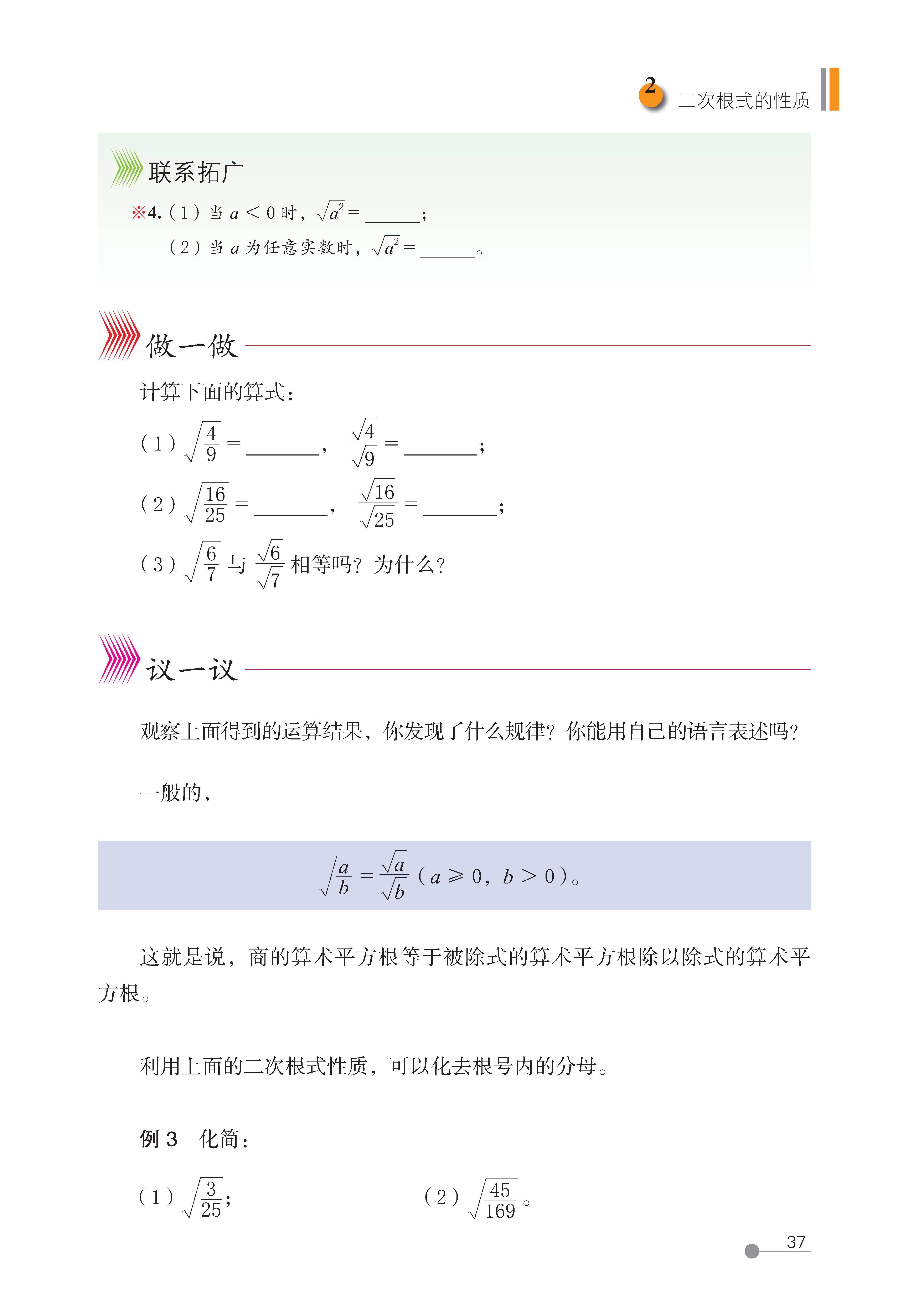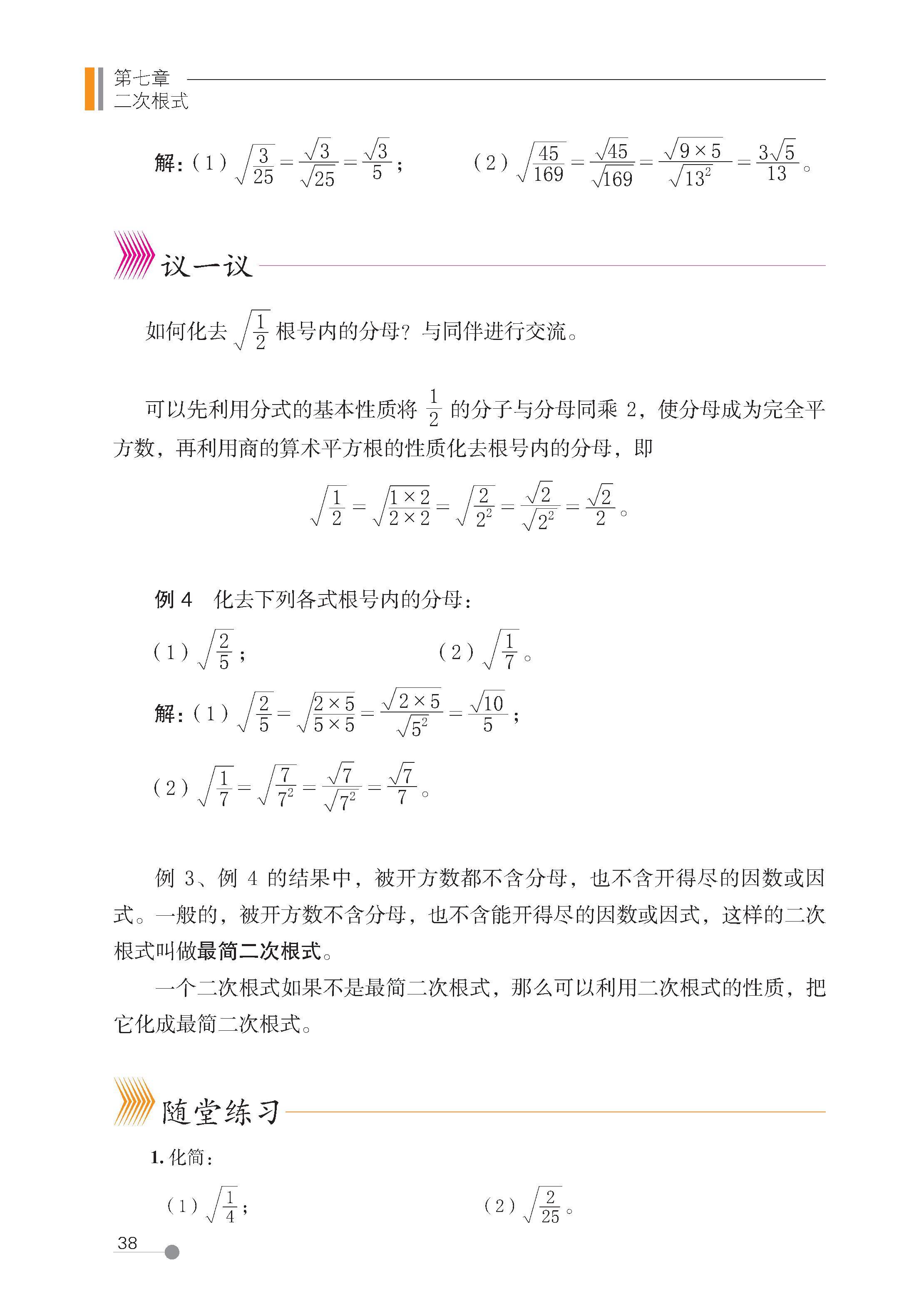 第七章 “二次根式”:核心是 “运算规则”,如√a・√b=√(ab)(a≥0,b≥0)、√a/√b=√(a/b)(a≥0,b>0),虽有 “分母有理化” 等细节,但只要掌握步骤,无需复杂的图形分析或逻辑推理;