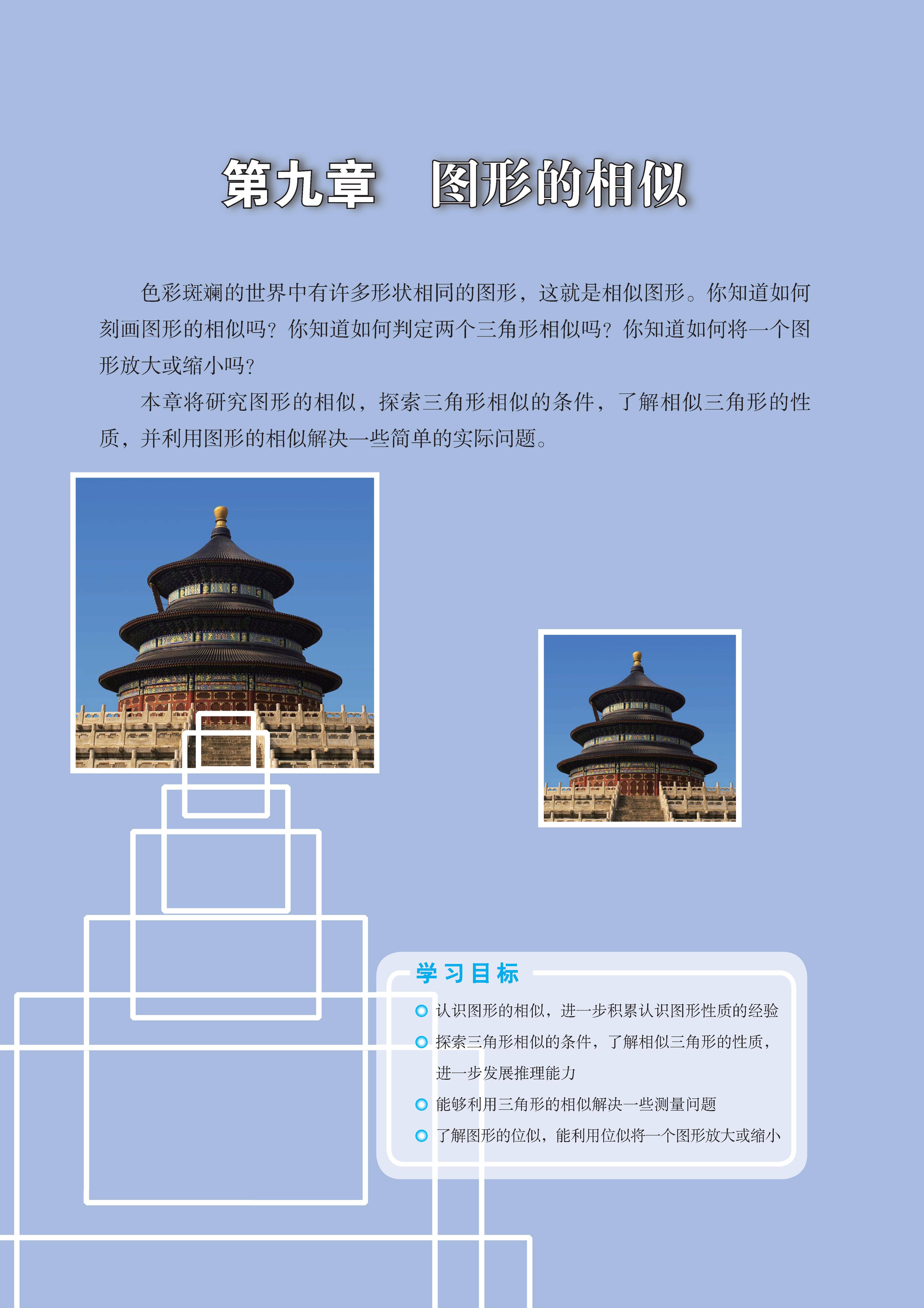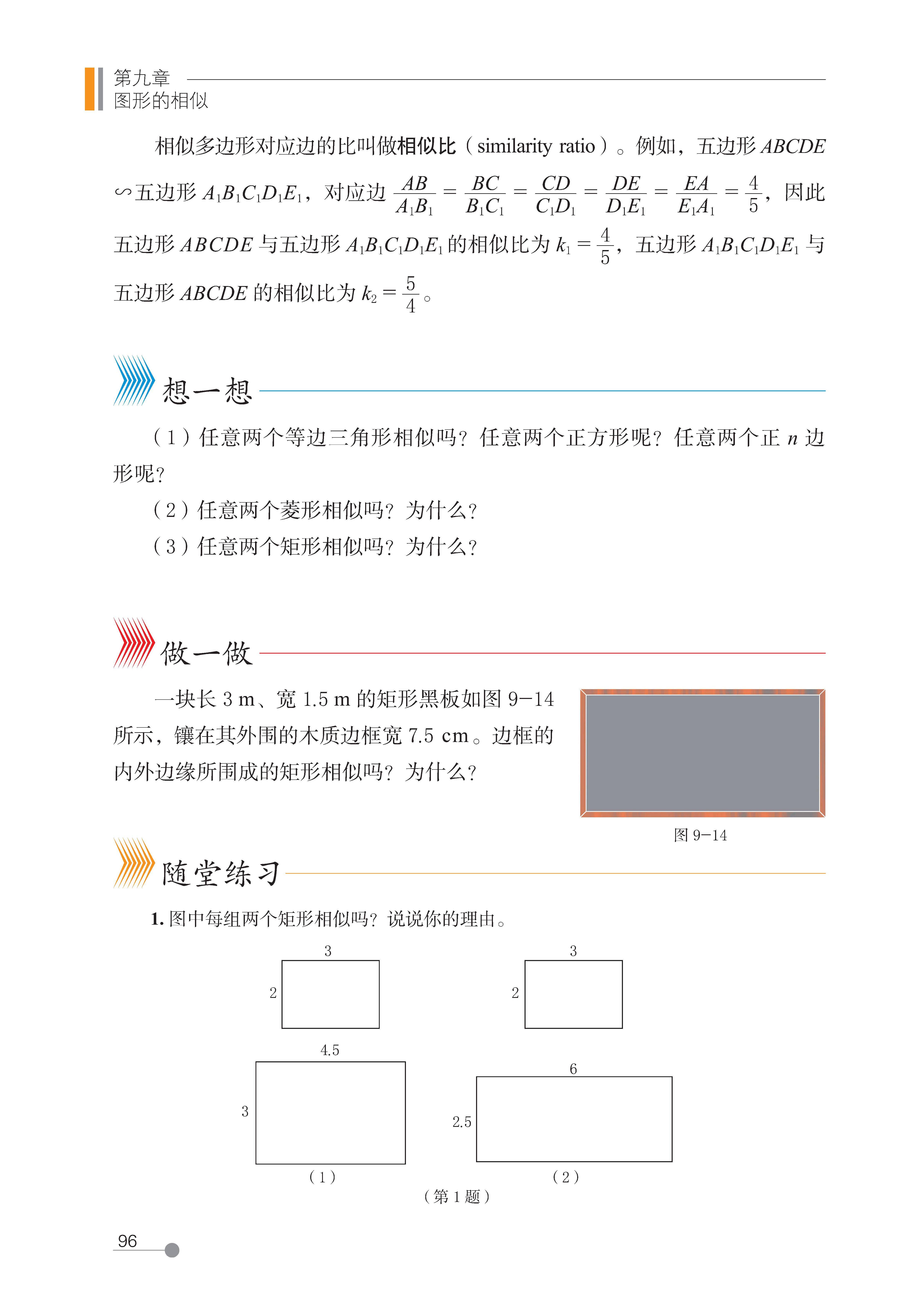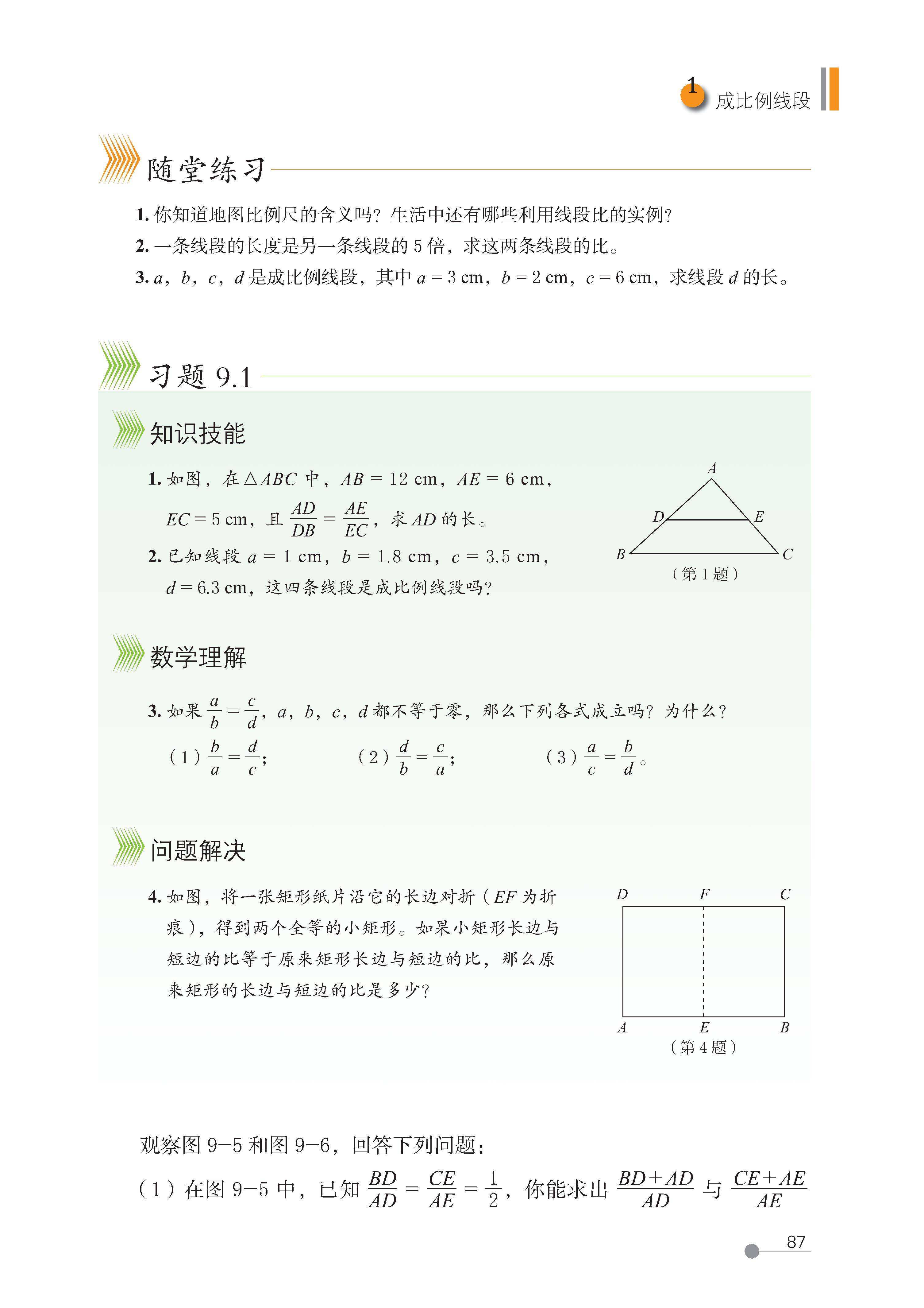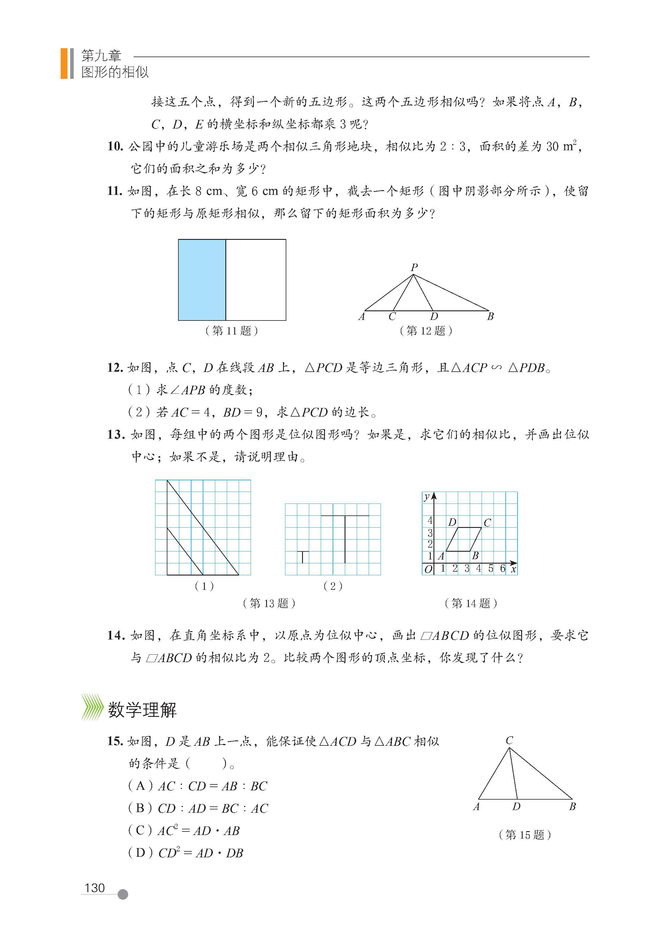第九章 图形的相似 成比例线段、相似多边形、相似三角形(判定 + 性质)、位似 1. 比例式的变形(合比、等比性质的应用);