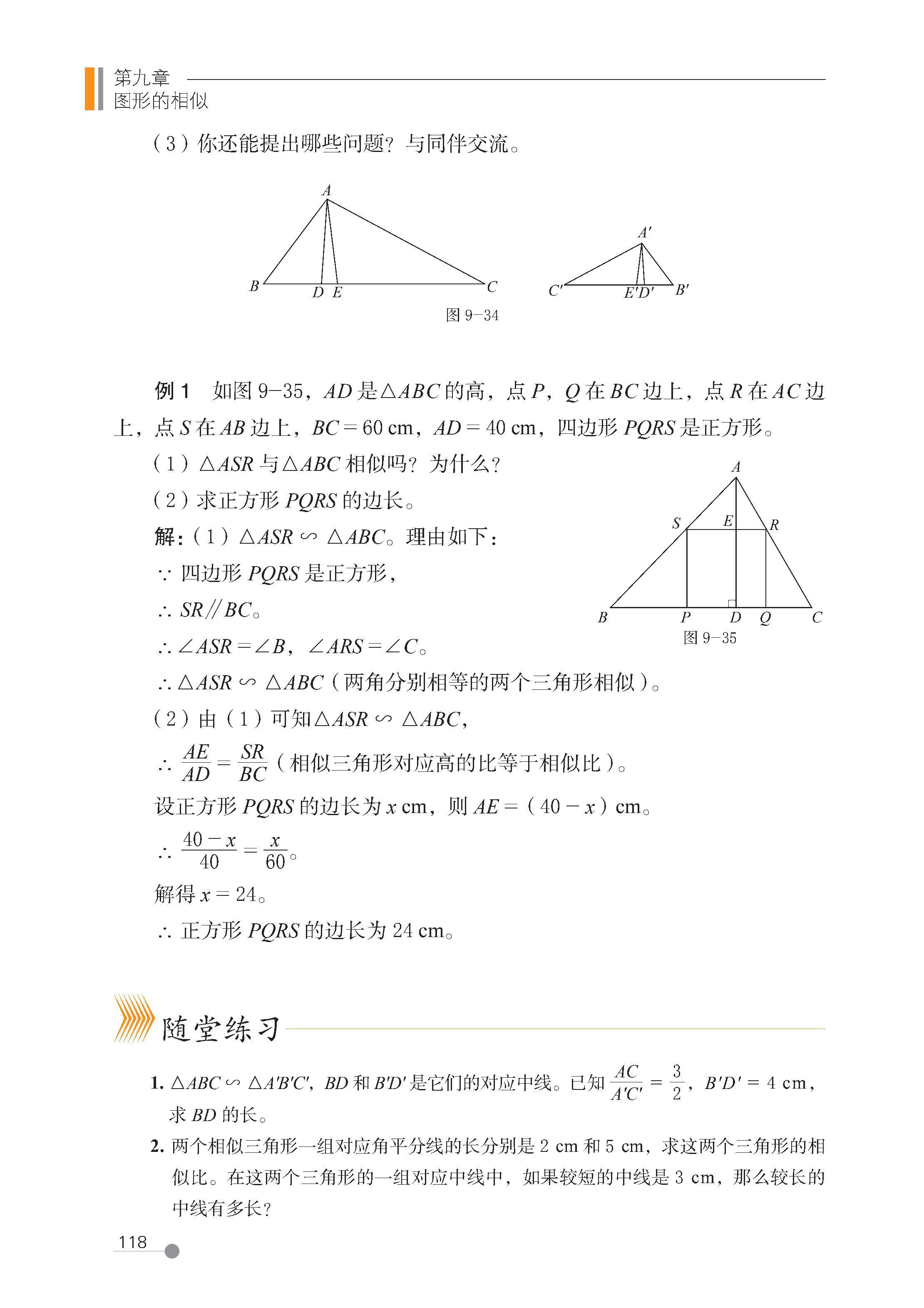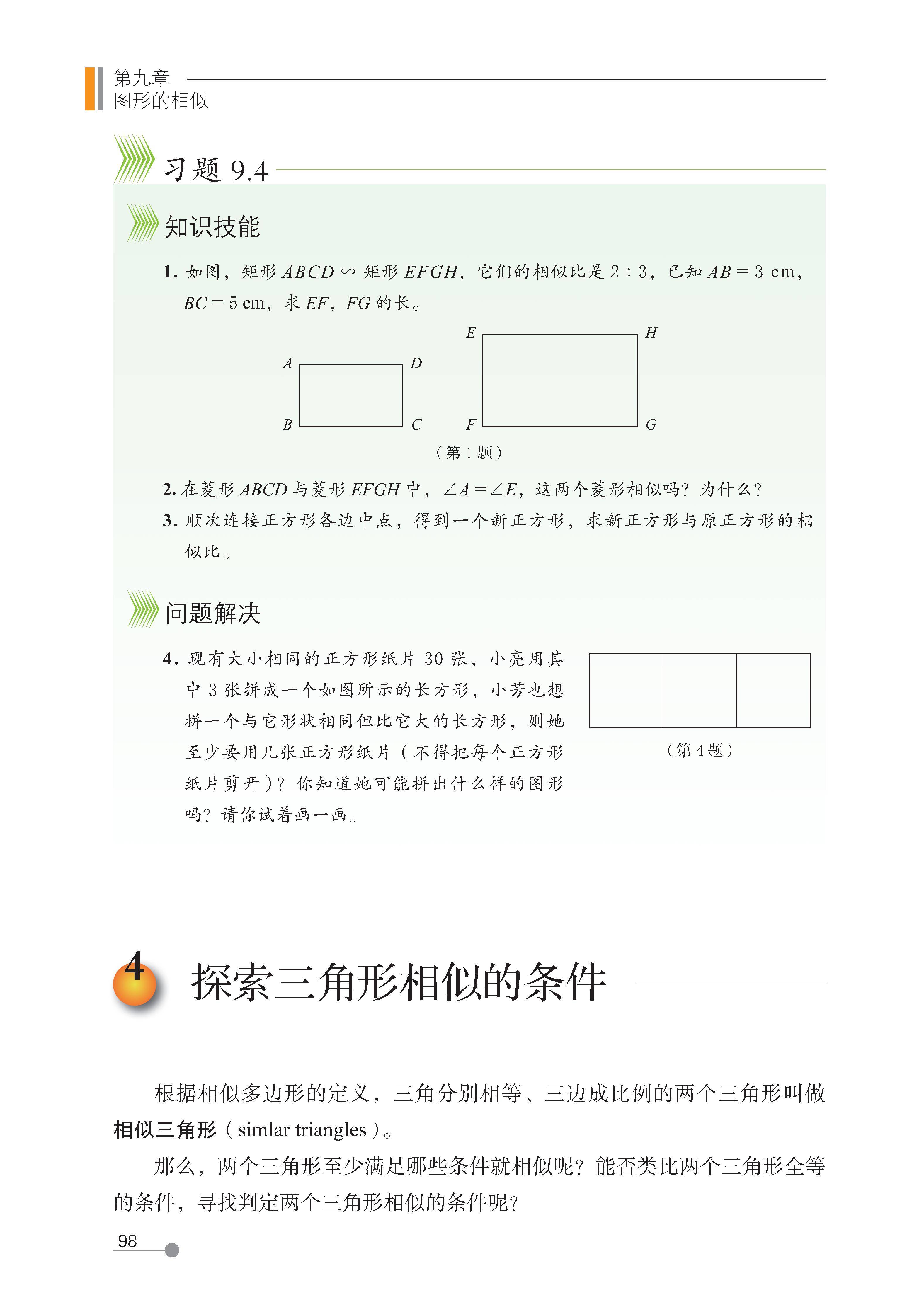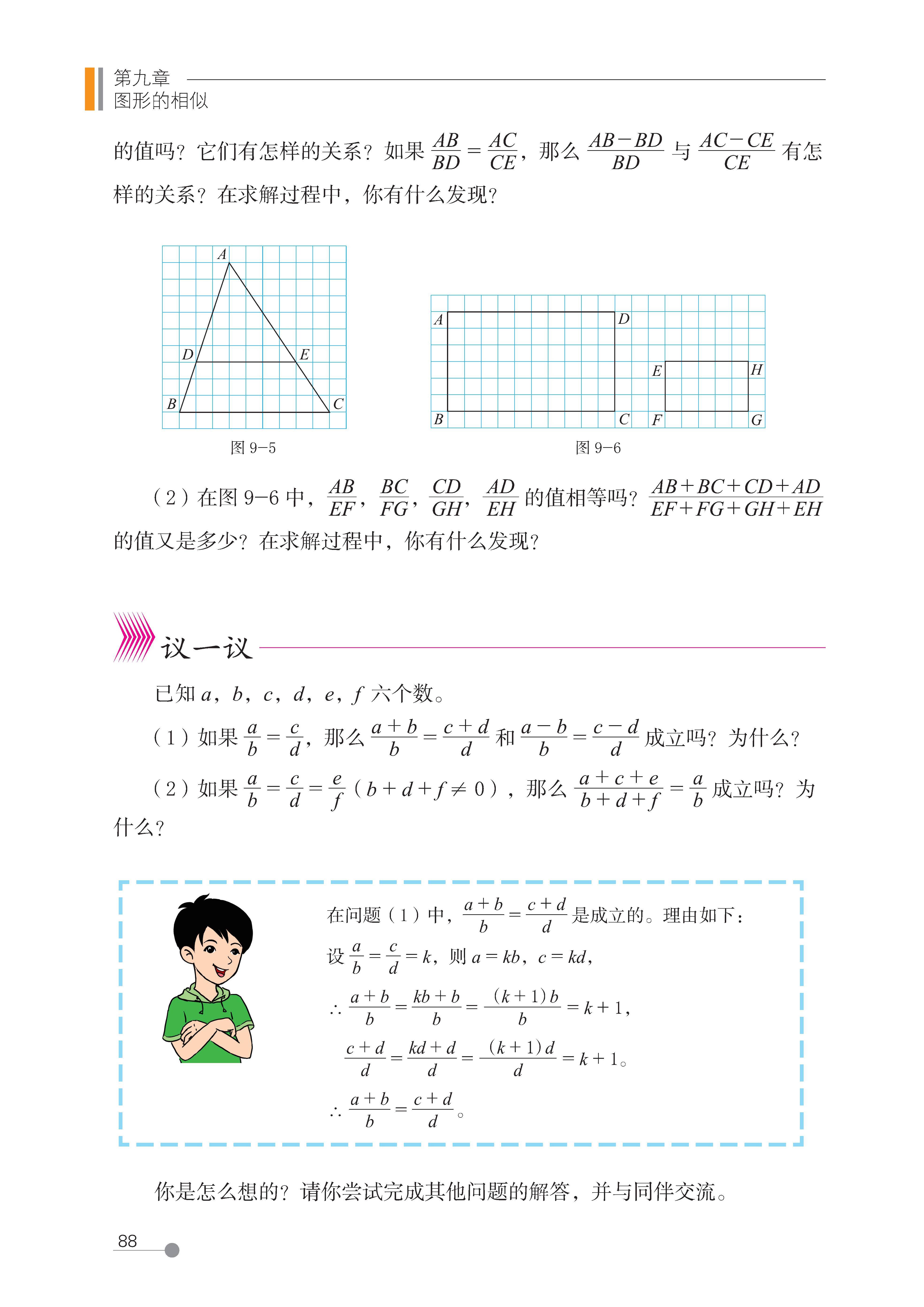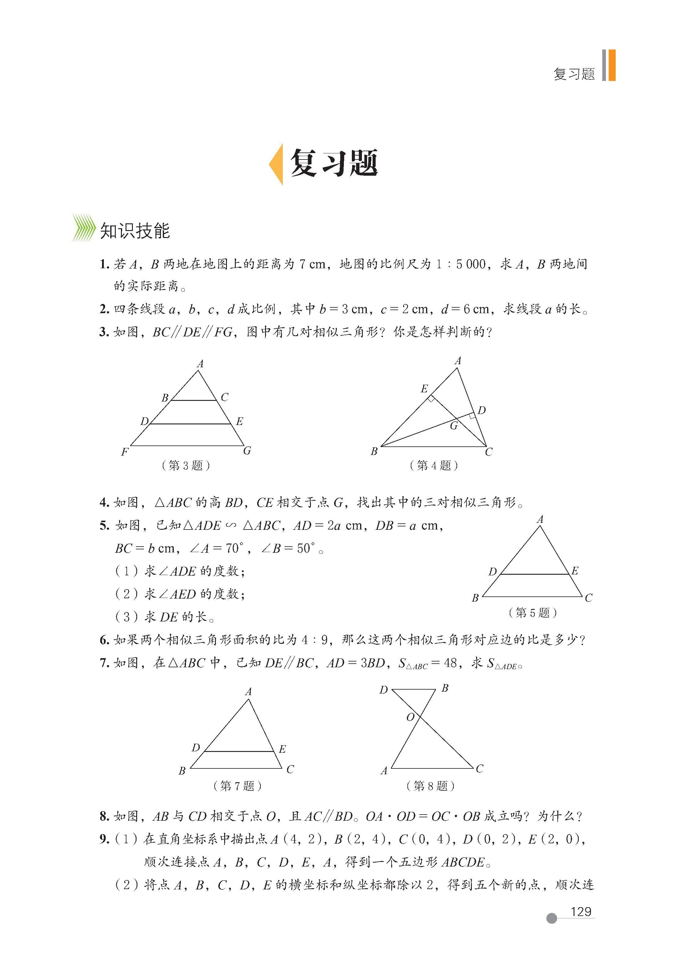 第九章 图形的相似 成比例线段、相似多边形、相似三角形(判定 + 性质)、位似 1. 比例式的变形(合比、等比性质的应用);