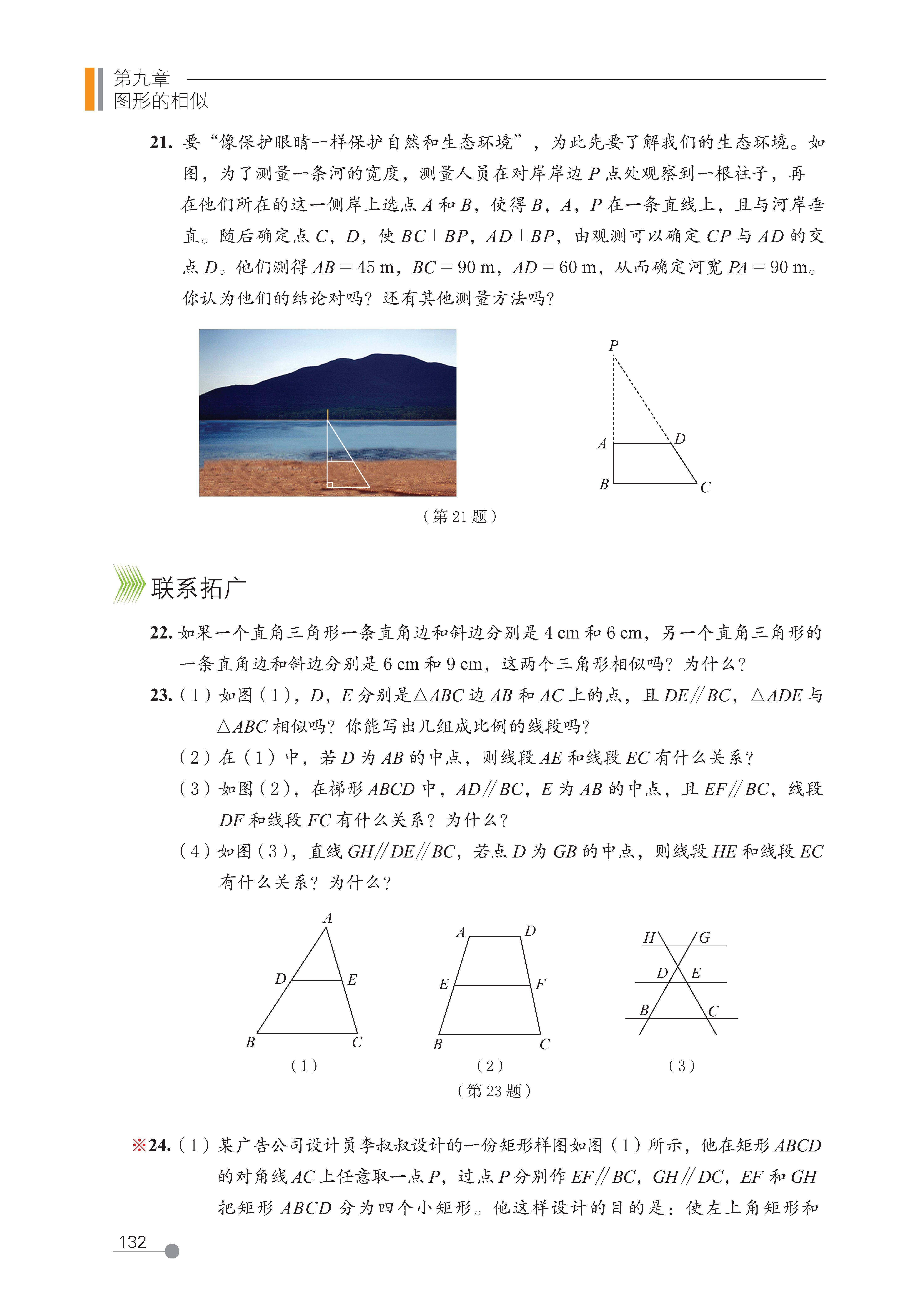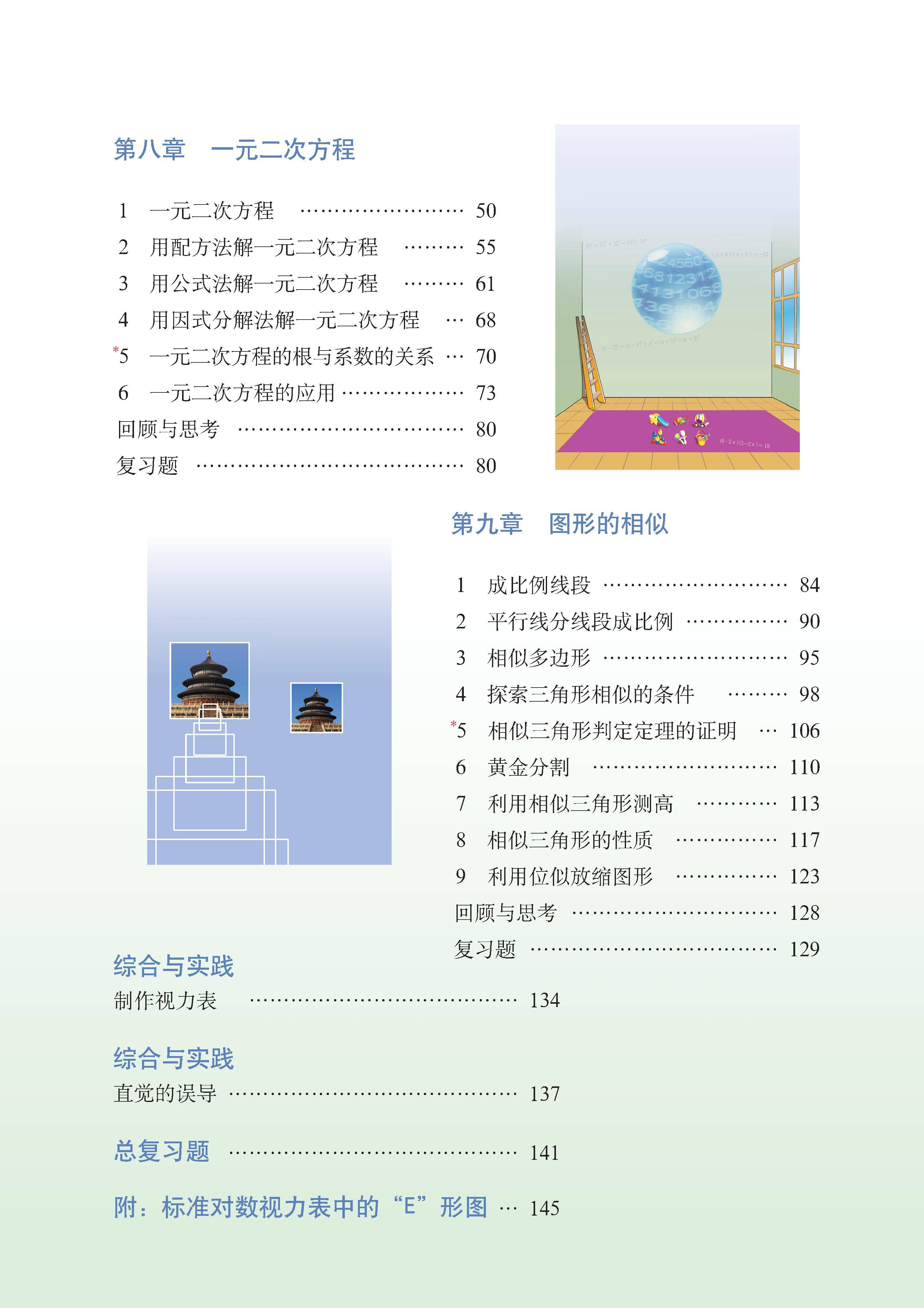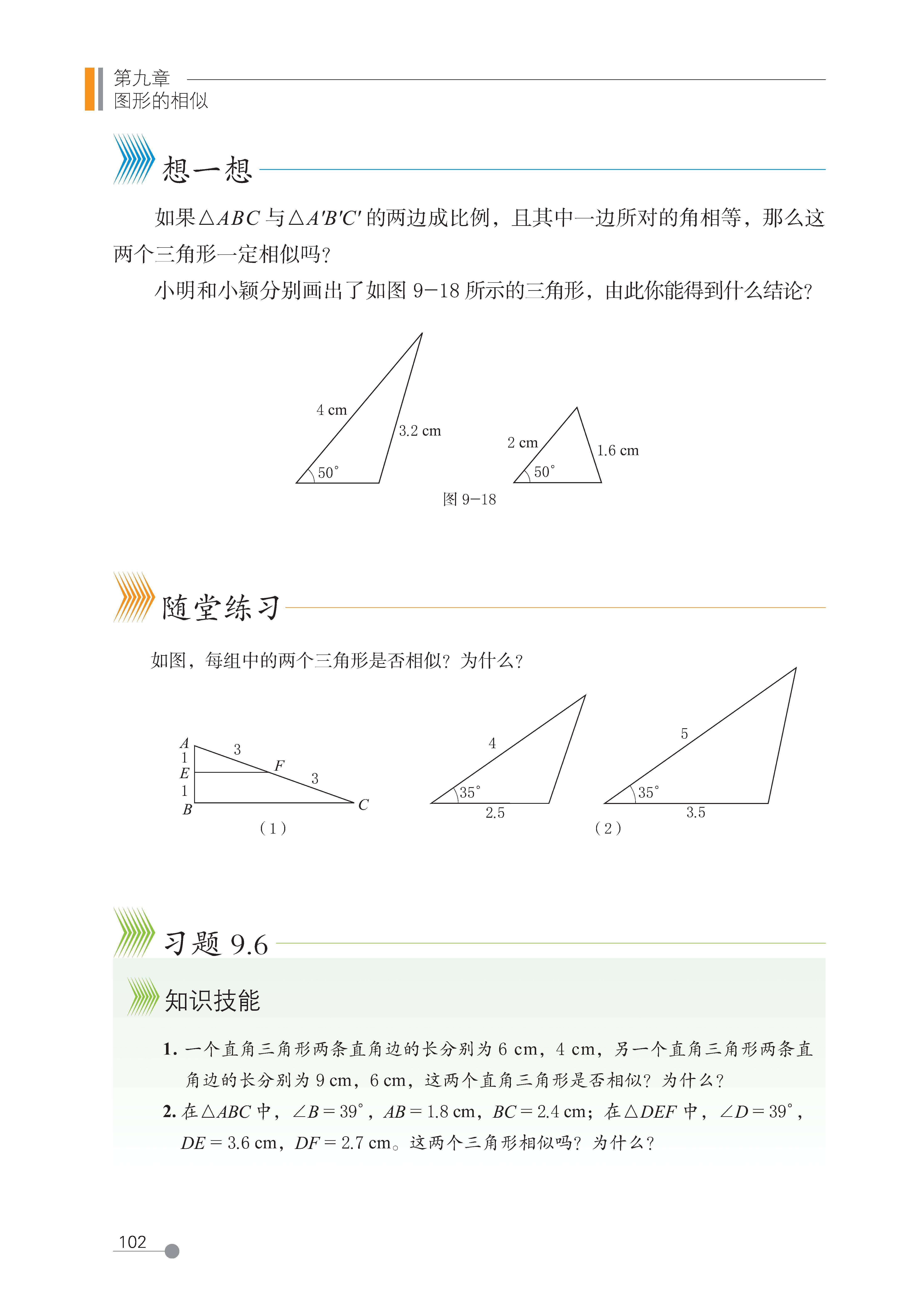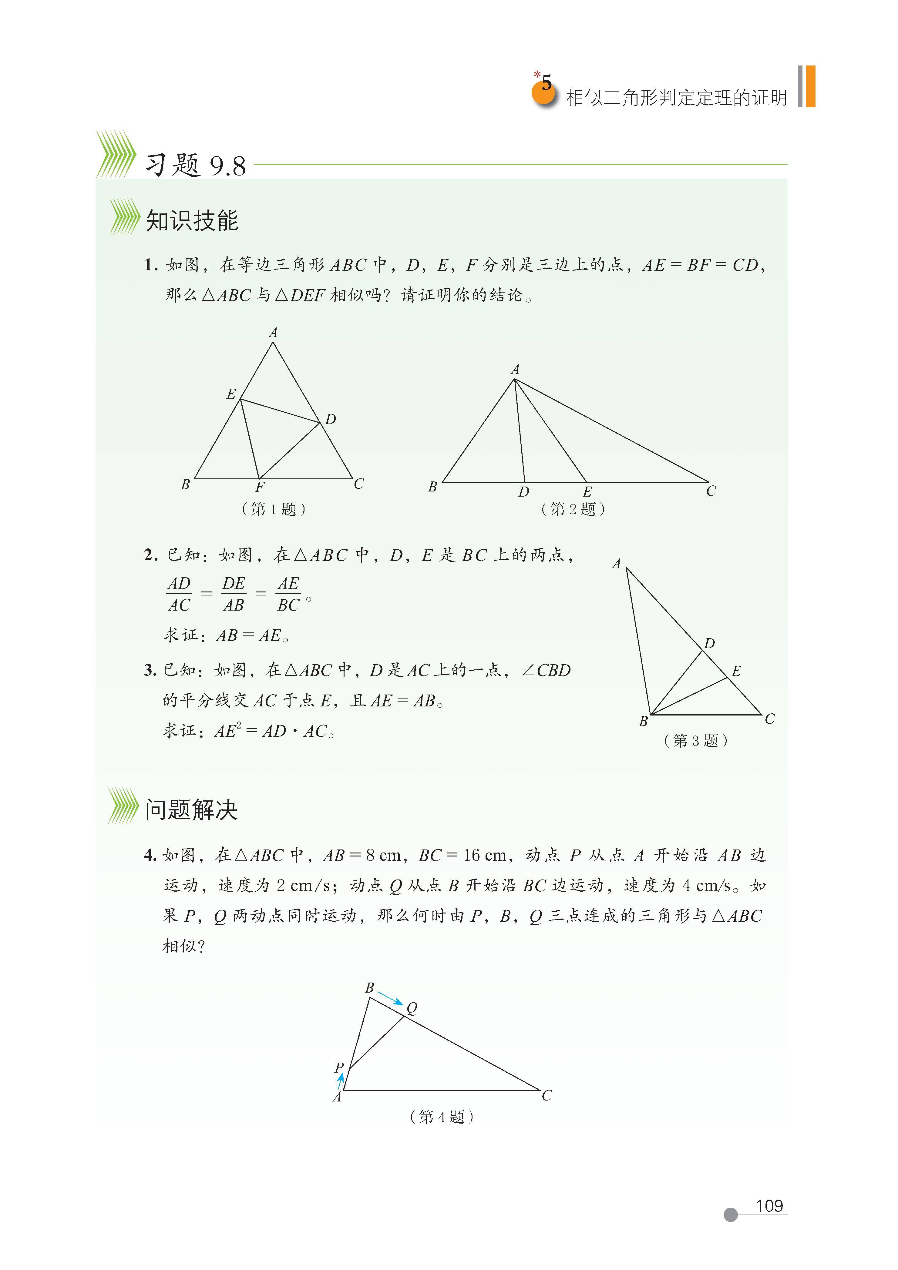 第九章 图形的相似 成比例线段、相似多边形、相似三角形(判定 + 性质)、位似 1. 比例式的变形(合比、等比性质的应用);