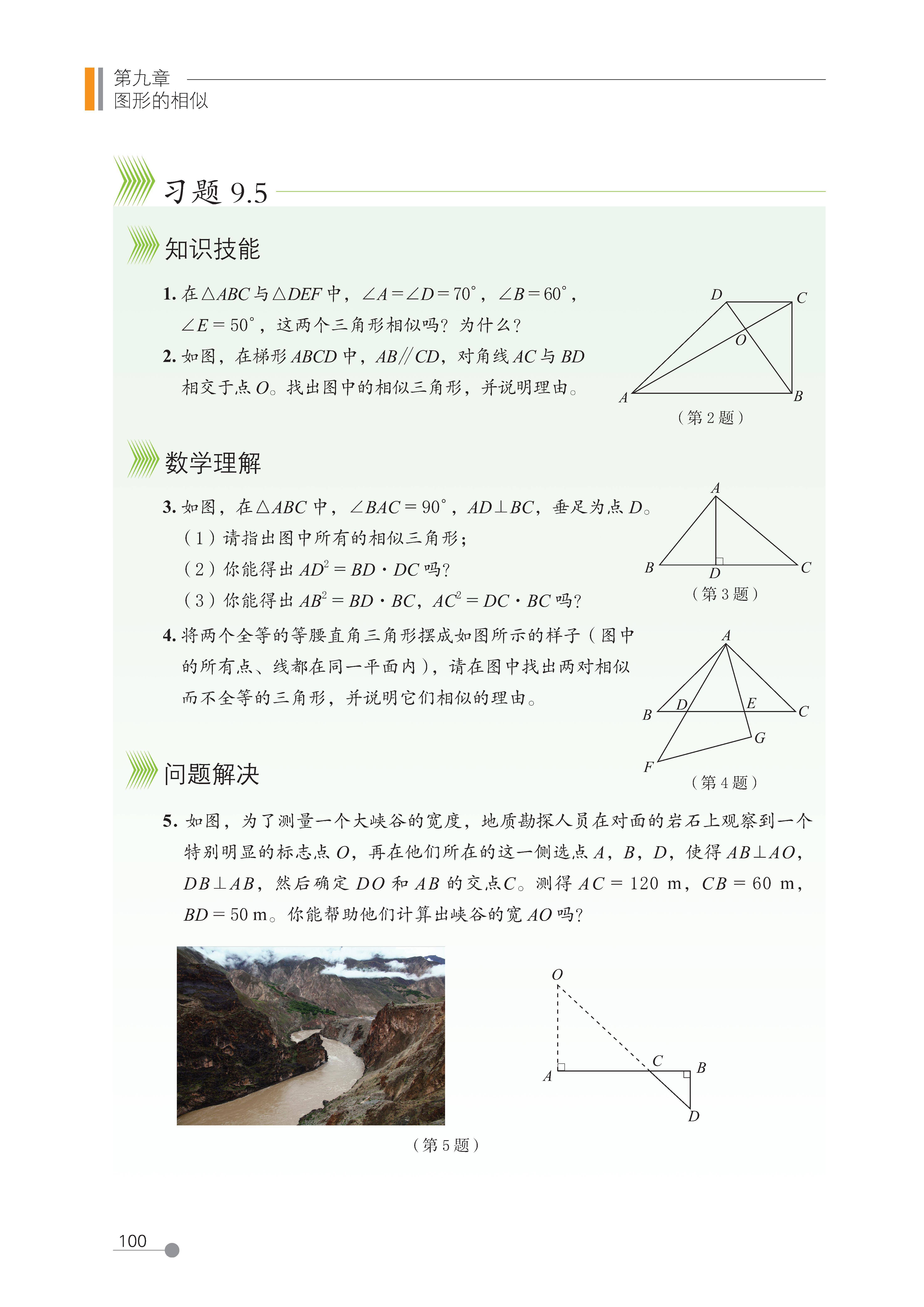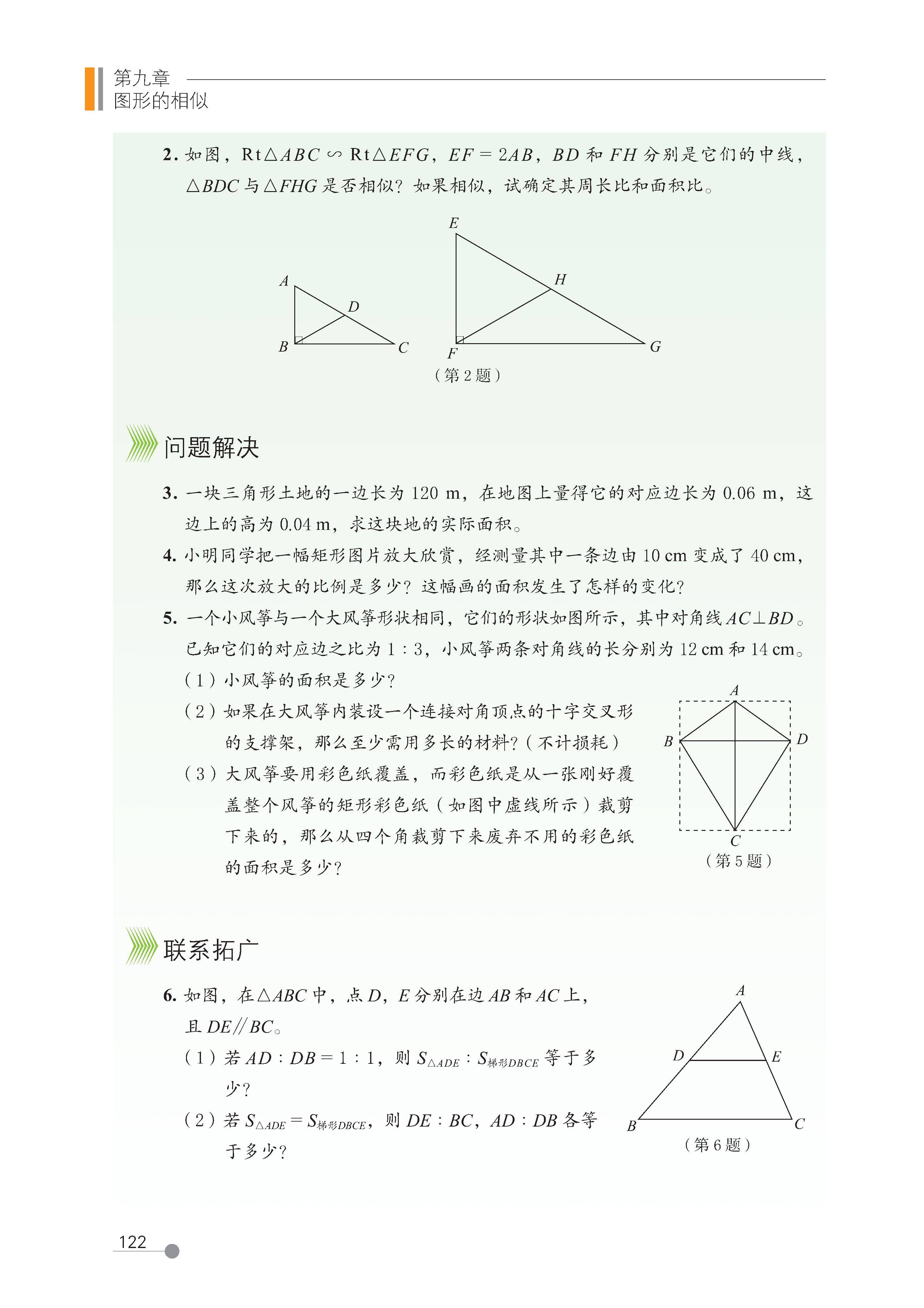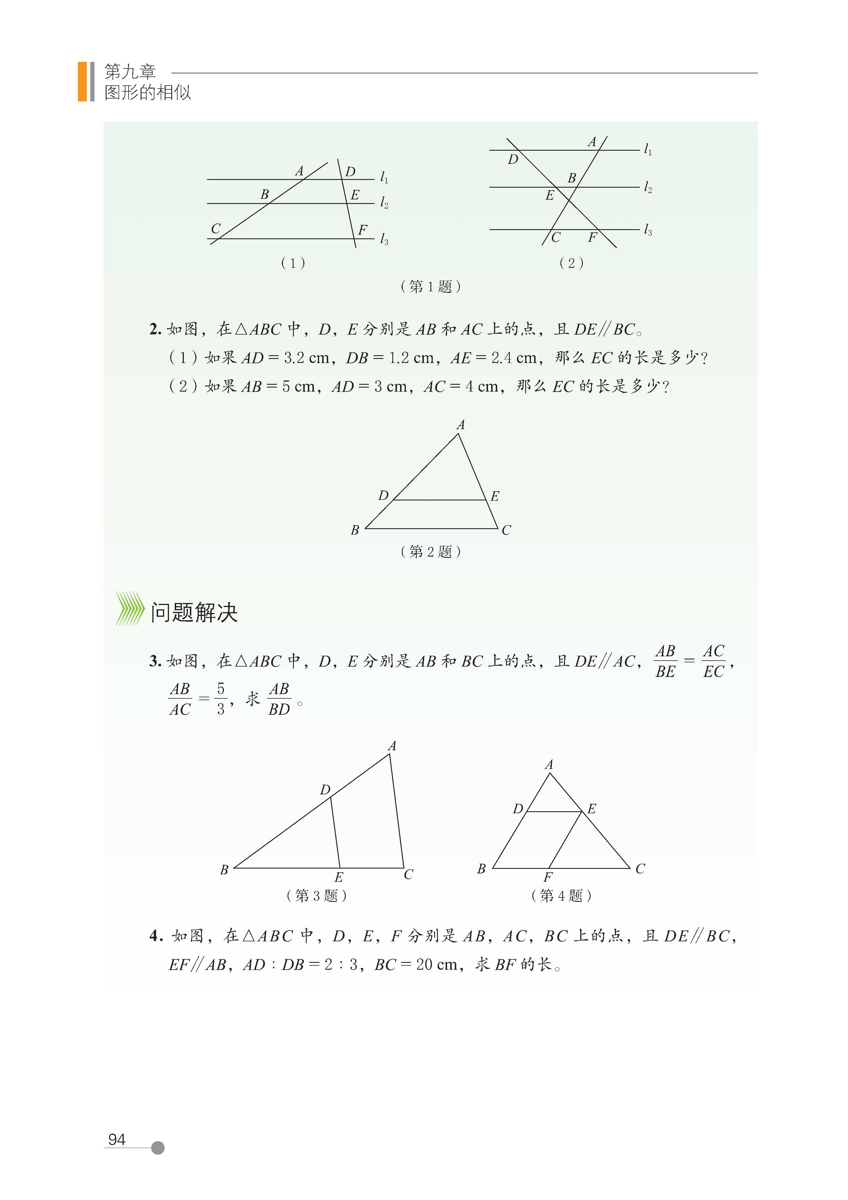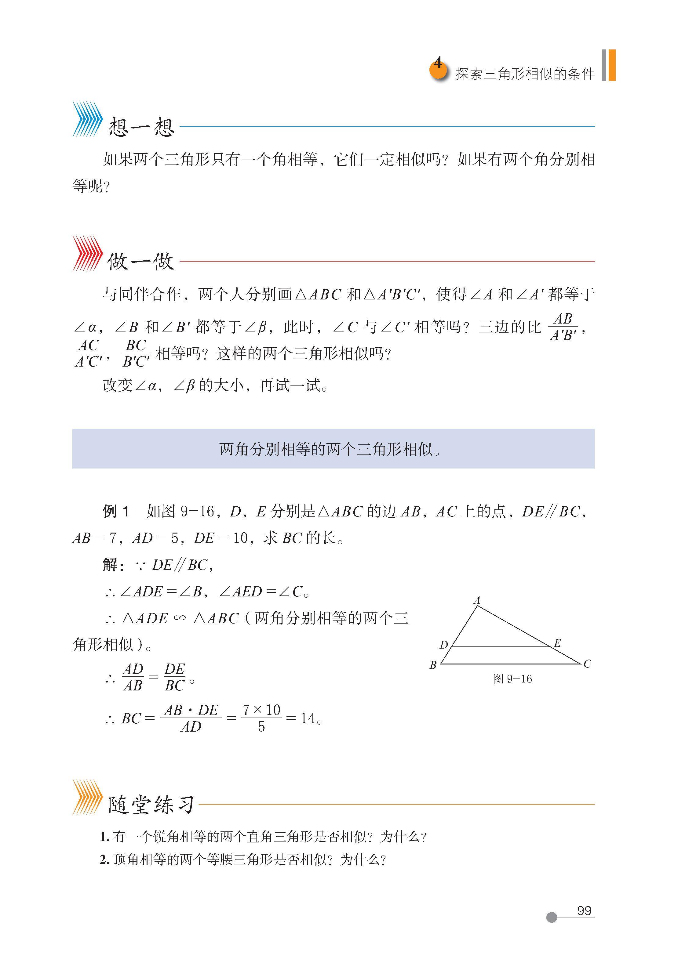 第九章 图形的相似 成比例线段、相似多边形、相似三角形(判定 + 性质)、位似 1. 比例式的变形(合比、等比性质的应用);