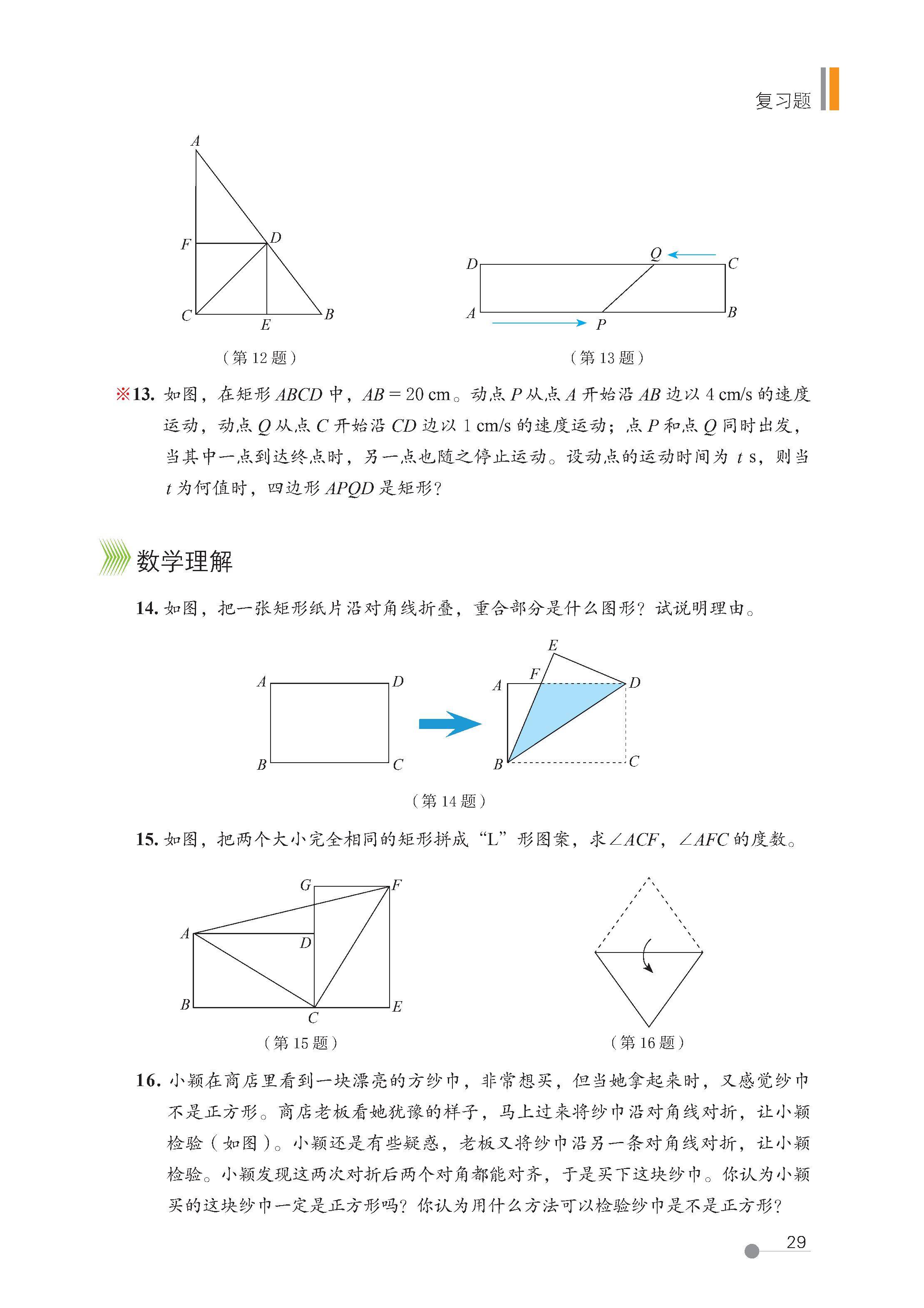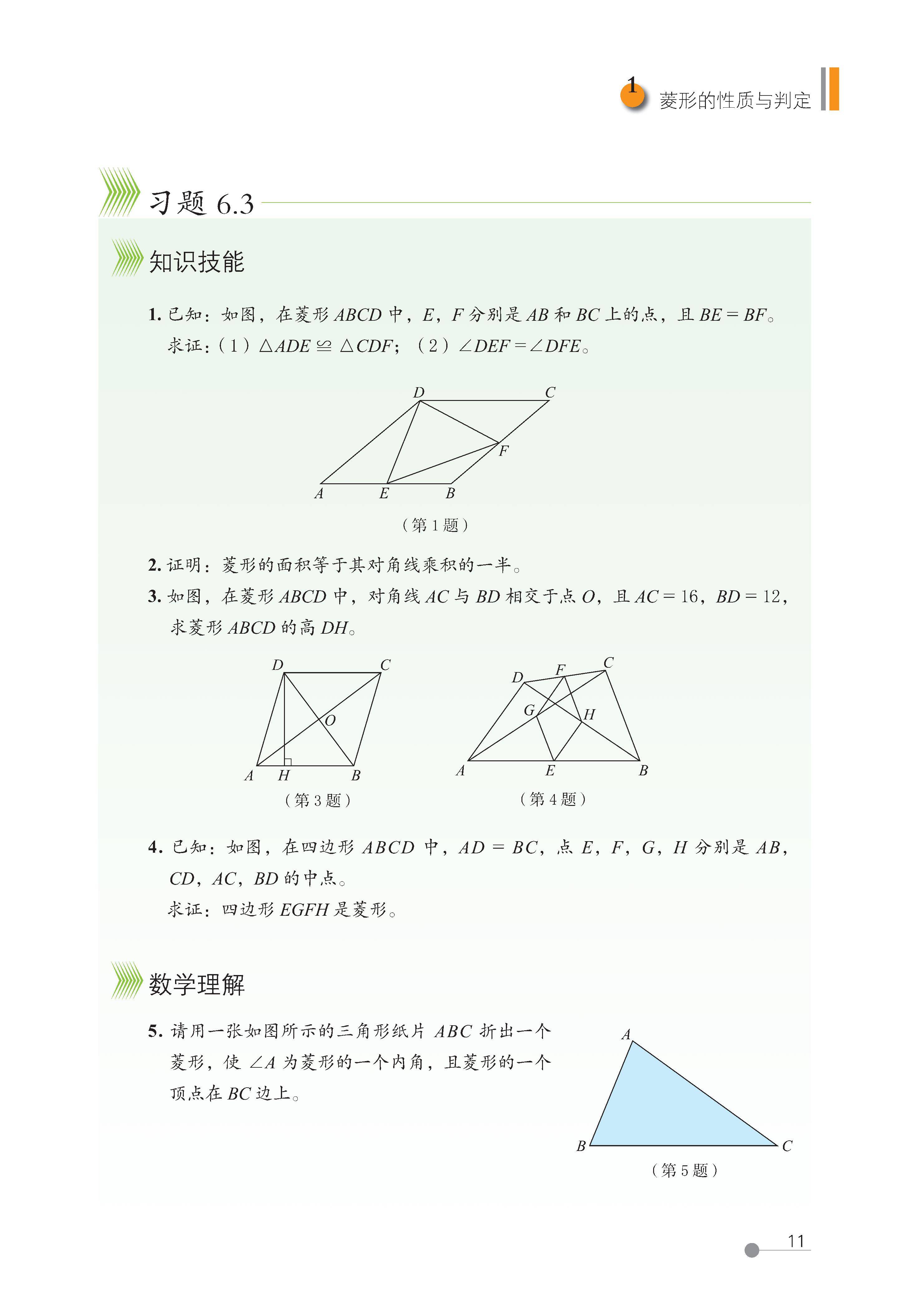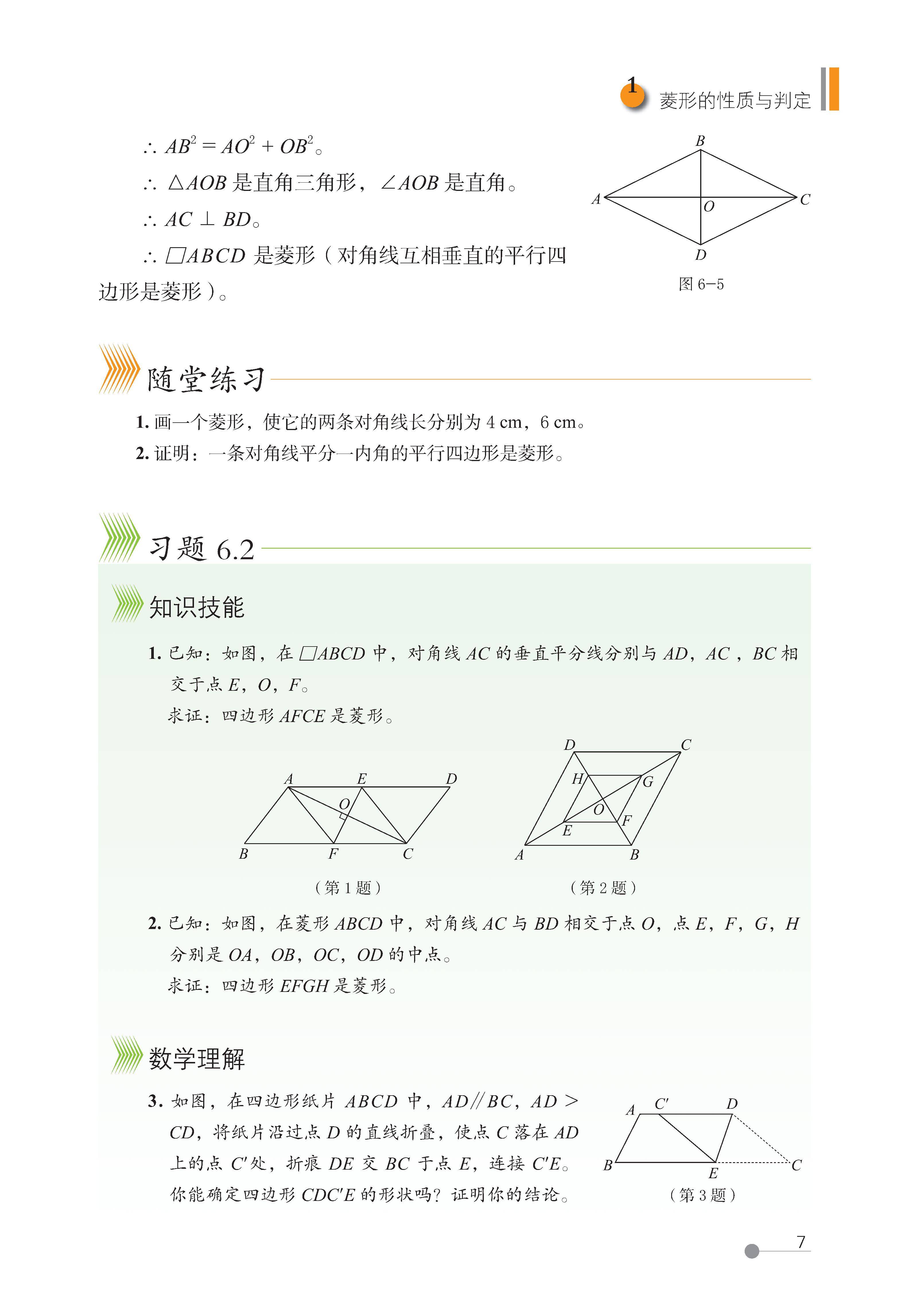 2. 综合证明题中 “多性质联用”(如结合平行四边形性质 + 菱形对角线垂直) 低 - 中,基于上册 “平行四边形” 基础,逻辑链条较直接,定理多为 “平行四边形 + 1 个特殊条件”,易归纳