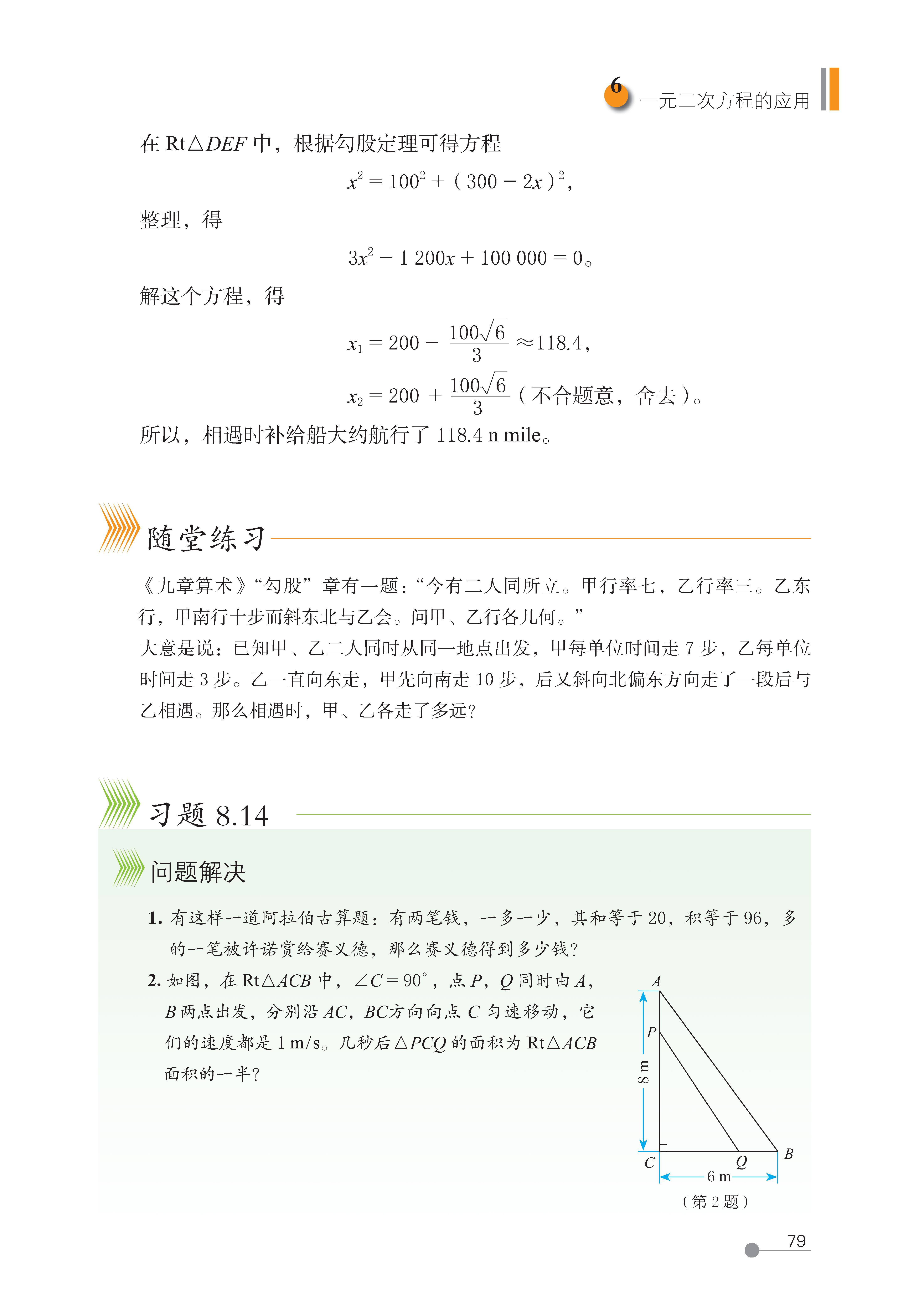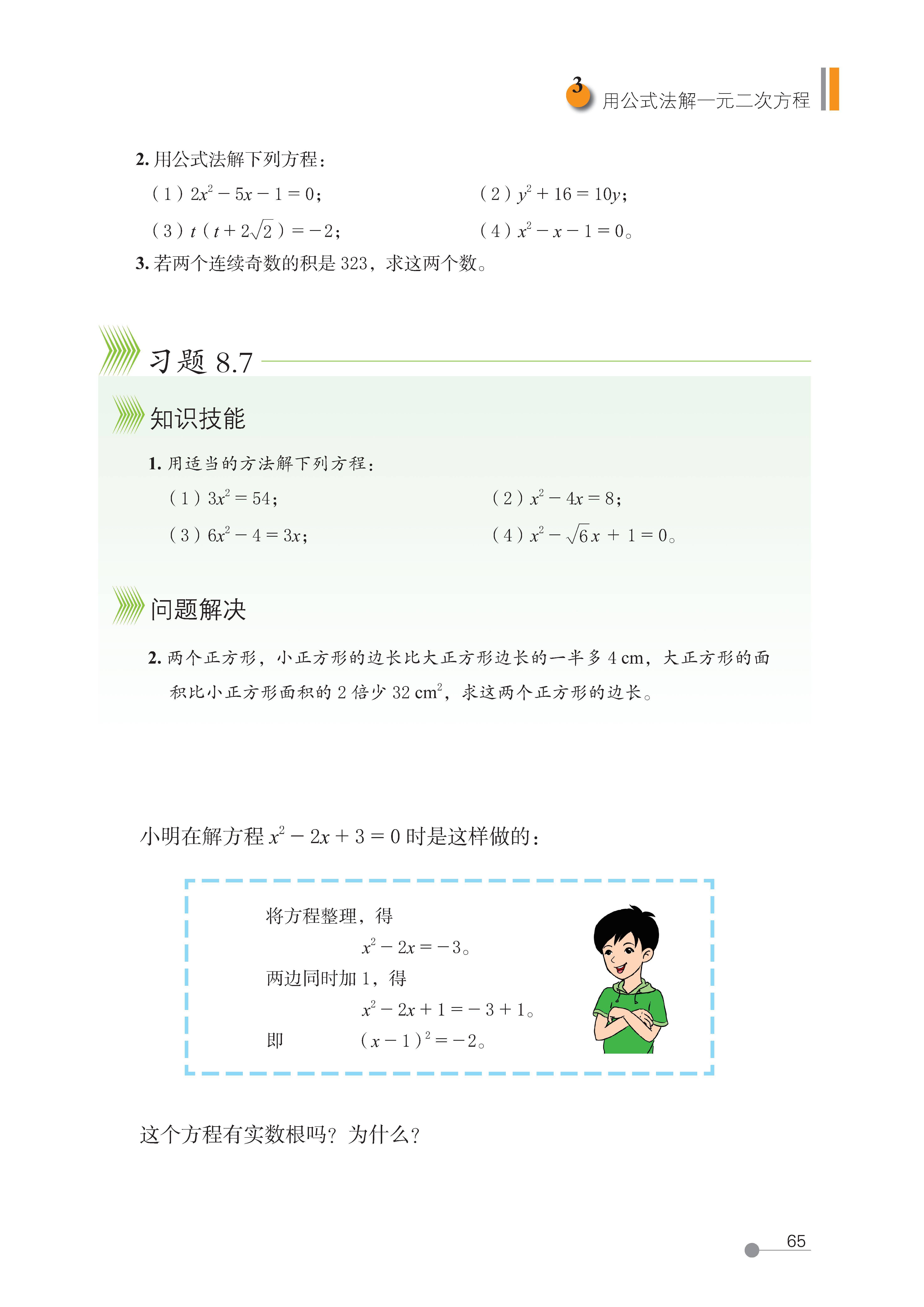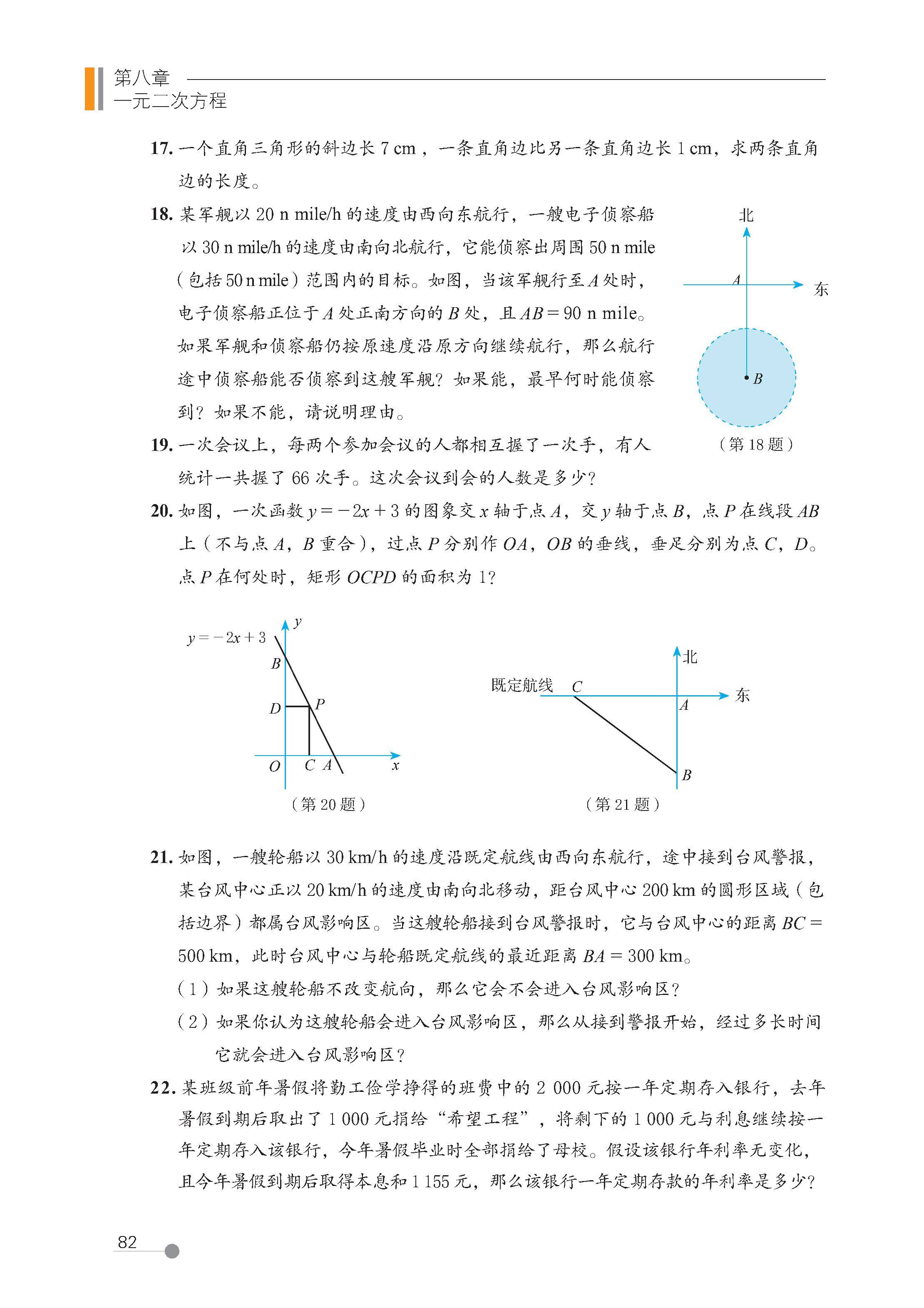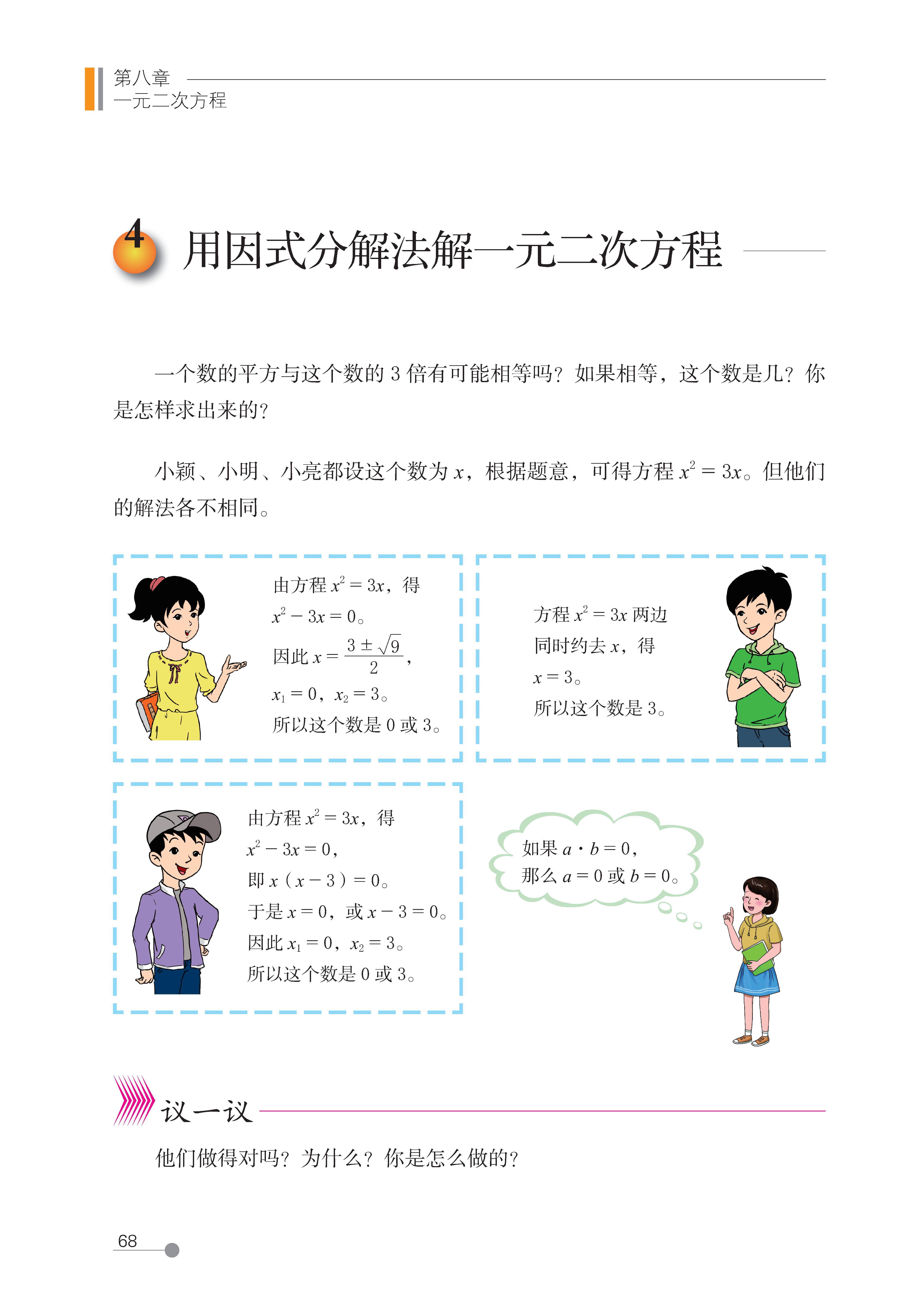 第八章 “一元二次方程”:解法有固定流程(如配方法:移项→化二次项系数为 1→配方→开方→求解),根与系数的关系(韦达定理)虽需理解,但应用题型多为 “已知根求系数”“已知系数求根的关系”,套路性强,练习后易掌握。