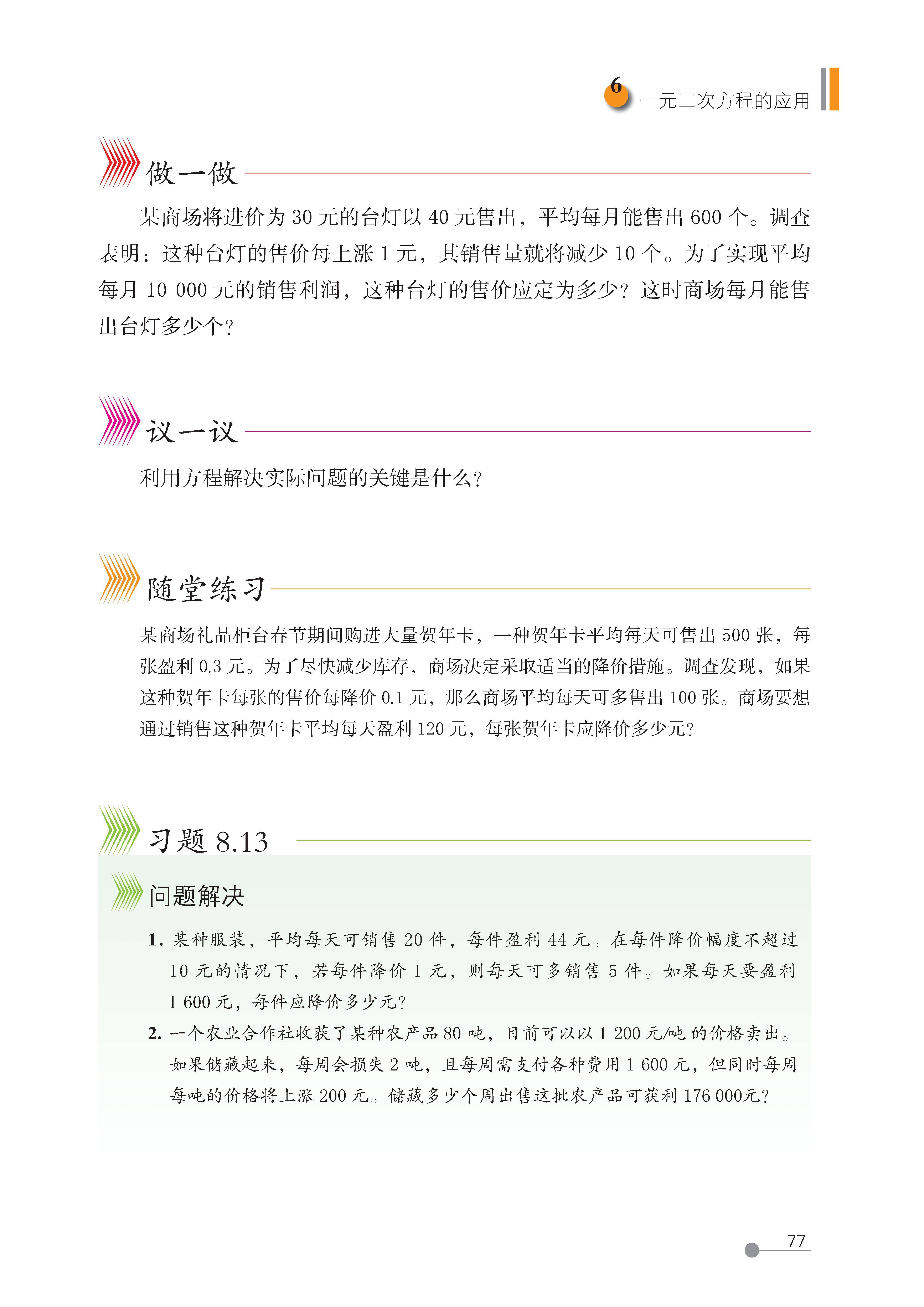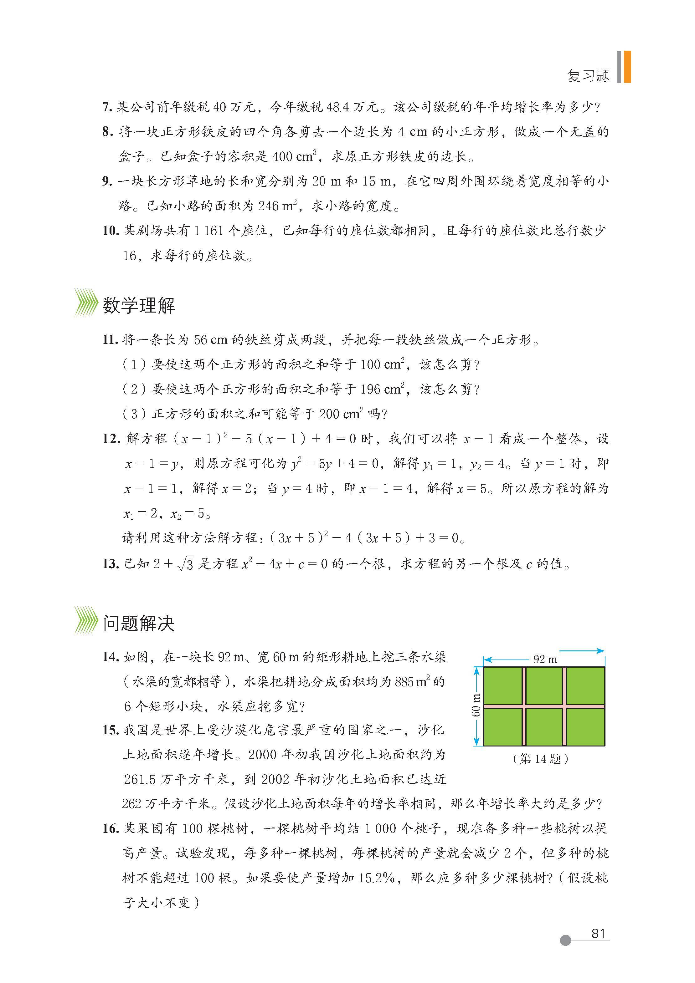 3. 实际应用中 “等量关系建立”(如增长率、面积问题) 中,解法有固定流程(如公式法直接代入),应用题型虽多,但 “套路性” 强,通过归类练习可突破