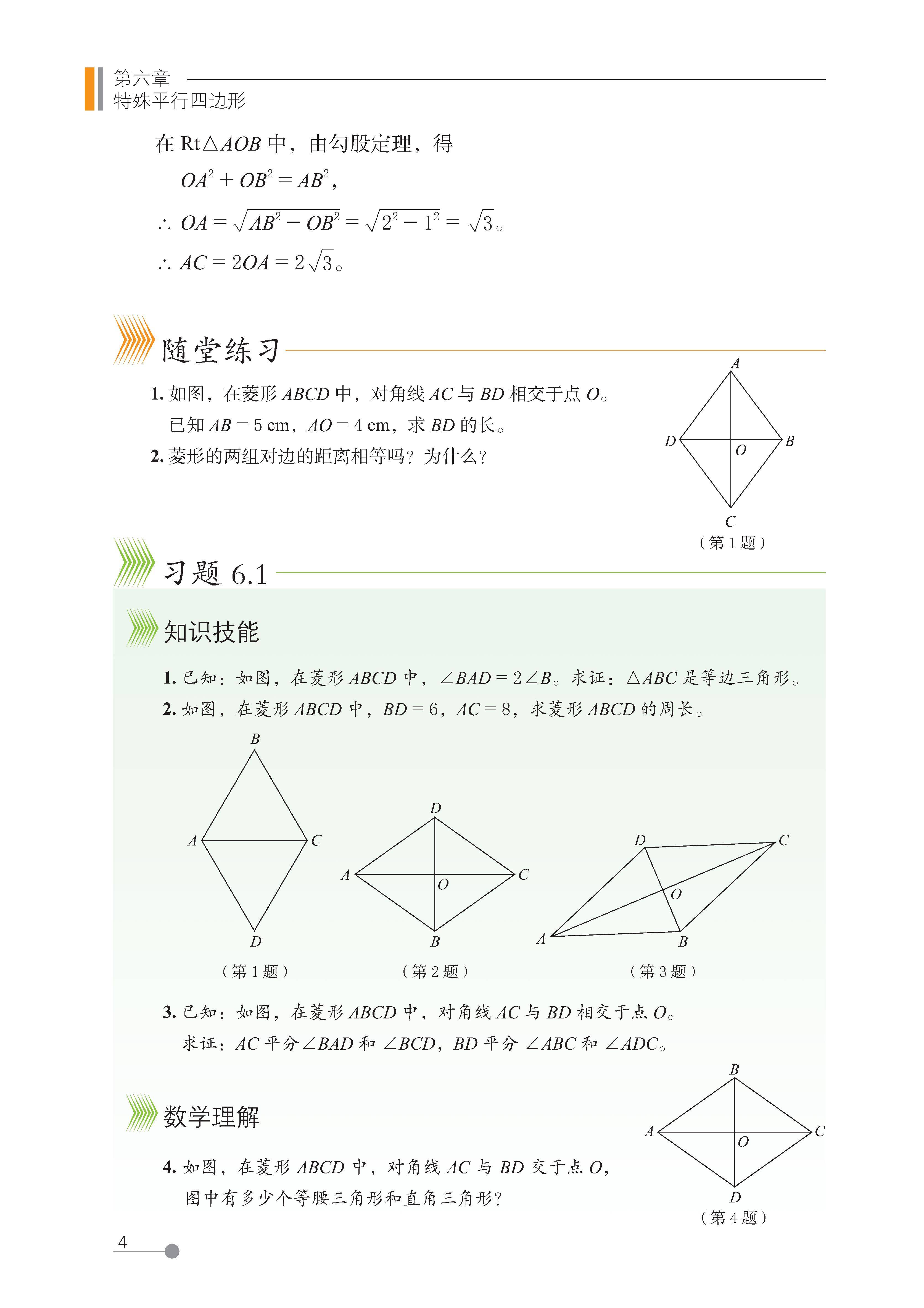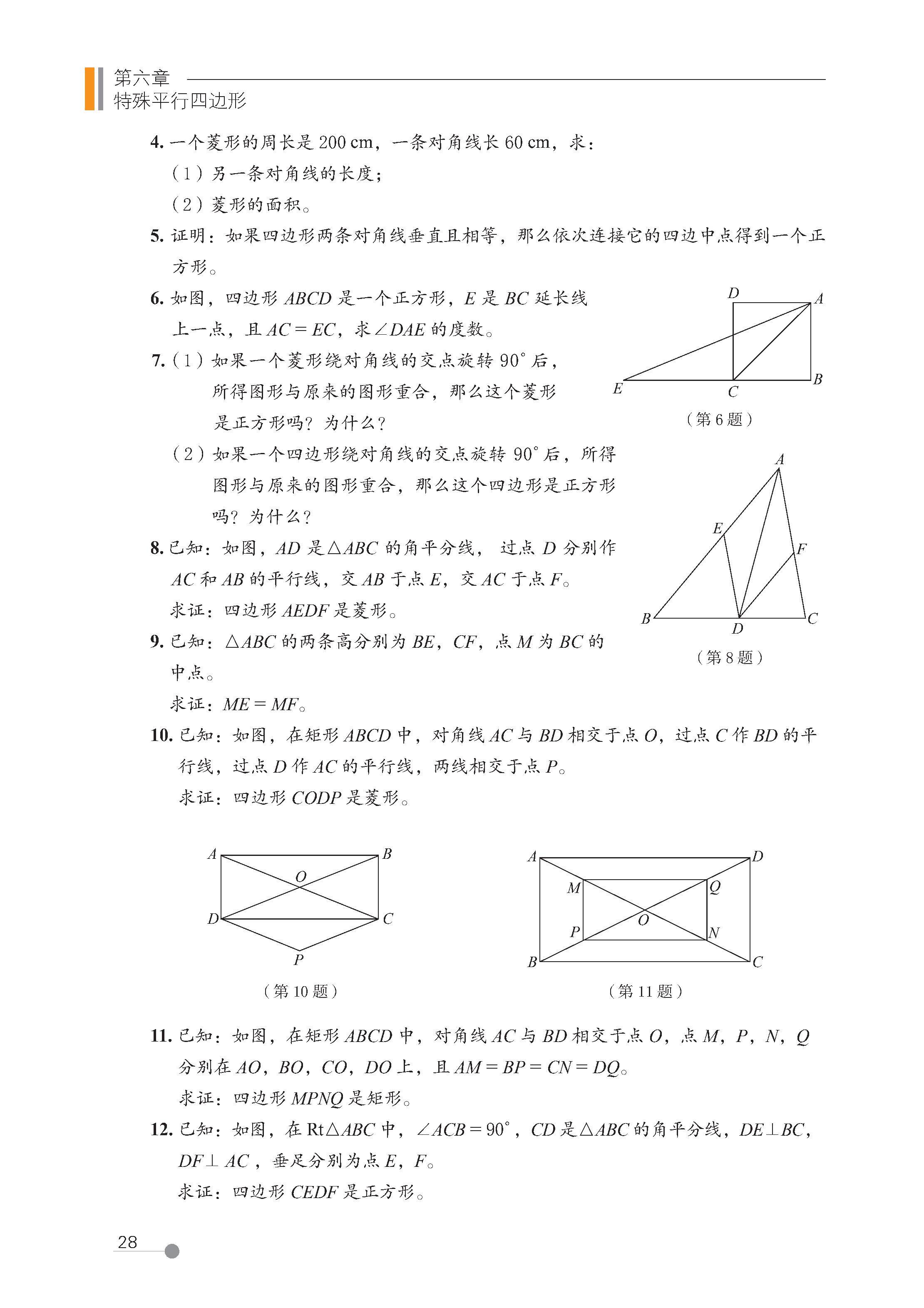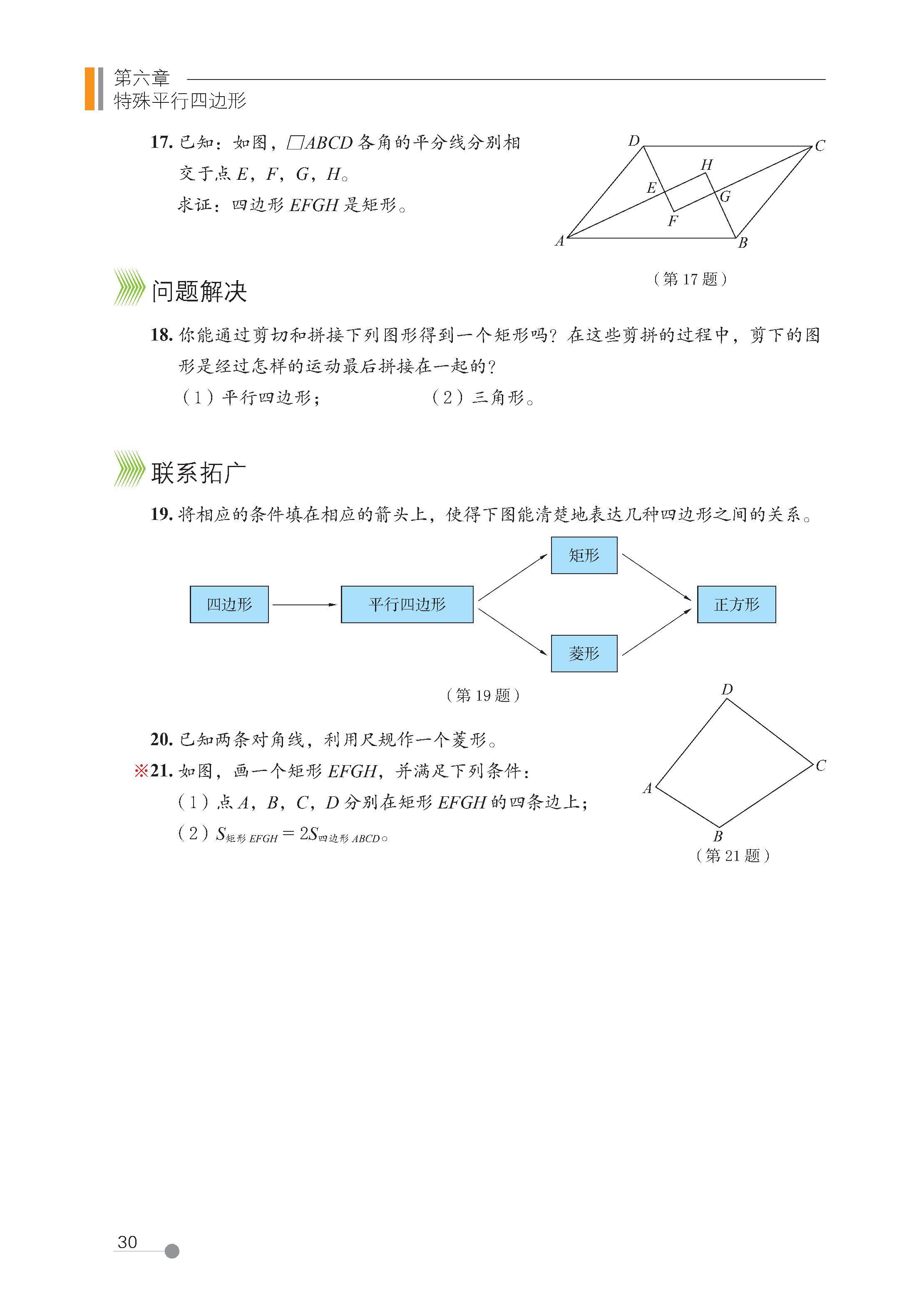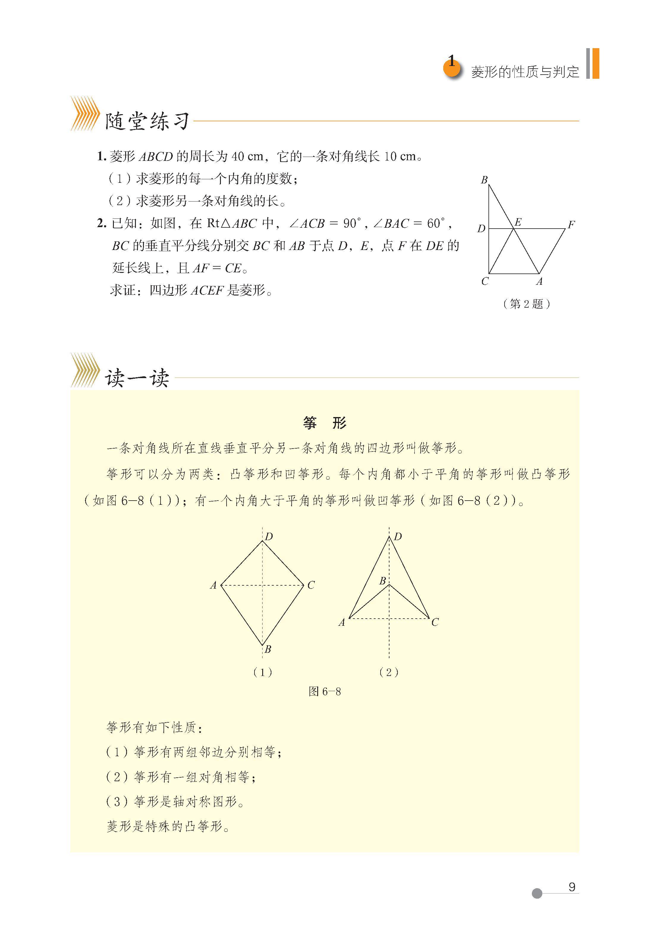 第六章 “特殊平行四边形”:所有性质和判定都基于 “平行四边形”,只需额外记住 “1 个特殊条件”(如菱形 = 平行四边形 + 邻边相等,矩形 = 平行四边形 + 直角),逻辑上是 “递进式” 而非 “跨越式”,证明题的辅助线也较少;